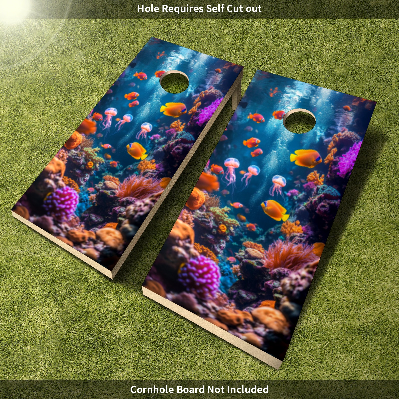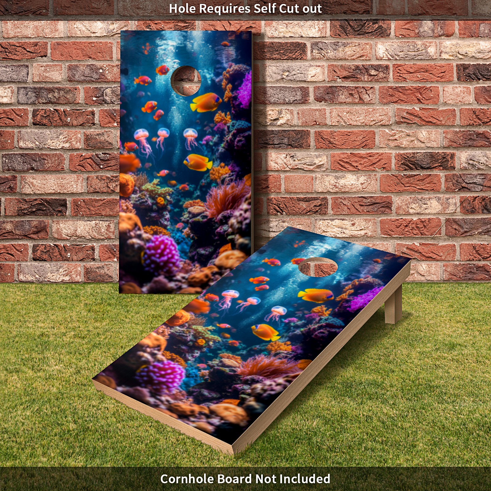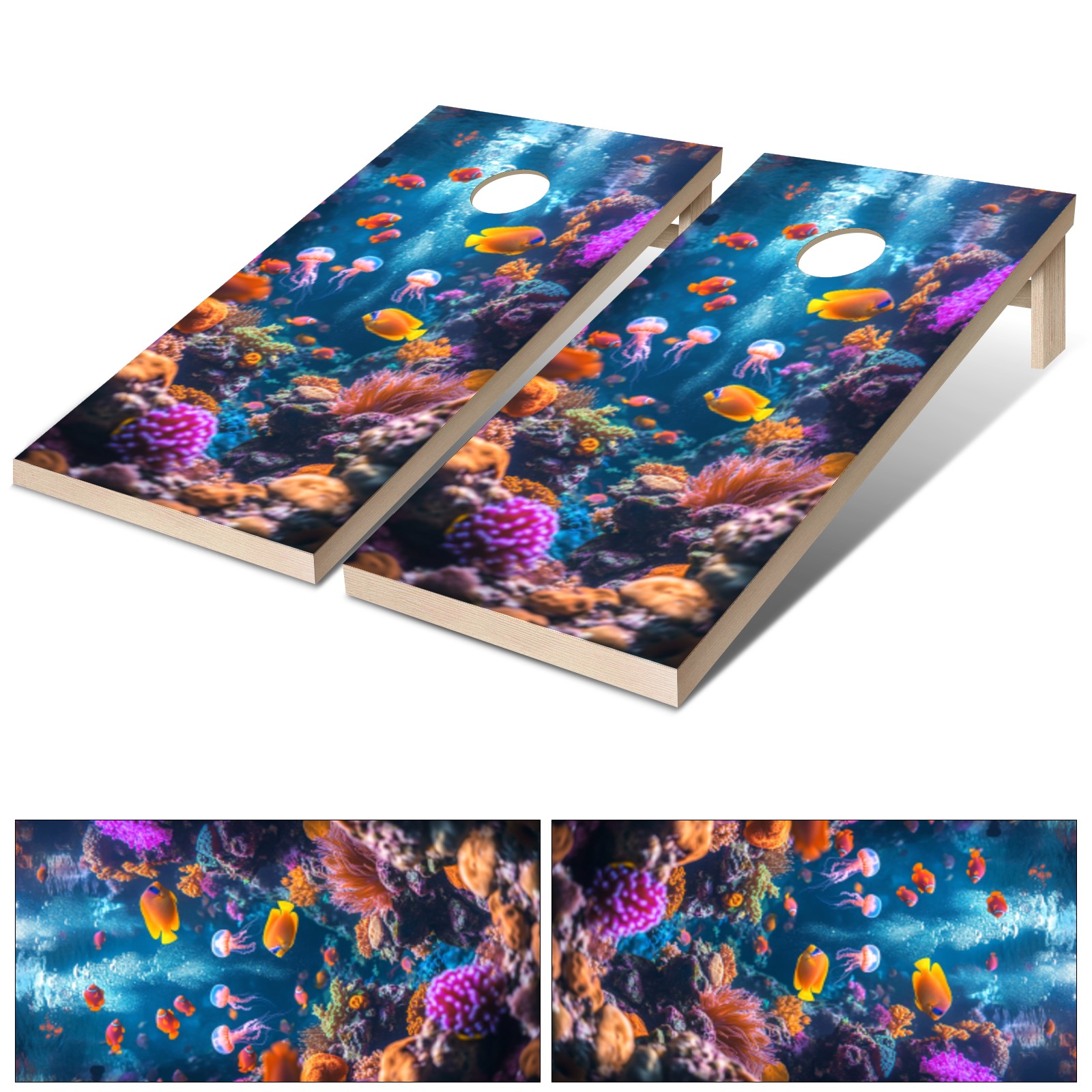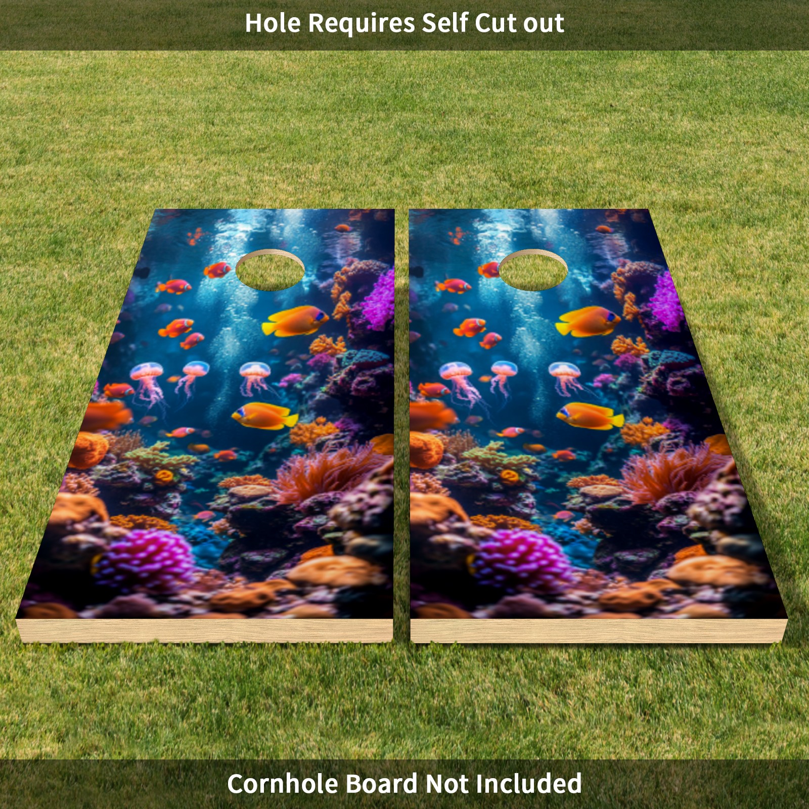 Portable 4x2 Ft Cornhole Boards Set with Two-piece Game Sticker(Decals ONLY), Easy to Apply - Corn Hole Games for Adults Outdoor Bean Bag Toss Game Undersea Pattern2