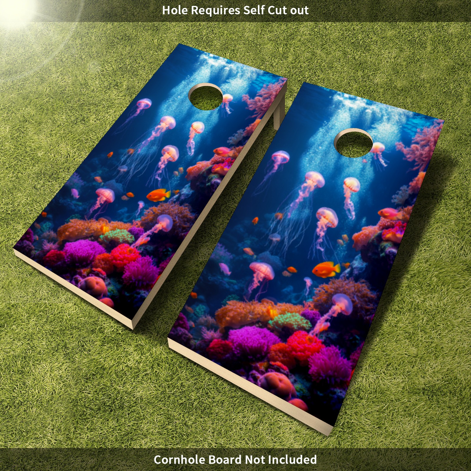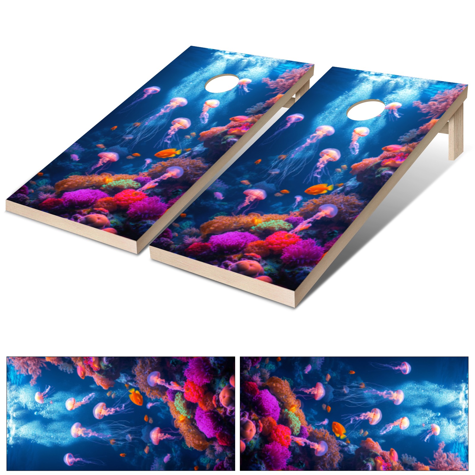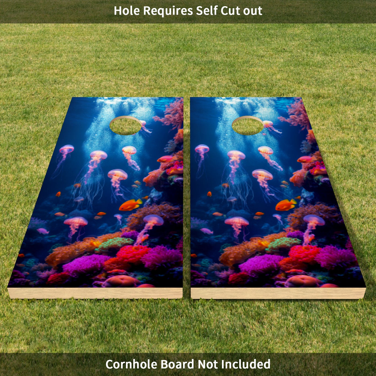 Portable 4x2 Ft Cornhole Boards Set with Two-piece Game Sticker(Decals ONLY), Easy to Apply - Corn Hole Games for Adults Outdoor Bean Bag Toss Game Undersea Pattern1