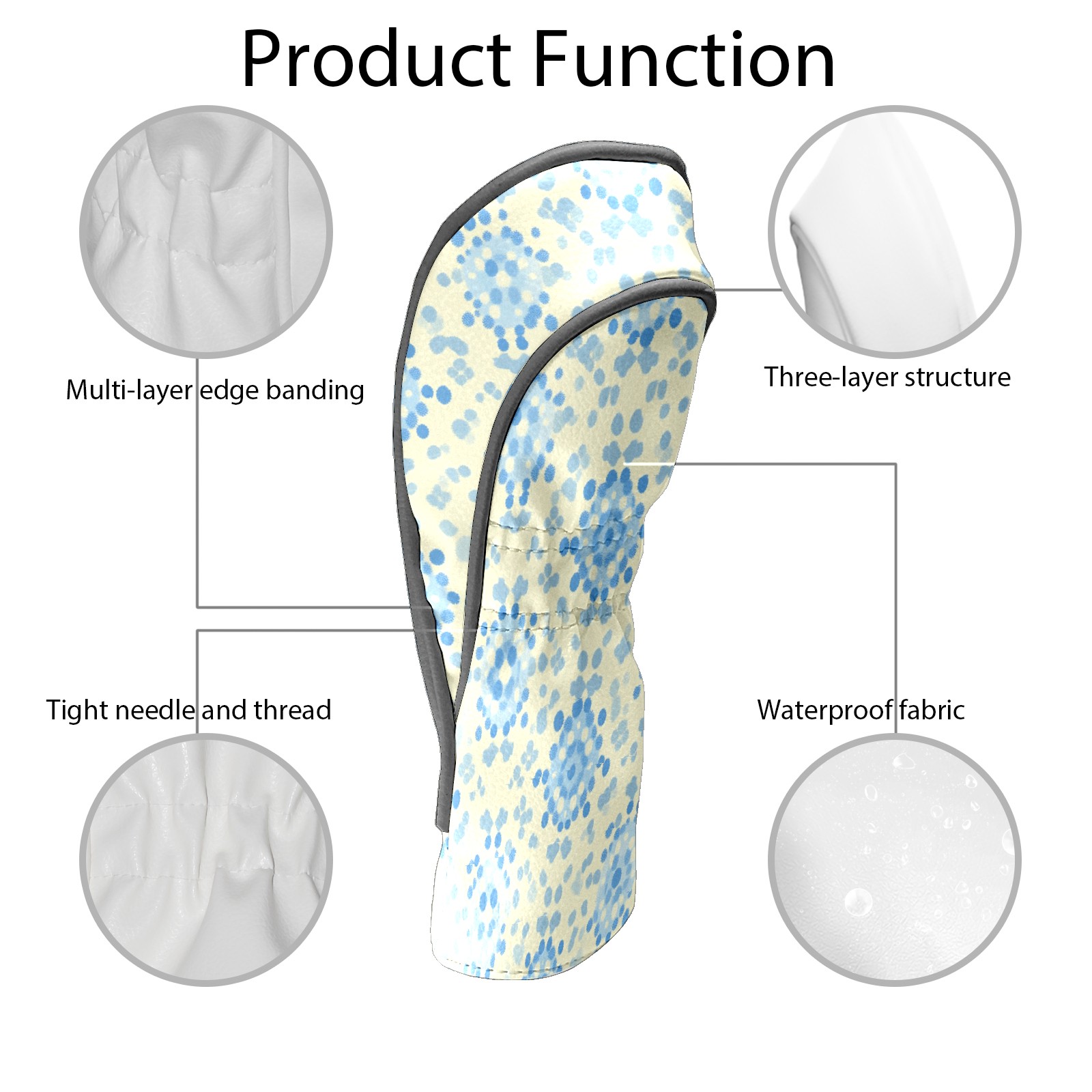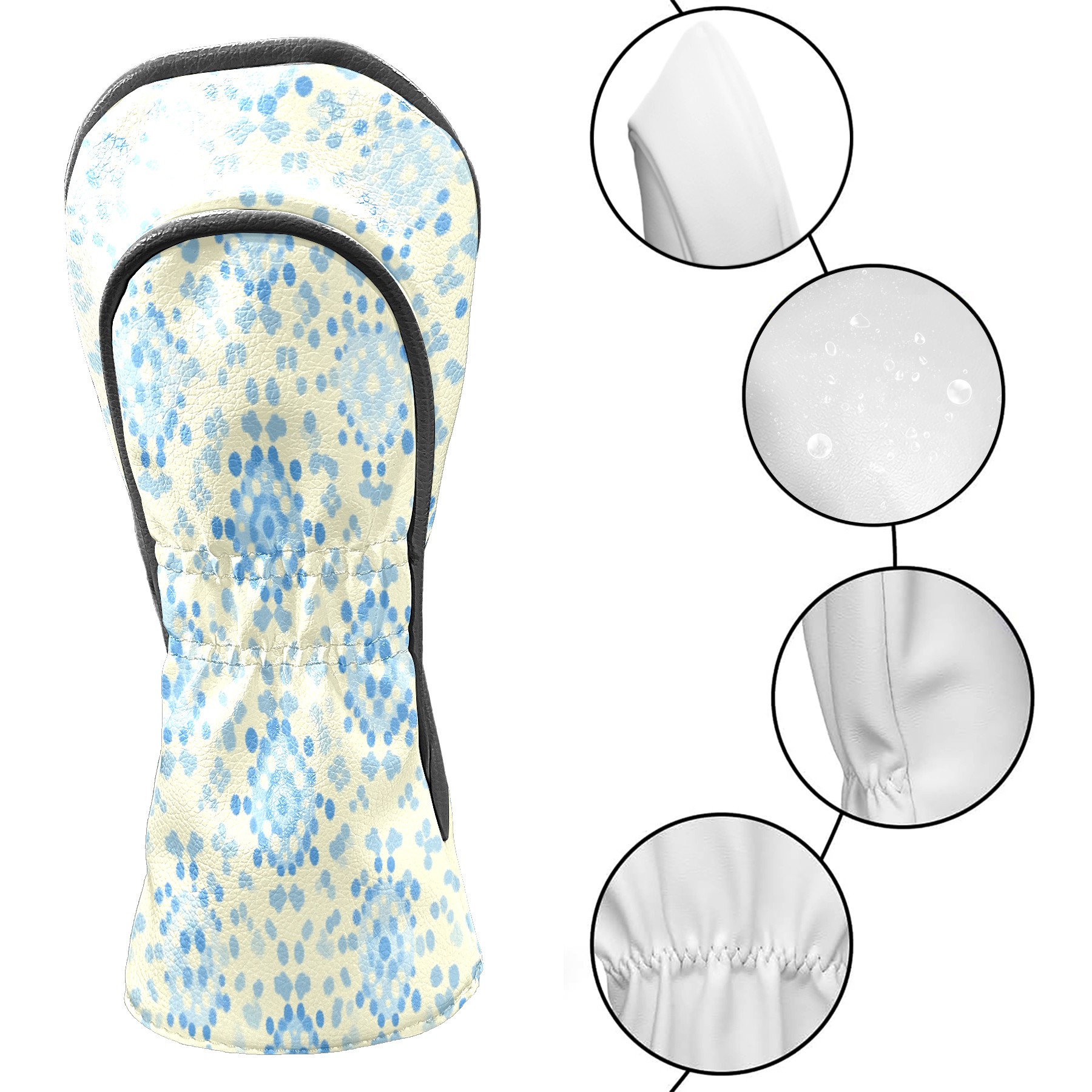 Golf Club Head Covers for Driver and Fairway Woods, Waterproof Leather Headcovers for Golf Clubs, Ideal Golf Accessories Gift for Men Women (Blue And White Dots)