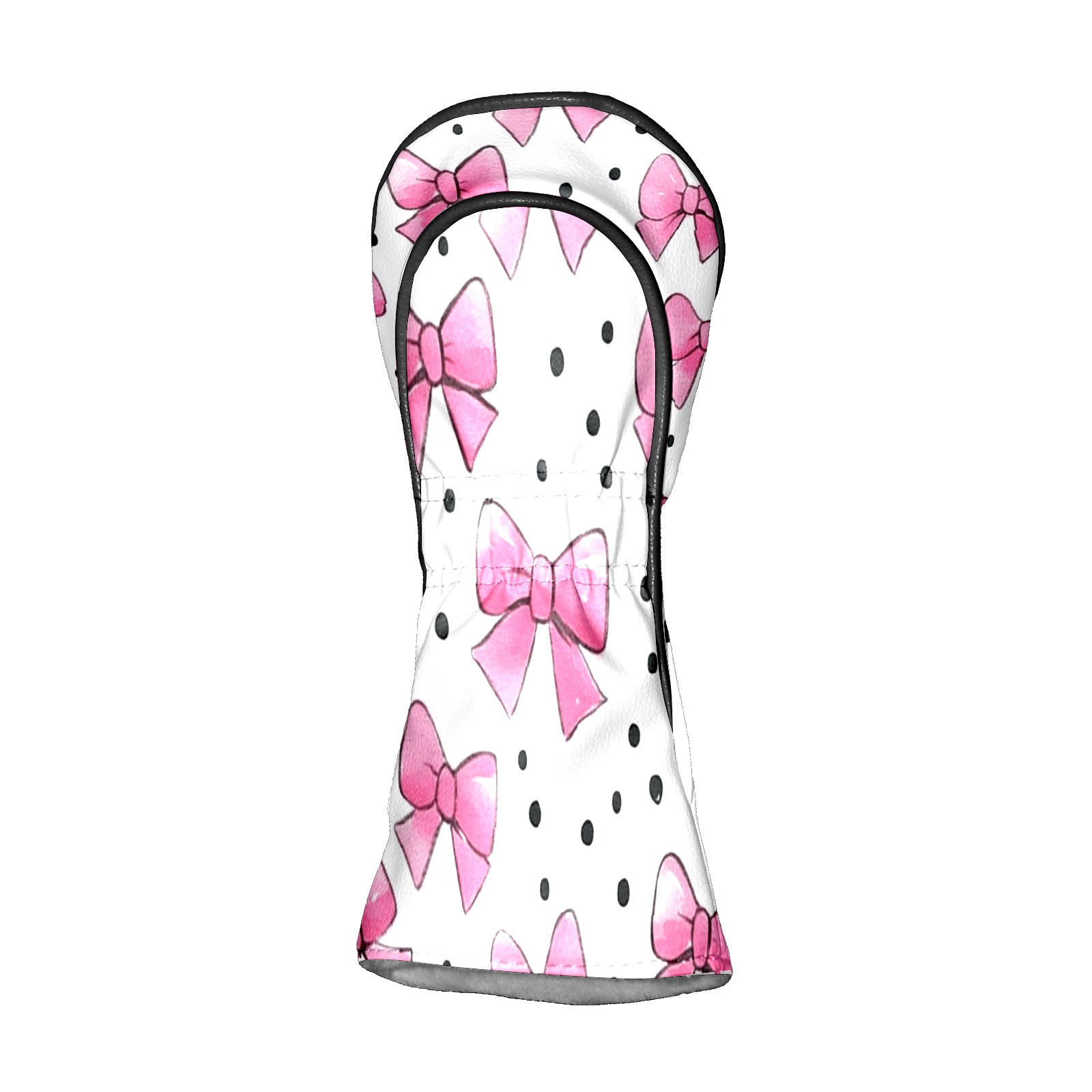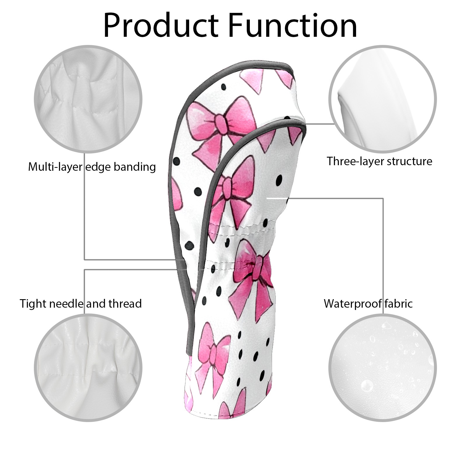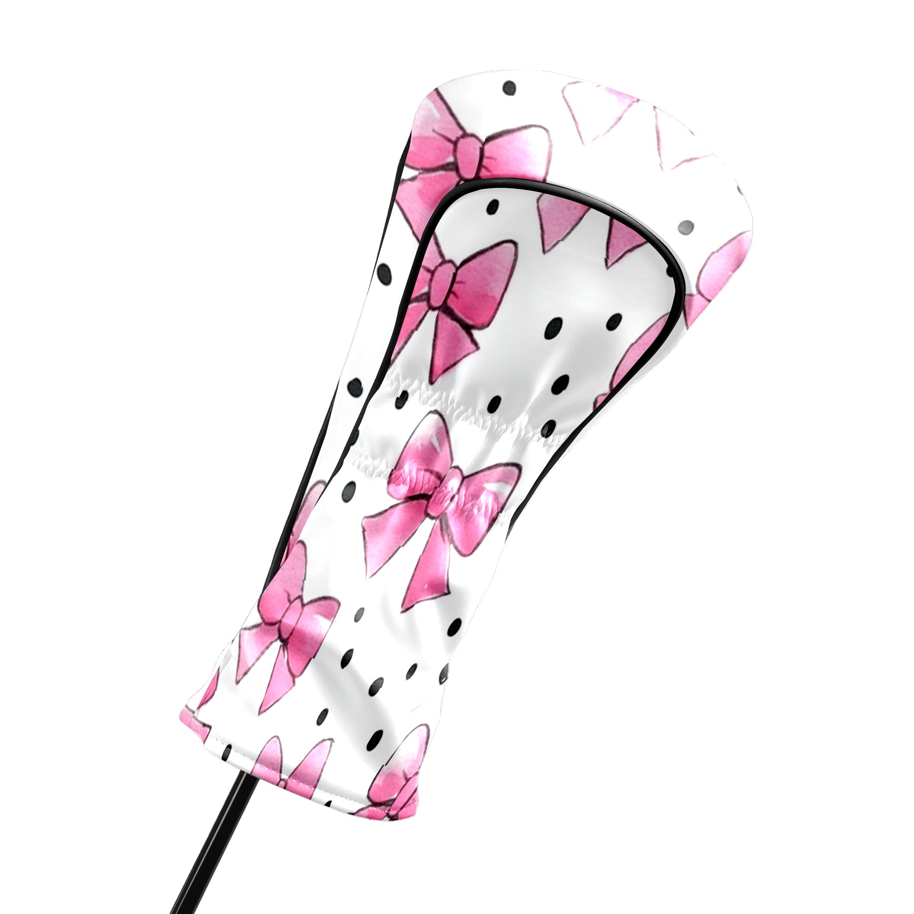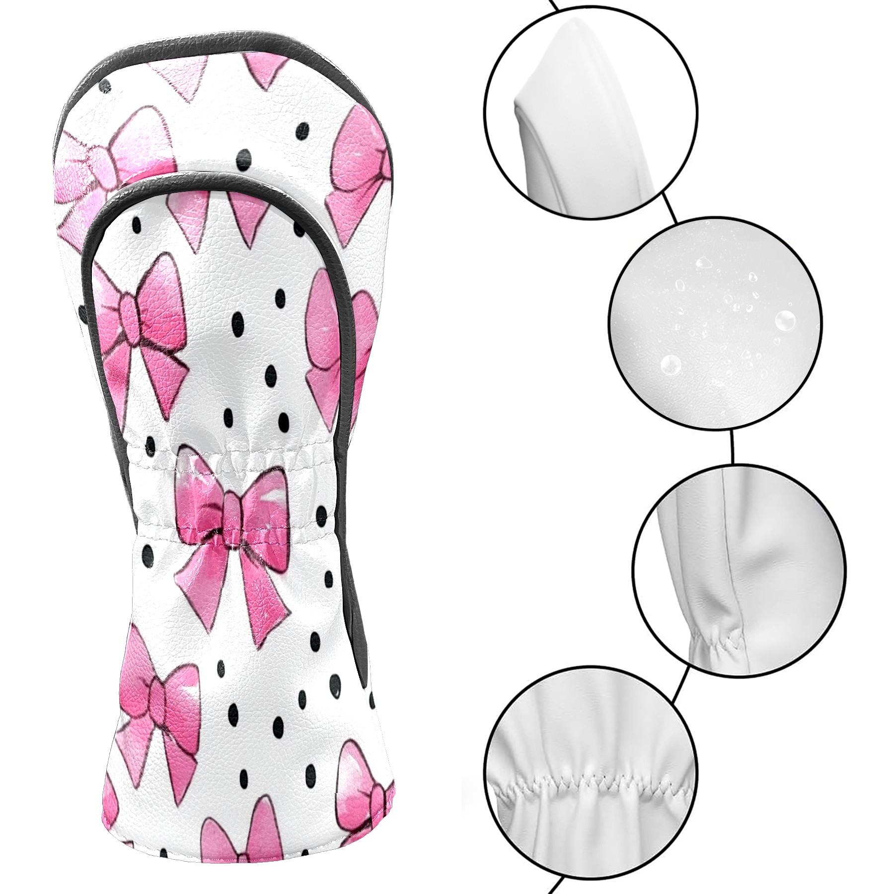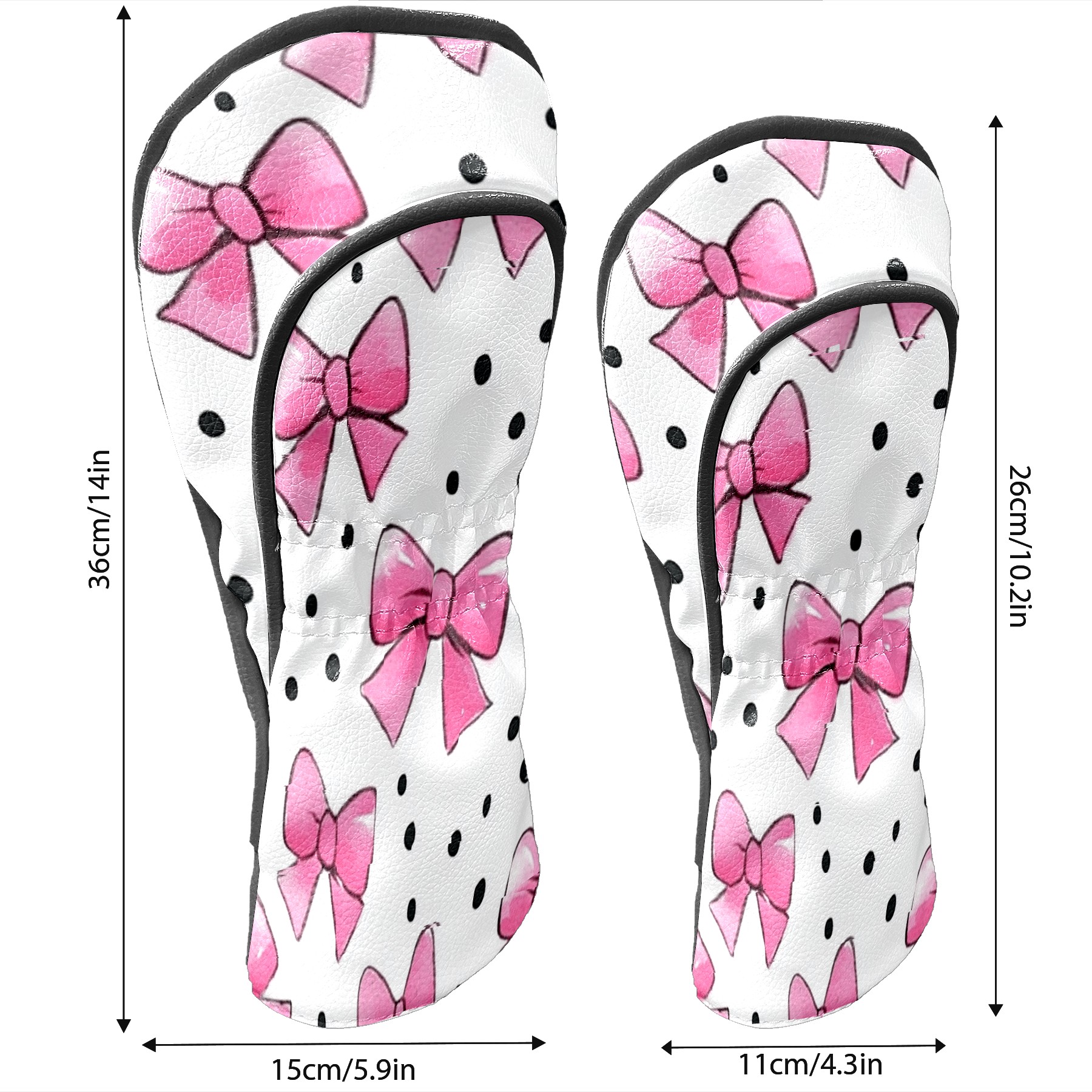 Golf Club Head Covers for Driver and Fairway Woods, Waterproof Leather Headcovers for Golf Clubs, Ideal Golf Accessories Gift for Men Women (Pink Bows And Black Dots)
