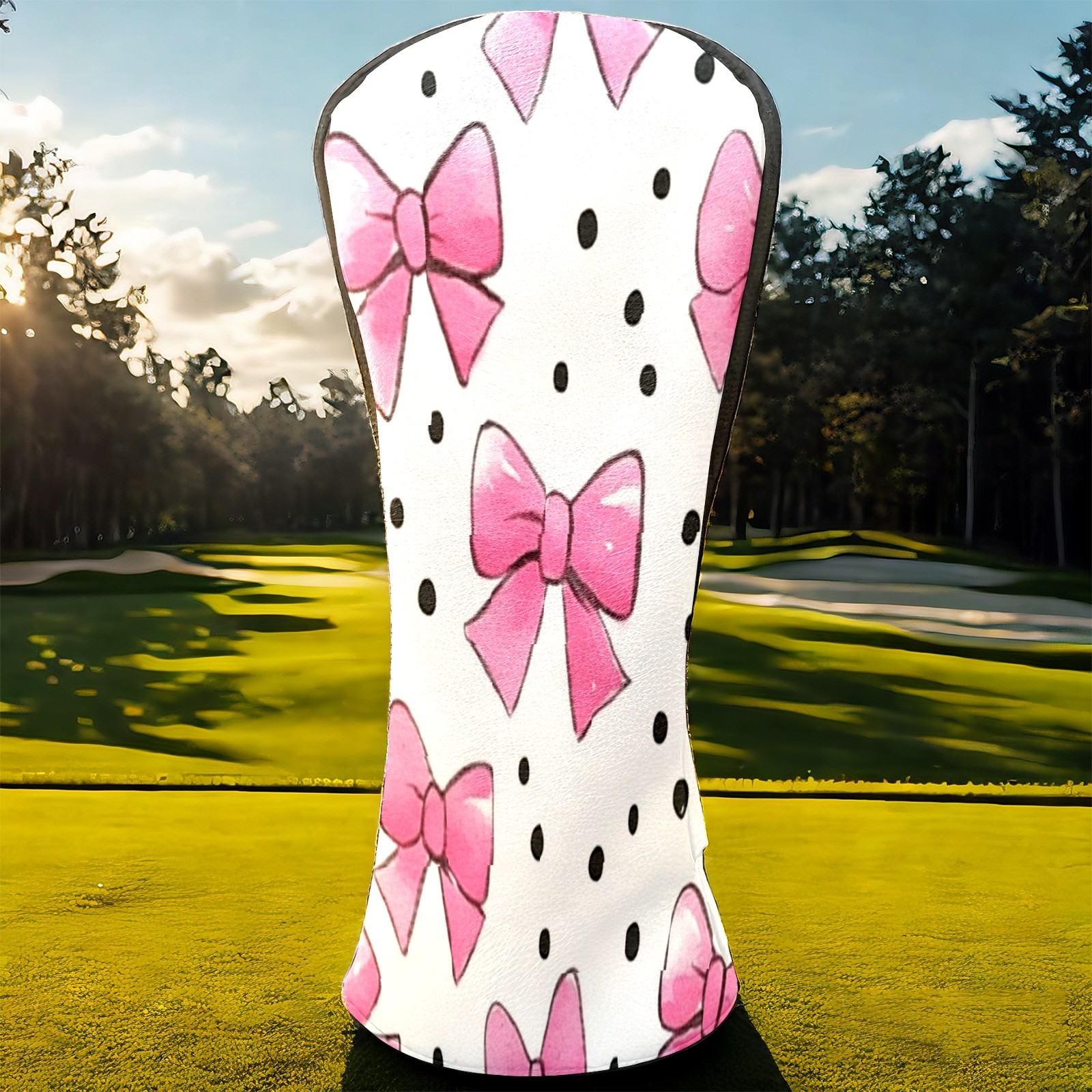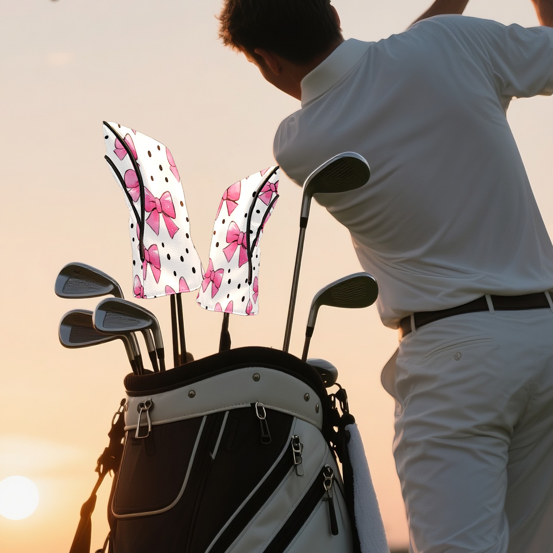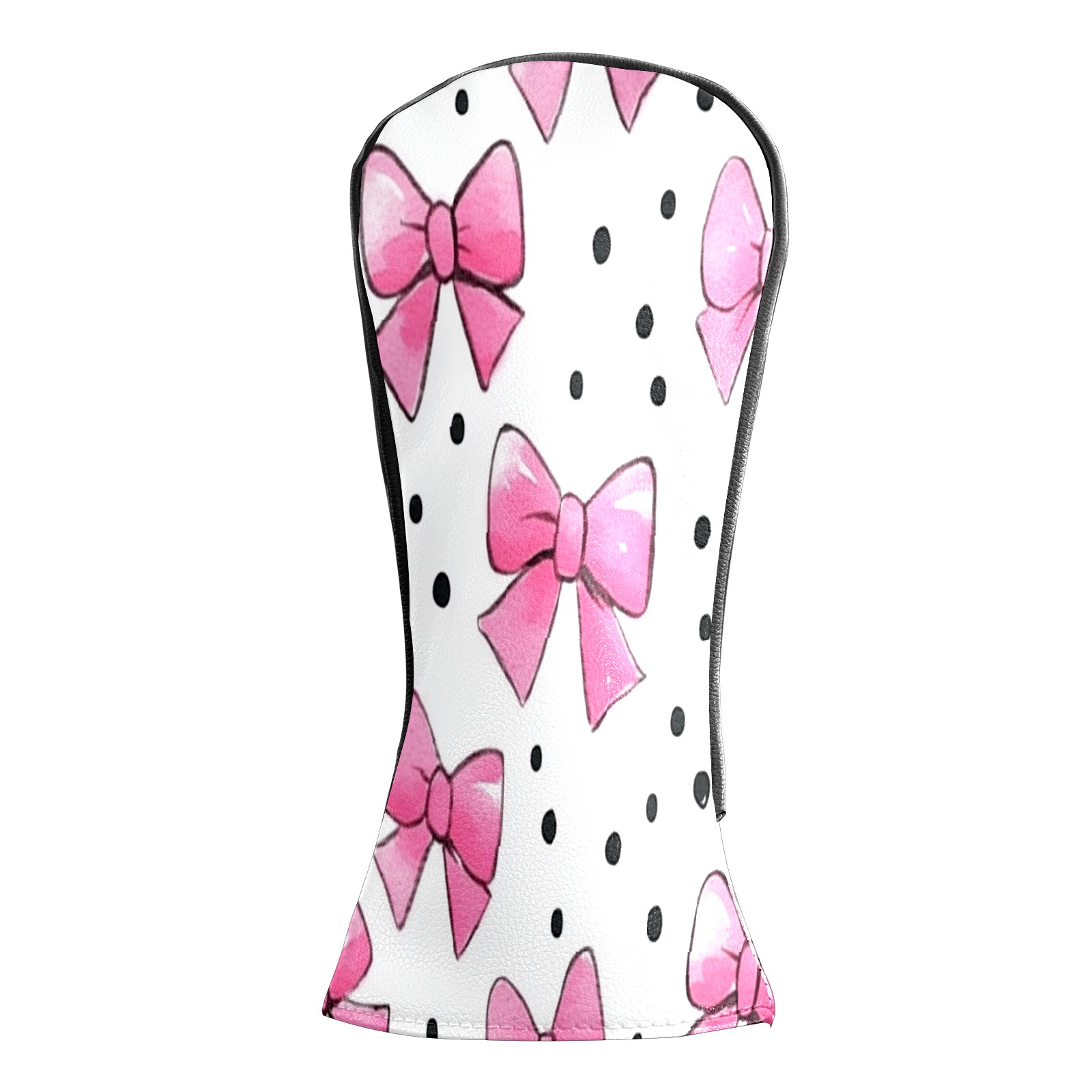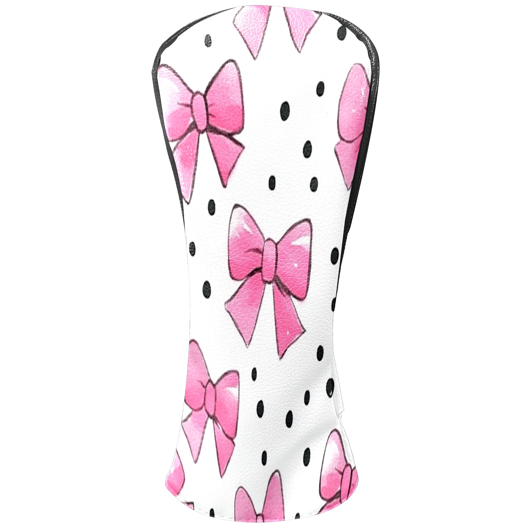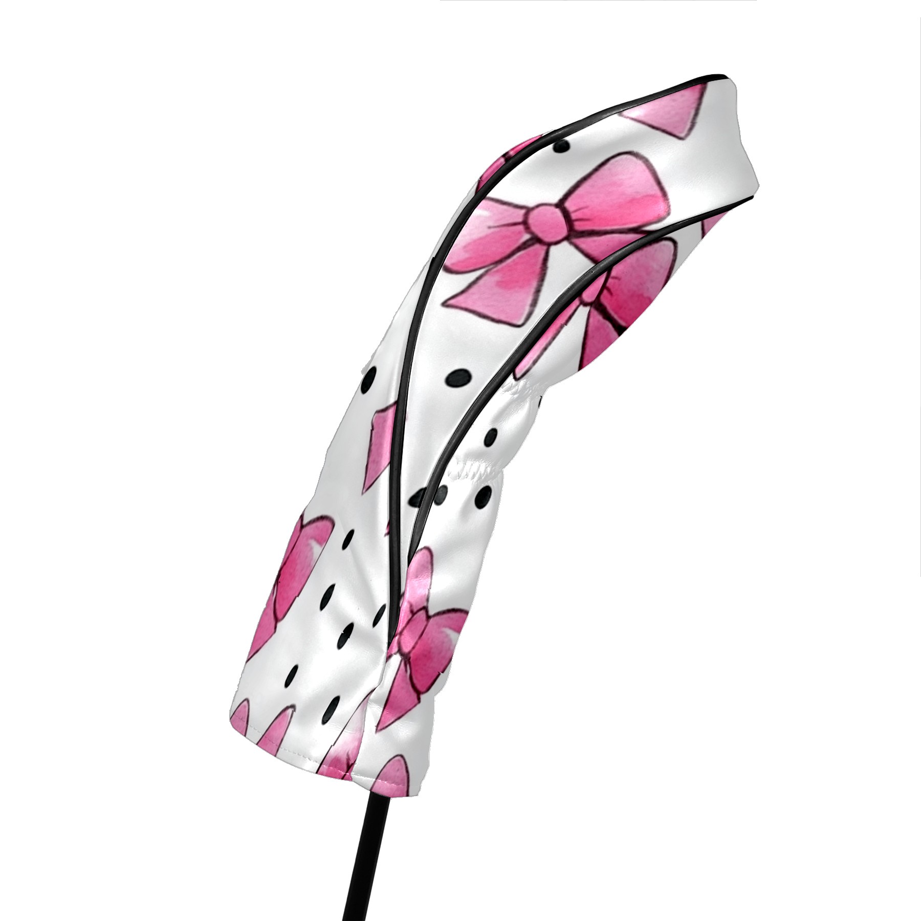 Golf Club Head Covers for Driver and Fairway Woods, Waterproof Leather Headcovers for Golf Clubs, Ideal Golf Accessories Gift for Men Women (Pink Bows And Black Dots)