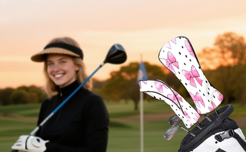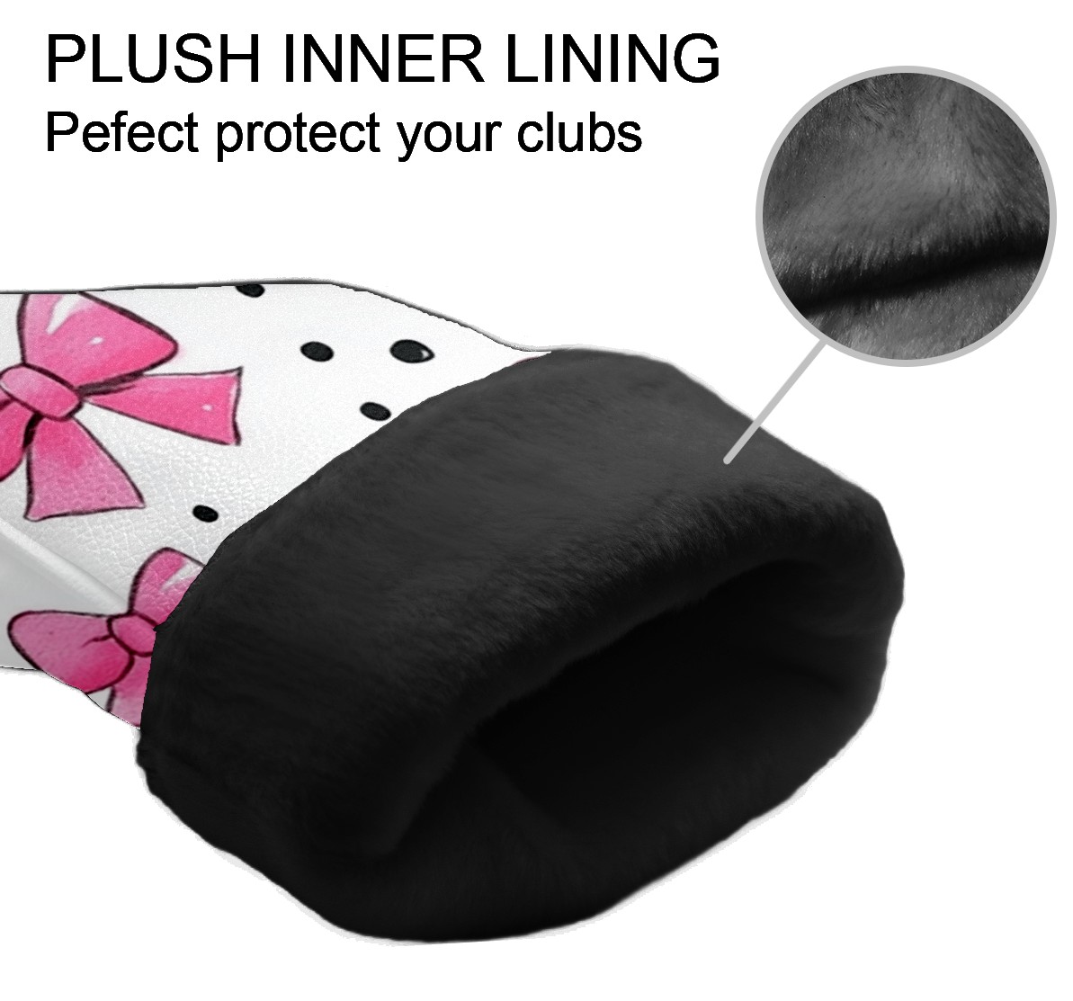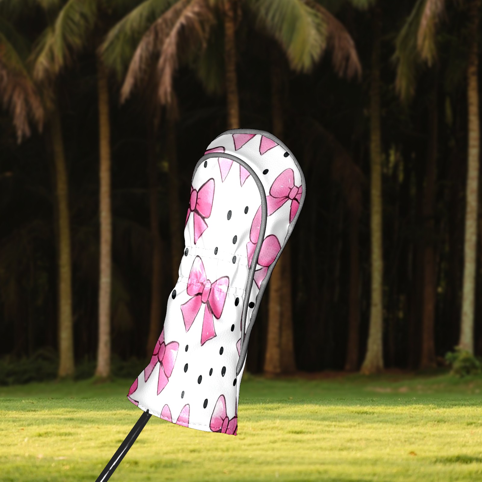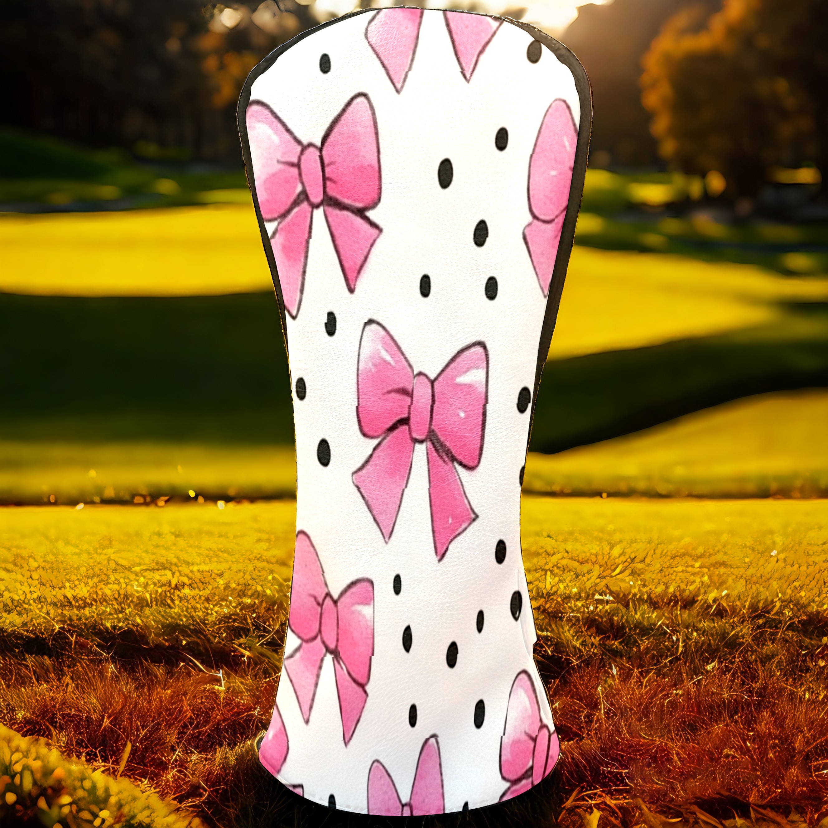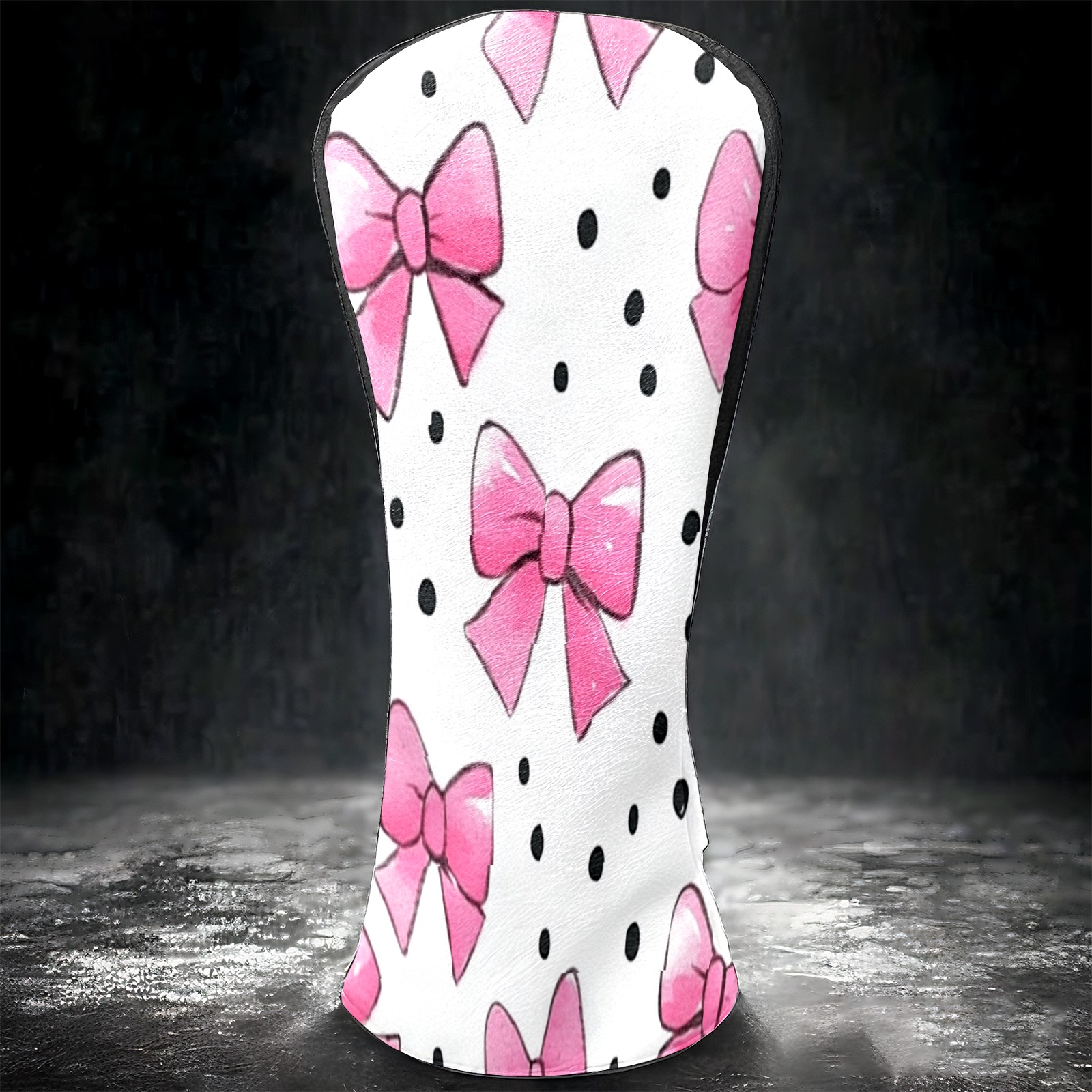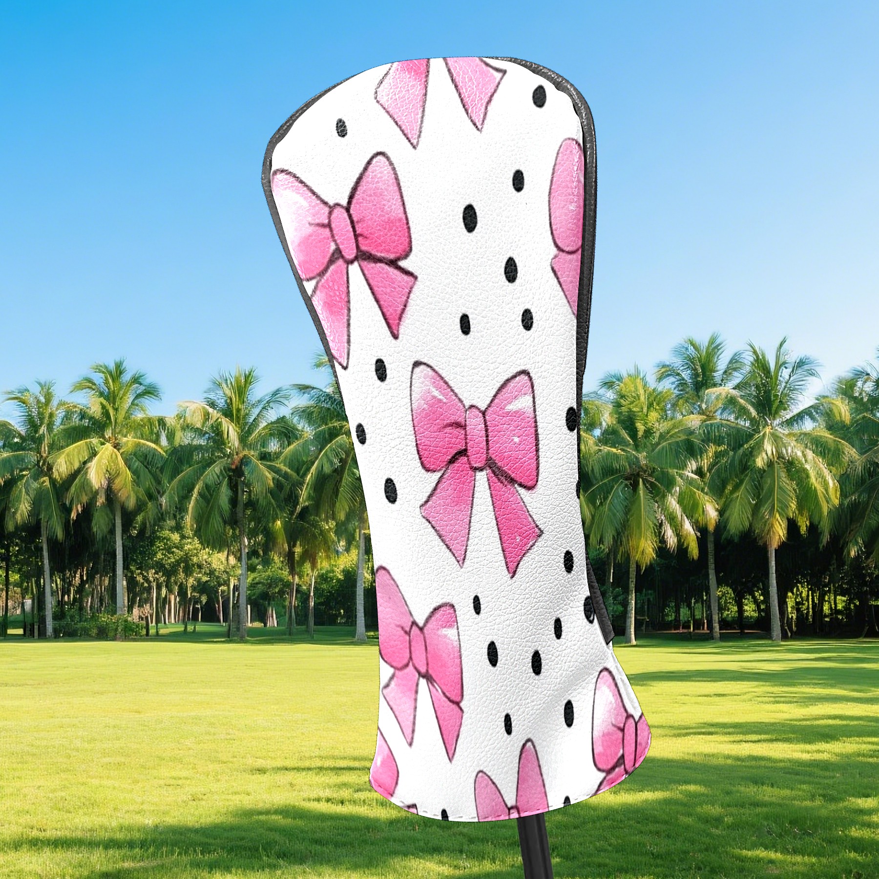 Golf Club Head Covers for Driver and Fairway Woods, Waterproof Leather Headcovers for Golf Clubs, Ideal Golf Accessories Gift for Men Women (Pink Bows And Black Dots)