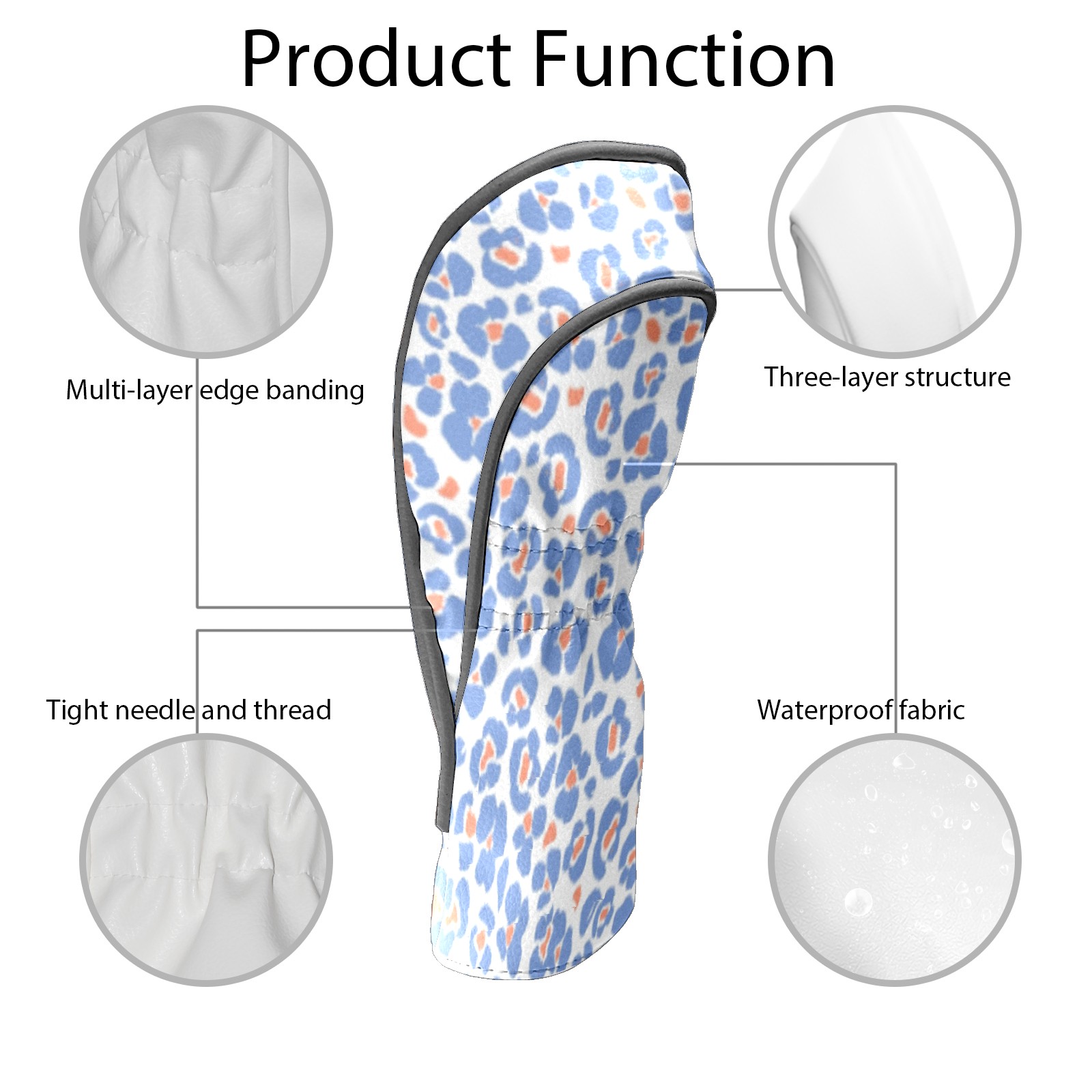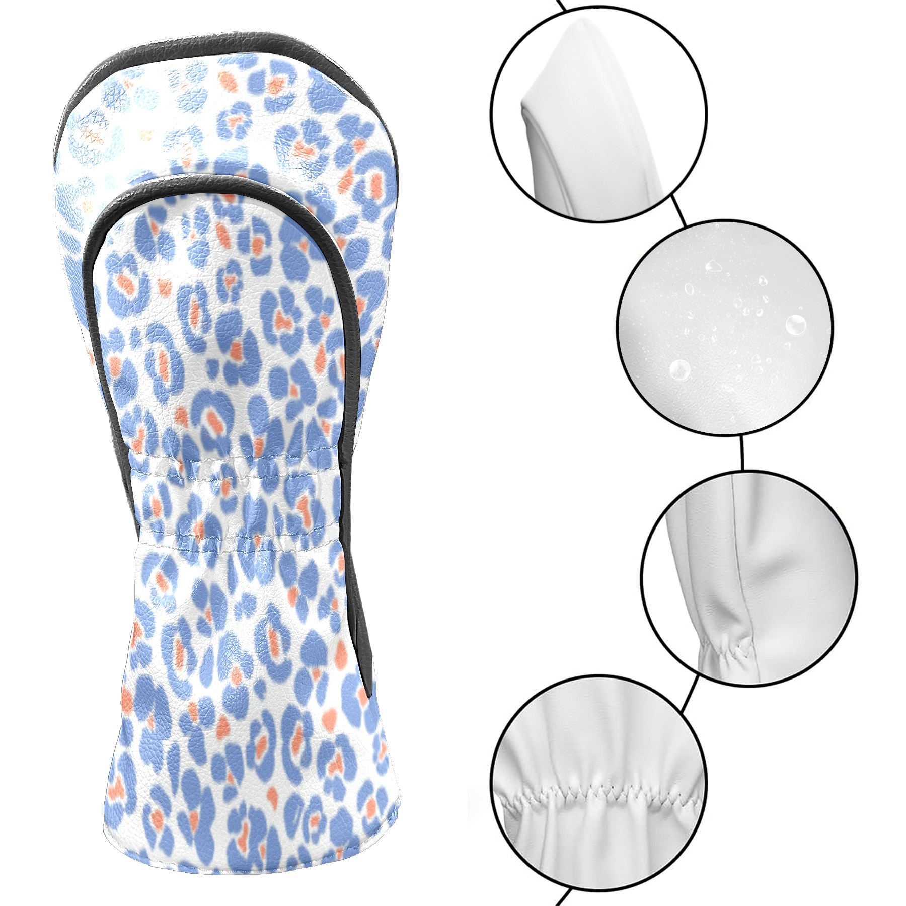 Golf Club Head Covers for Driver and Fairway Woods, Waterproof Leather Headcovers for Golf Clubs, Ideal Golf Accessories Gift for Men Women (Blue Leopard)