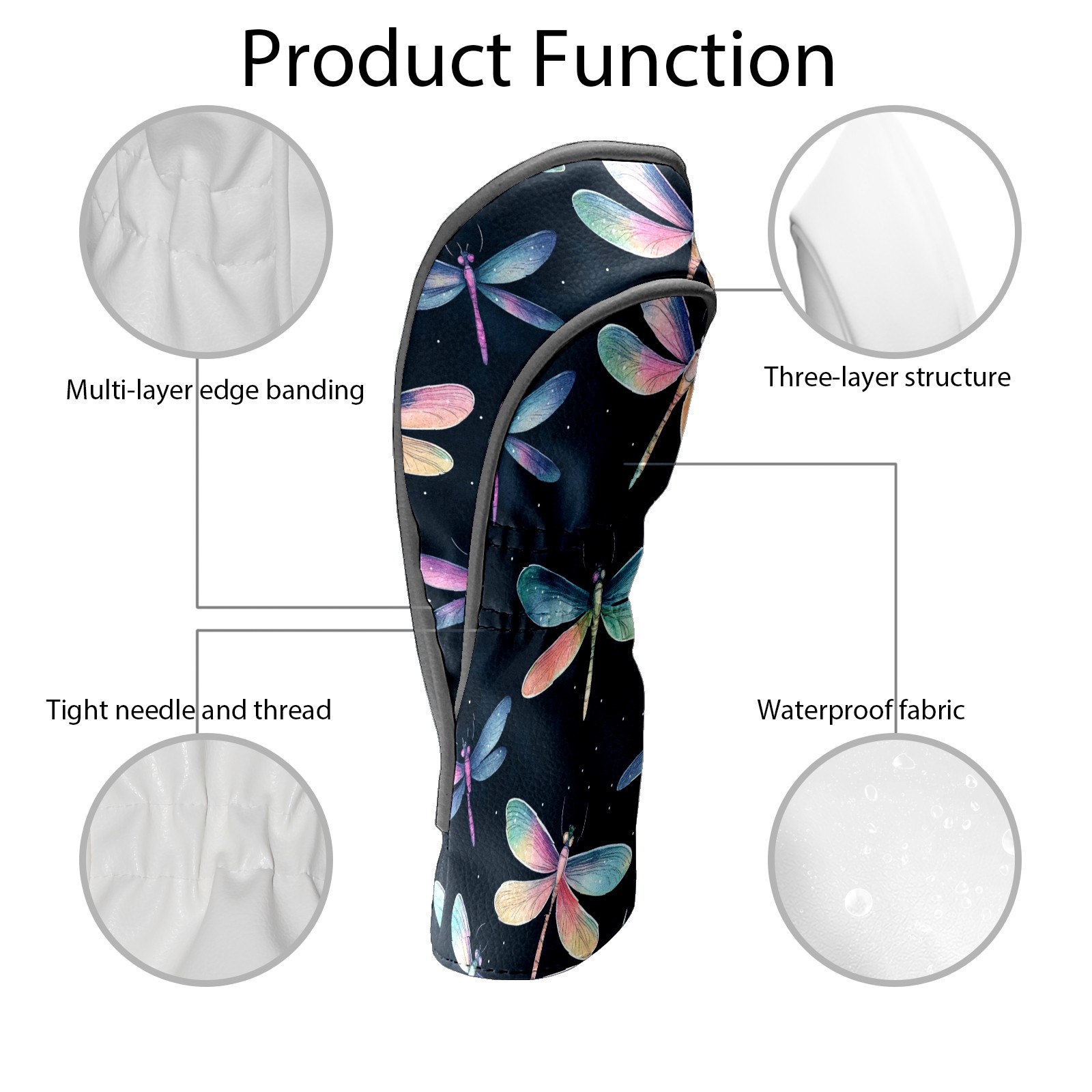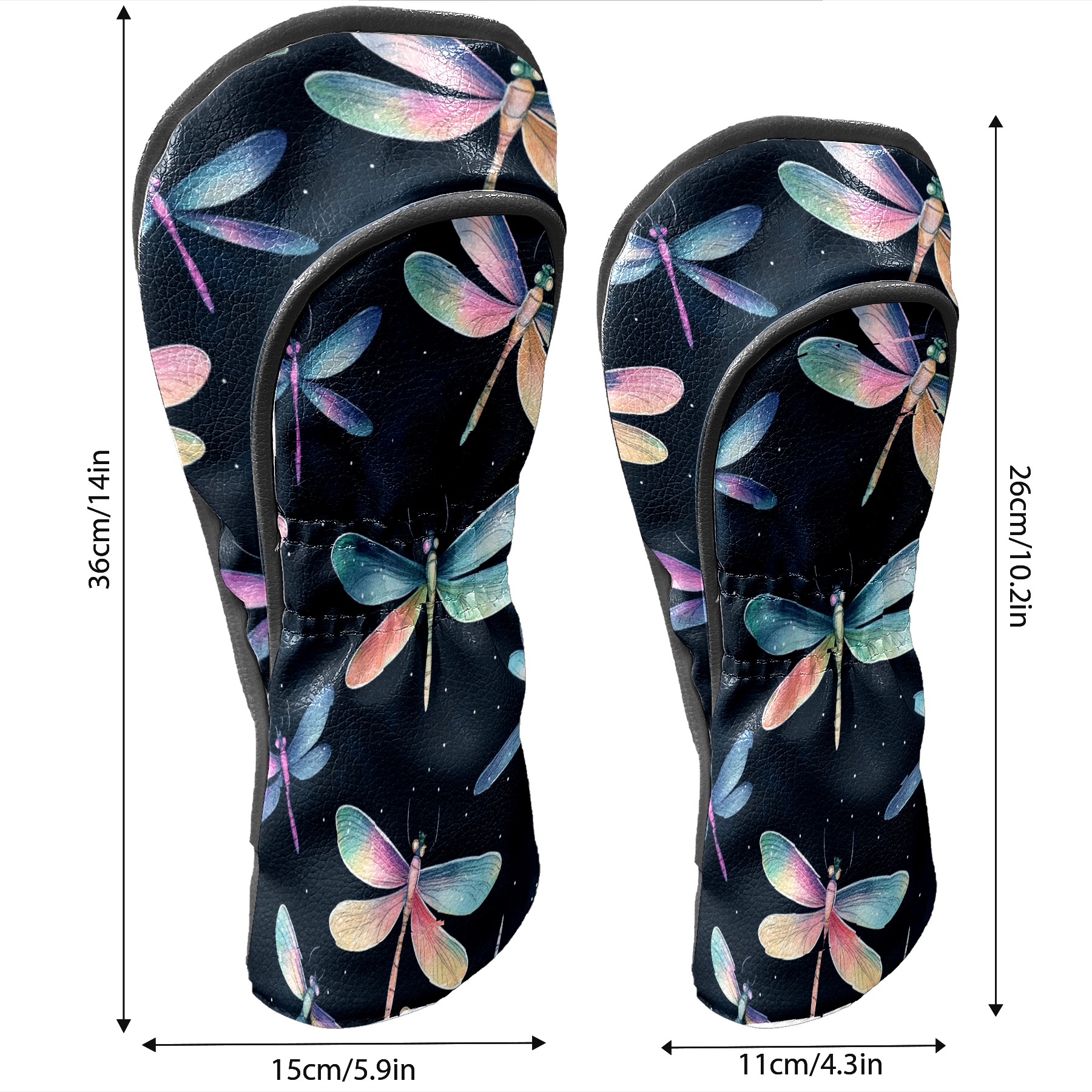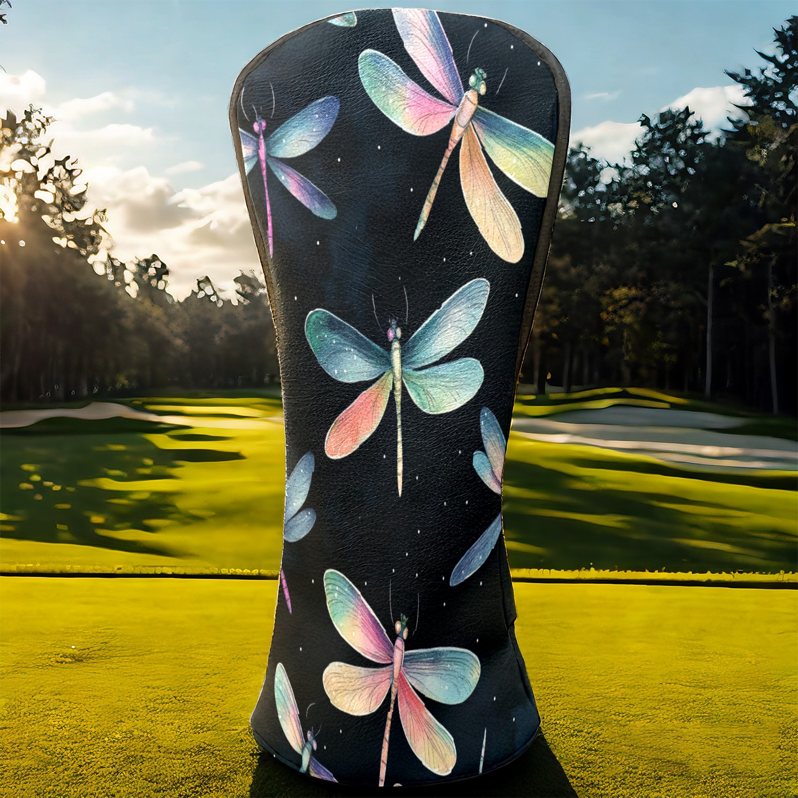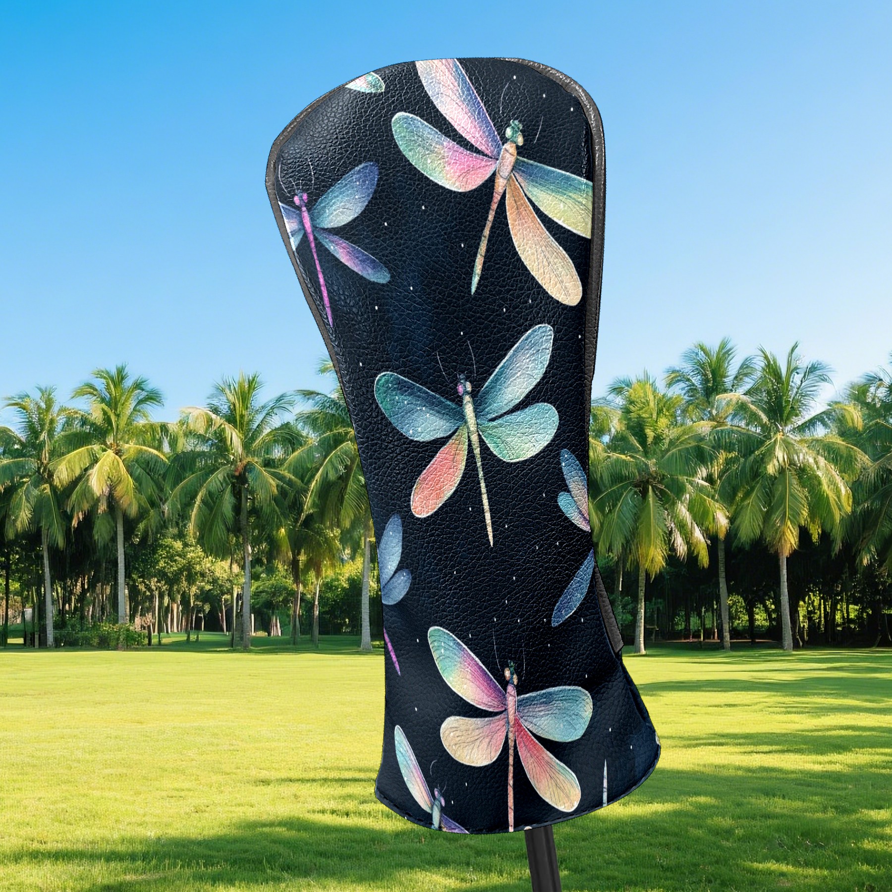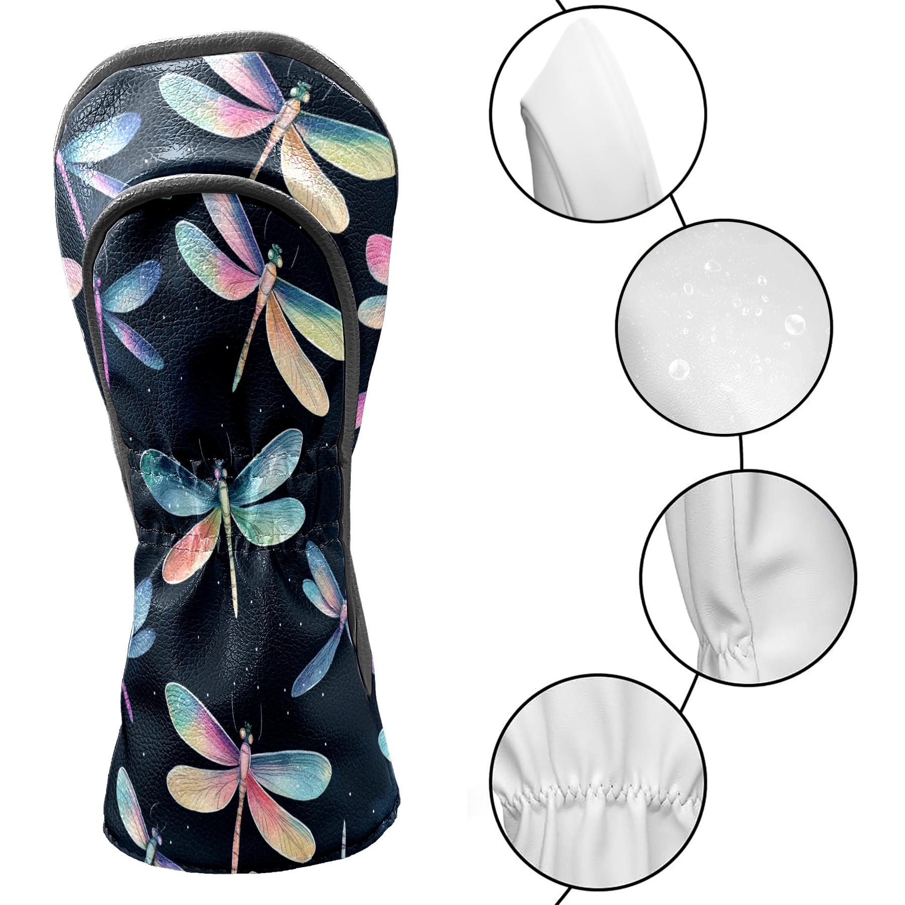 Golf Club Head Covers for Driver and Fairway Woods, Waterproof Leather Headcovers for Golf Clubs, Ideal Golf Accessories Gift for Men Women (Iridescent Dragonflies)