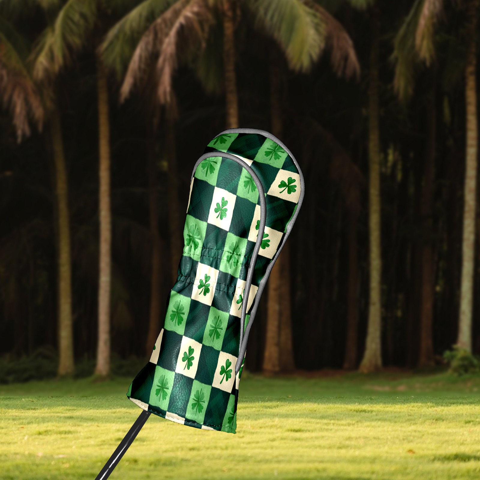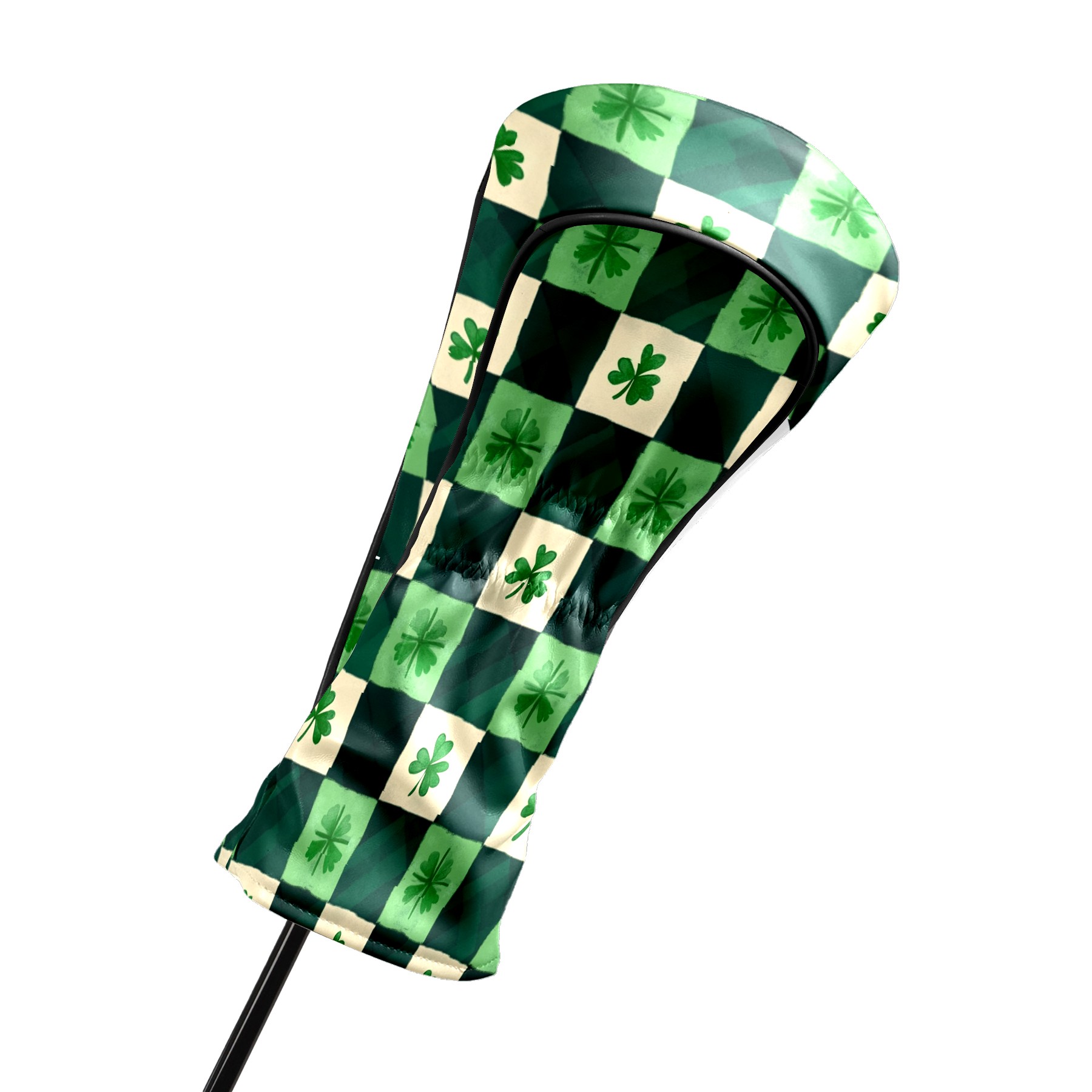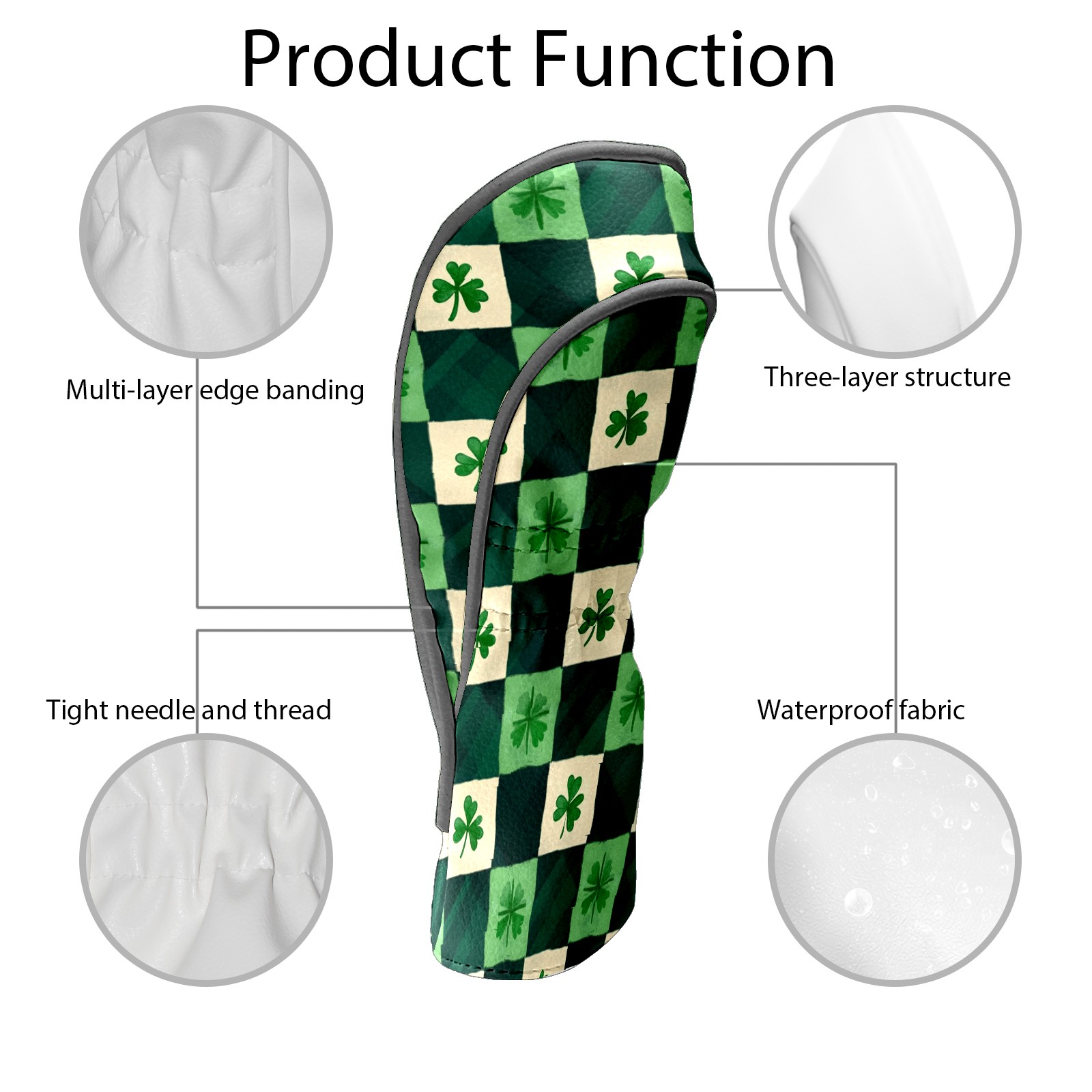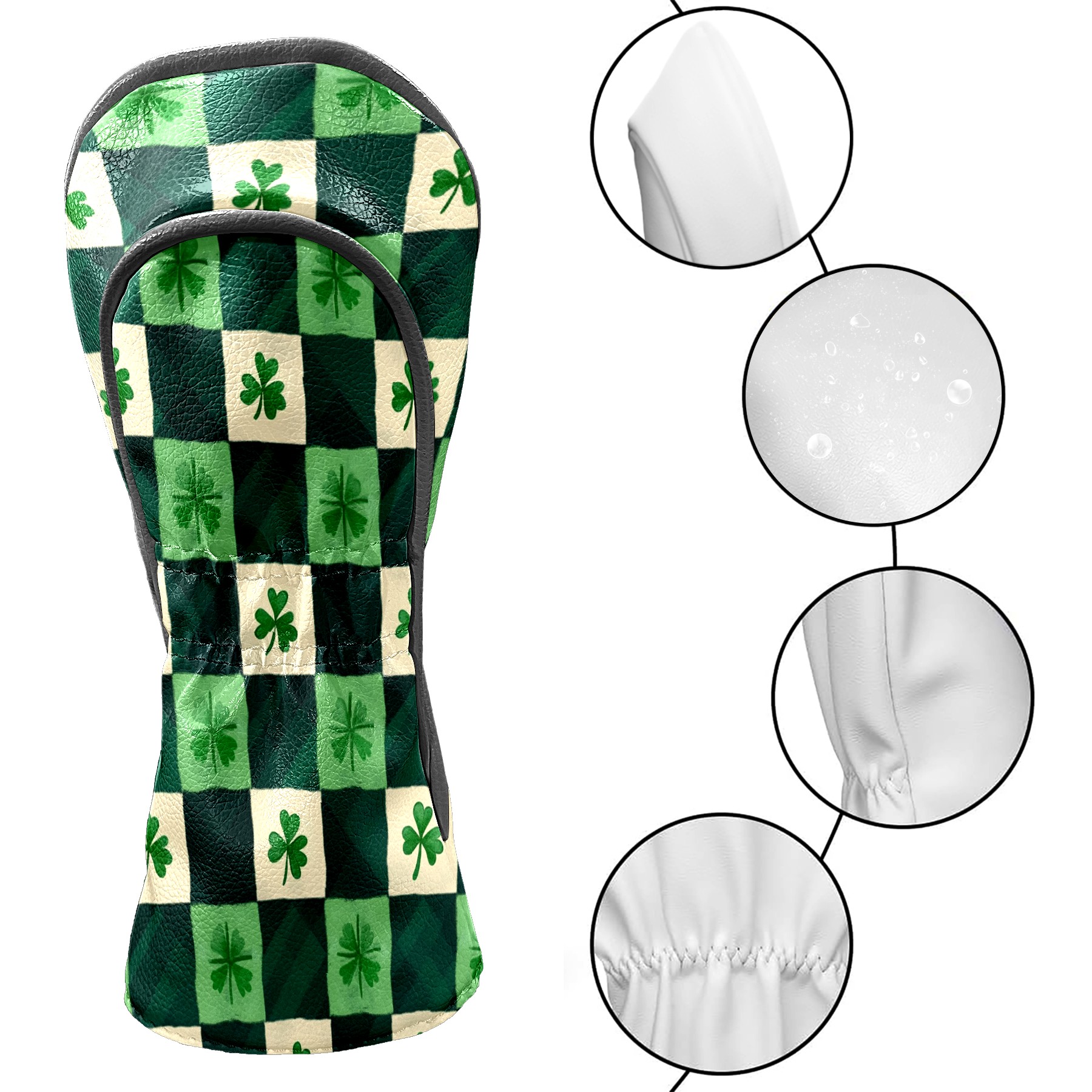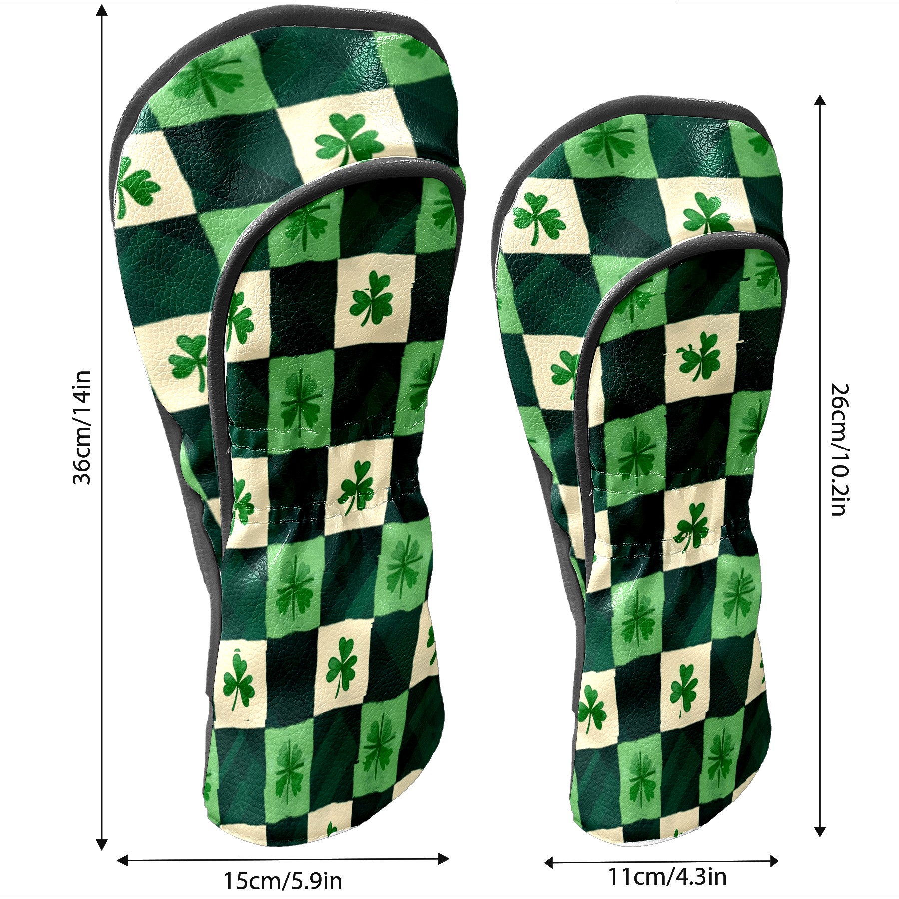Golf Club Head Covers for Driver and Fairway Woods, Waterproof Leather Headcovers for Golf Clubs, Ideal Golf Accessories Gift for Men Women (St.patricks Day Checkered)