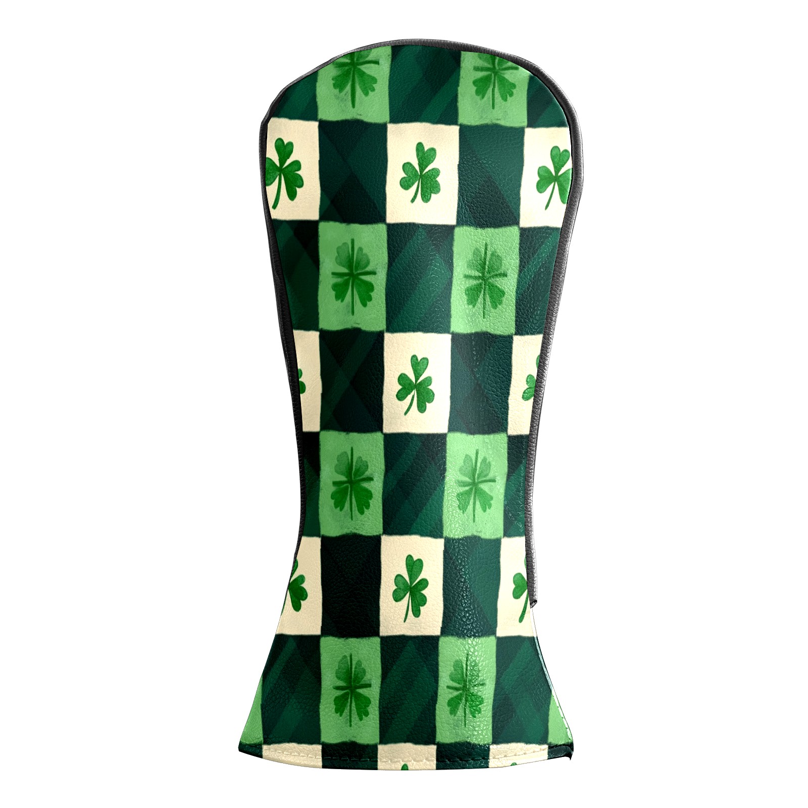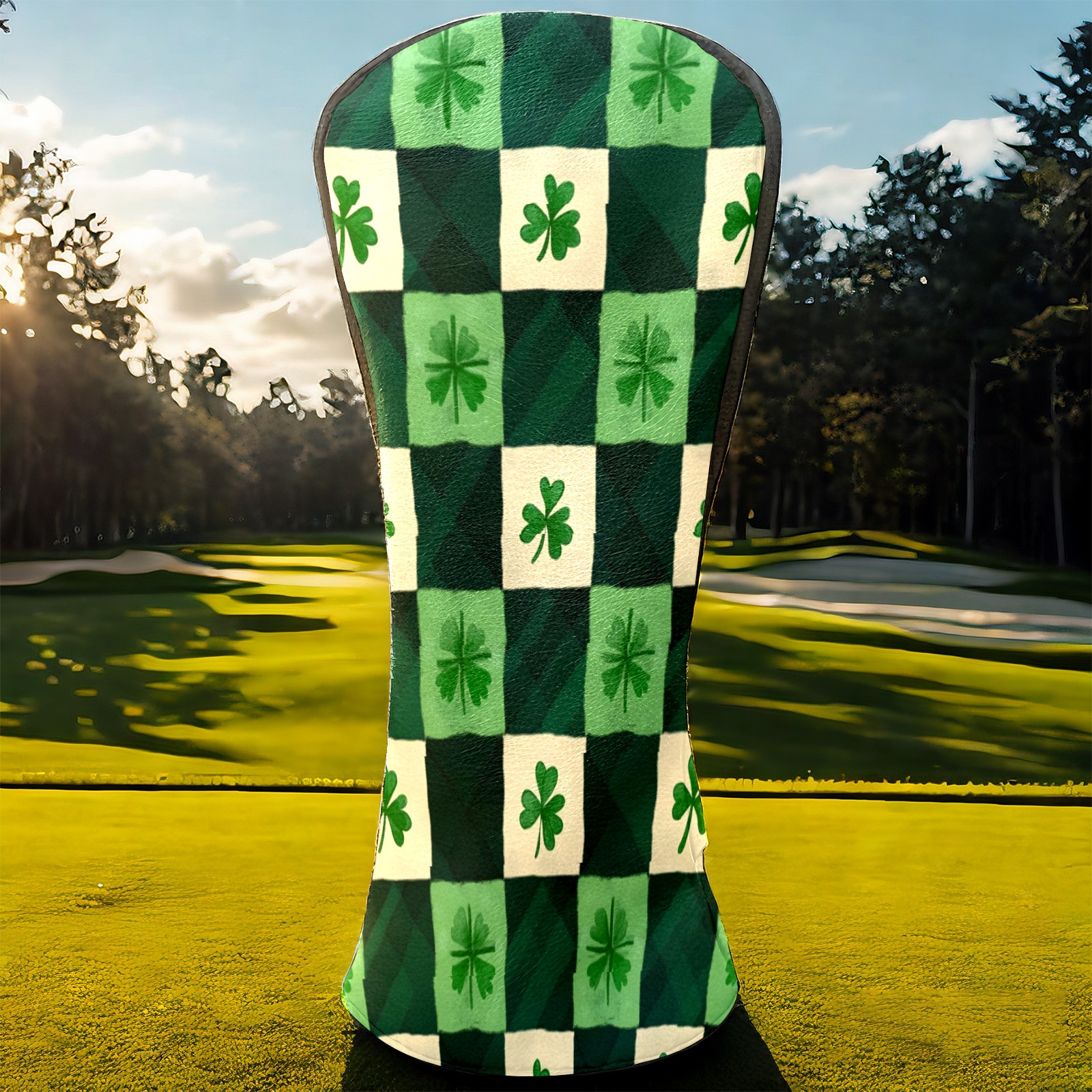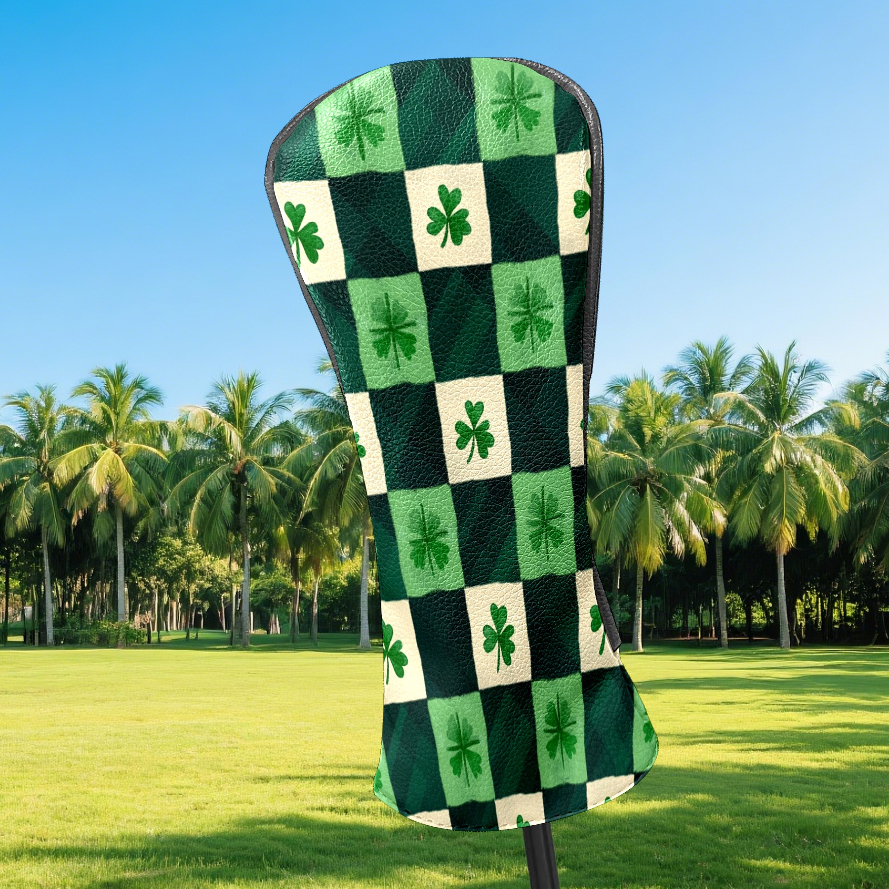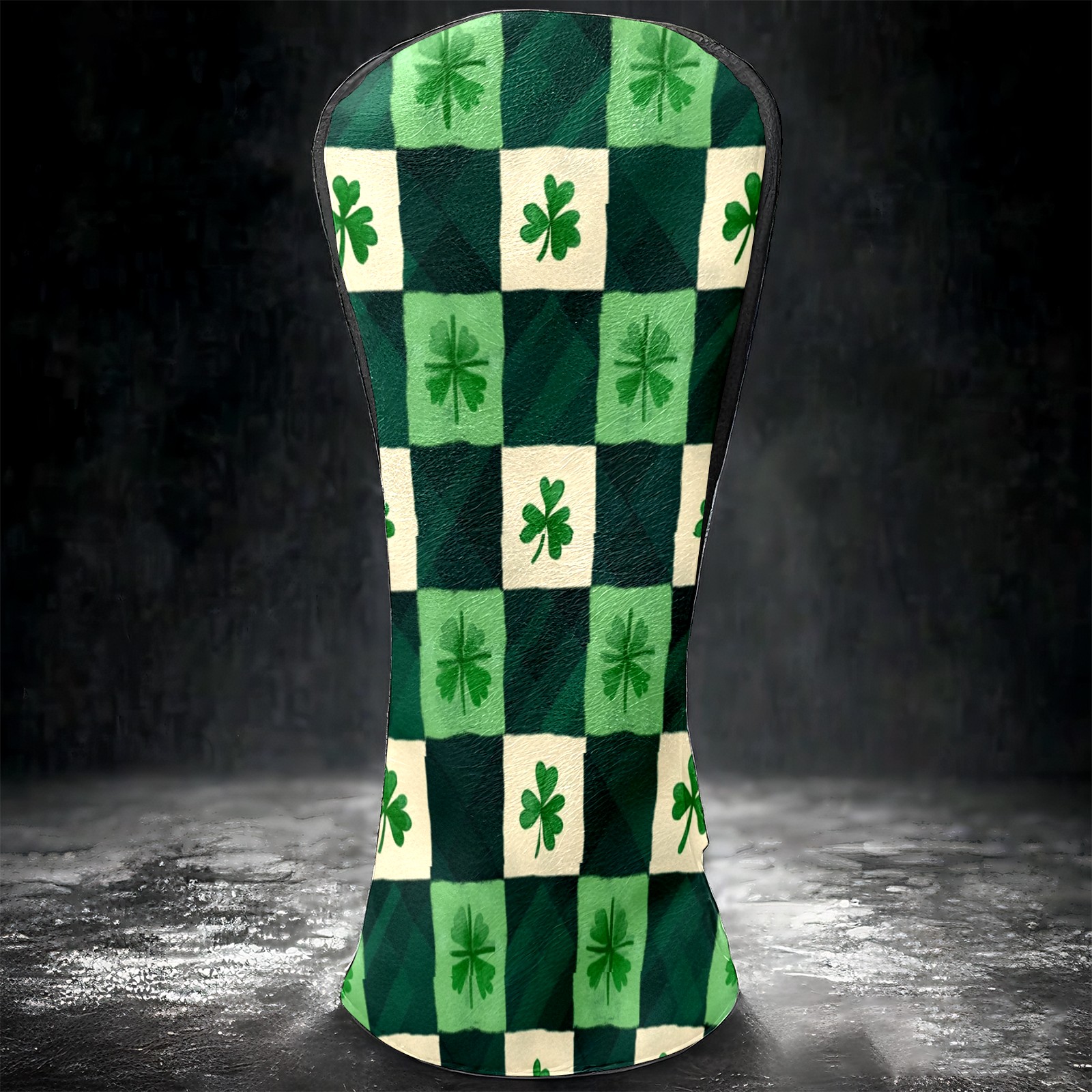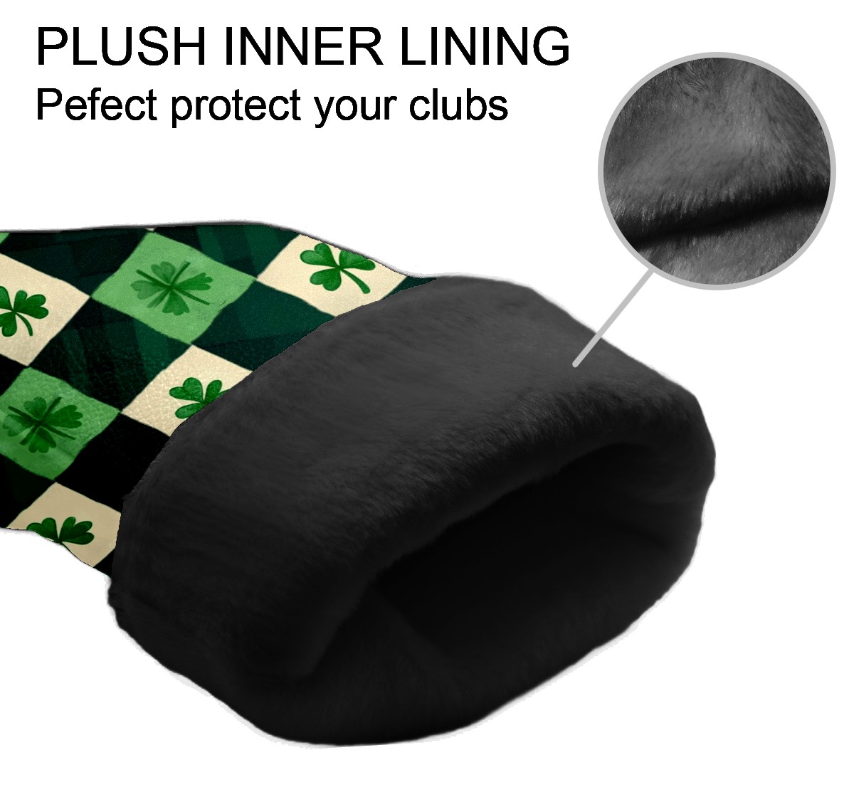 Golf Club Head Covers for Driver and Fairway Woods, Waterproof Leather Headcovers for Golf Clubs, Ideal Golf Accessories Gift for Men Women (St.patricks Day Checkered)