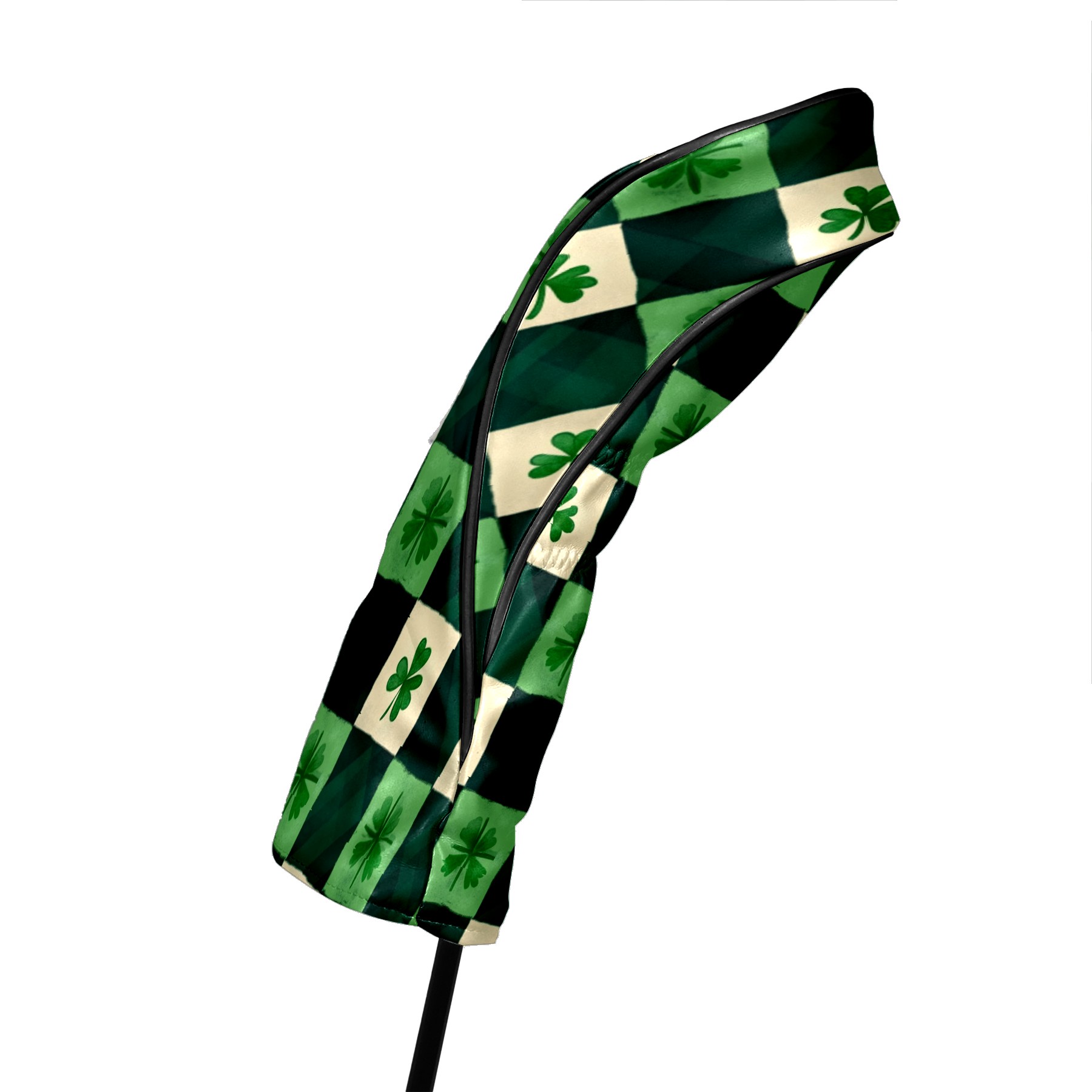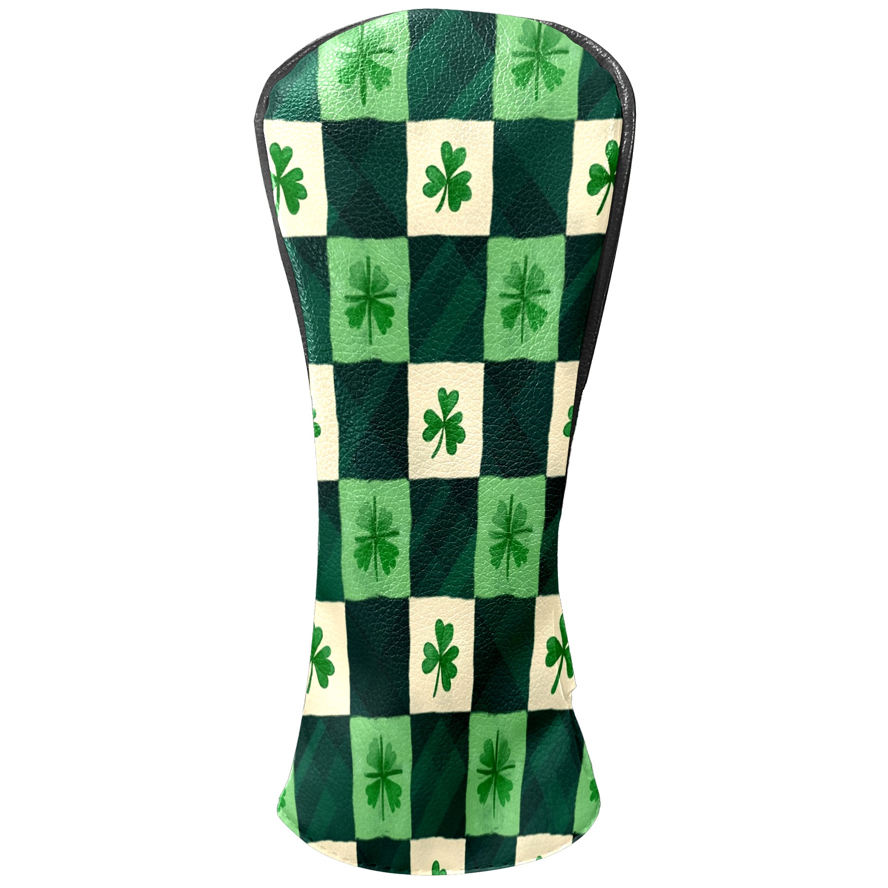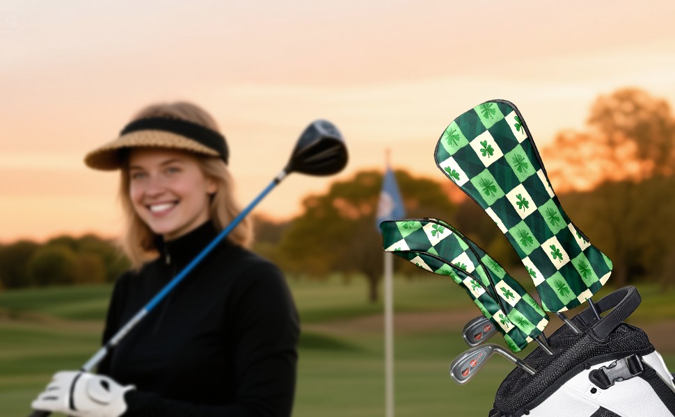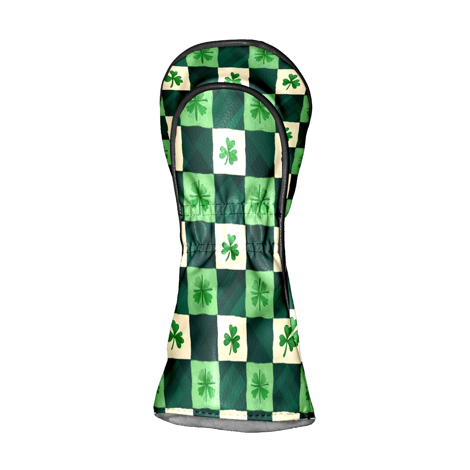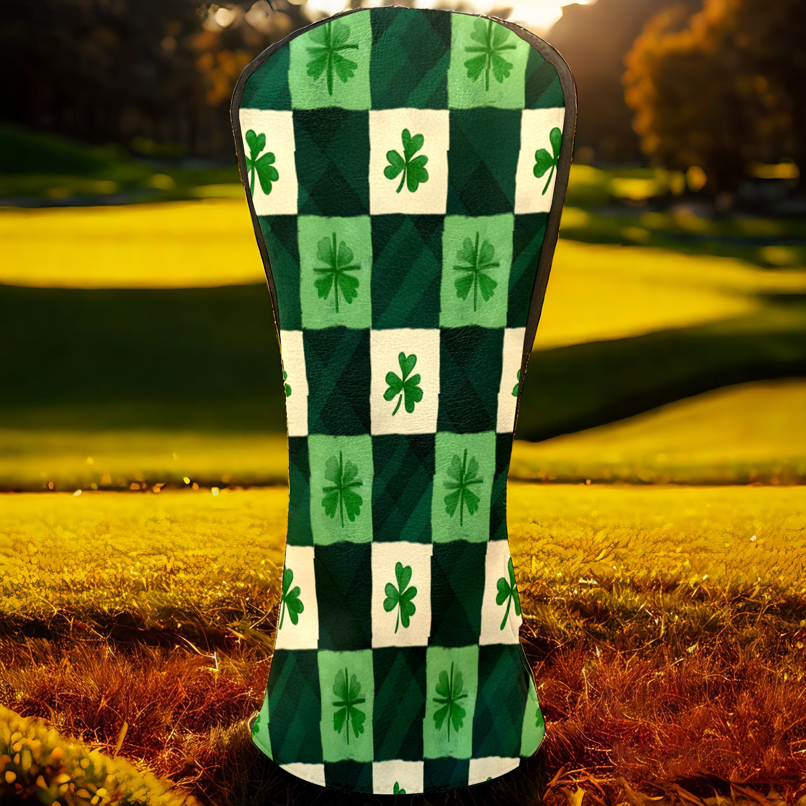 Golf Club Head Covers for Driver and Fairway Woods, Waterproof Leather Headcovers for Golf Clubs, Ideal Golf Accessories Gift for Men Women (St.patricks Day Checkered)