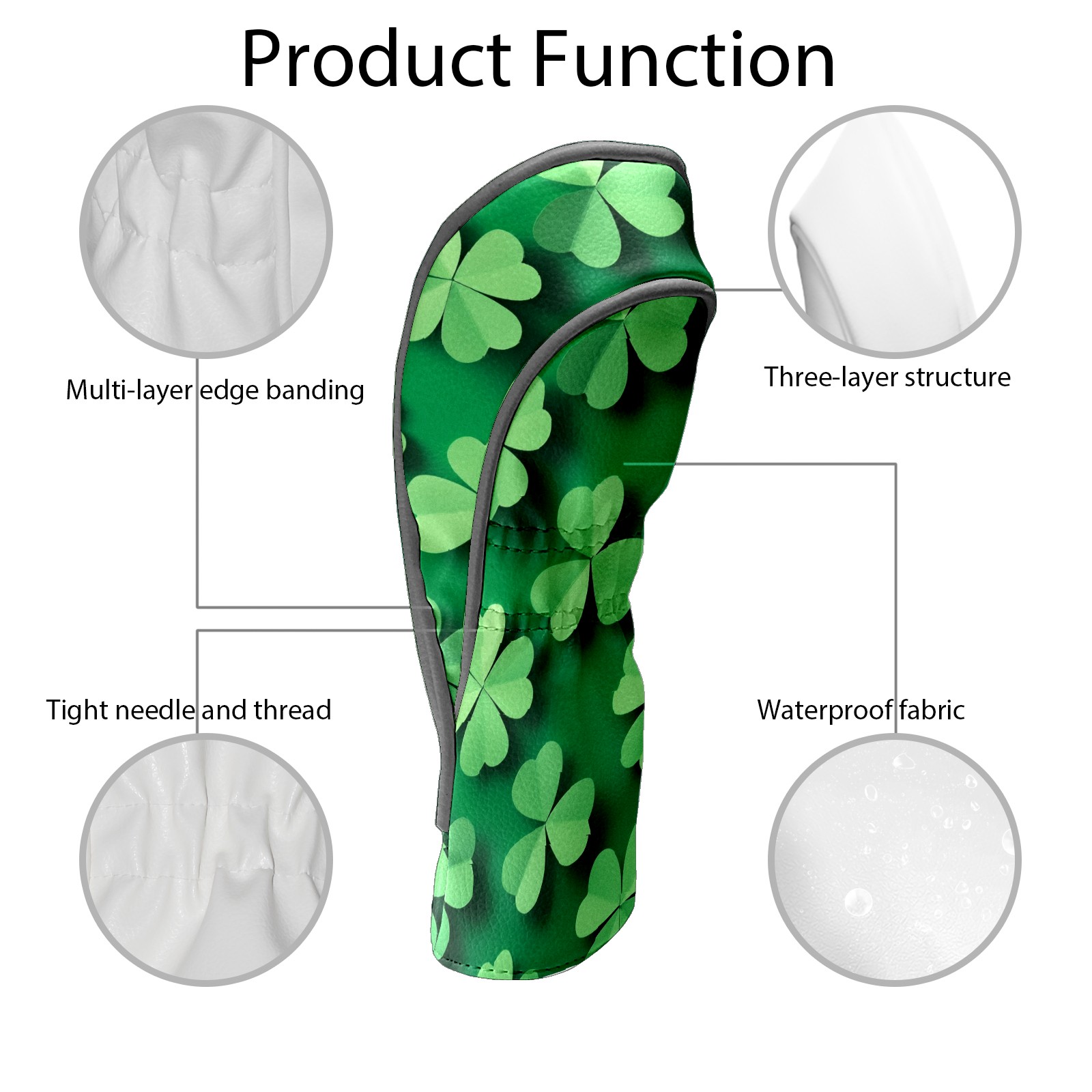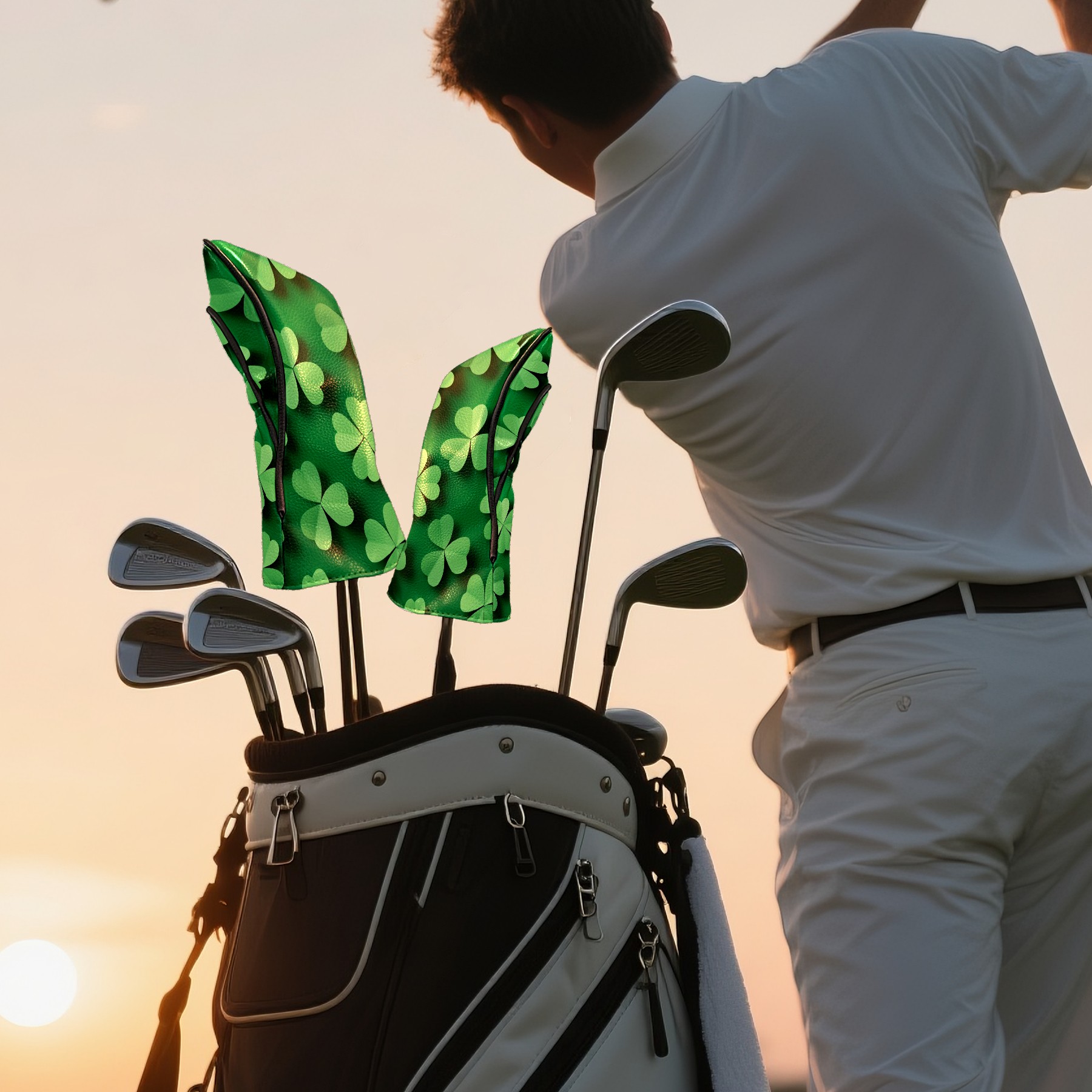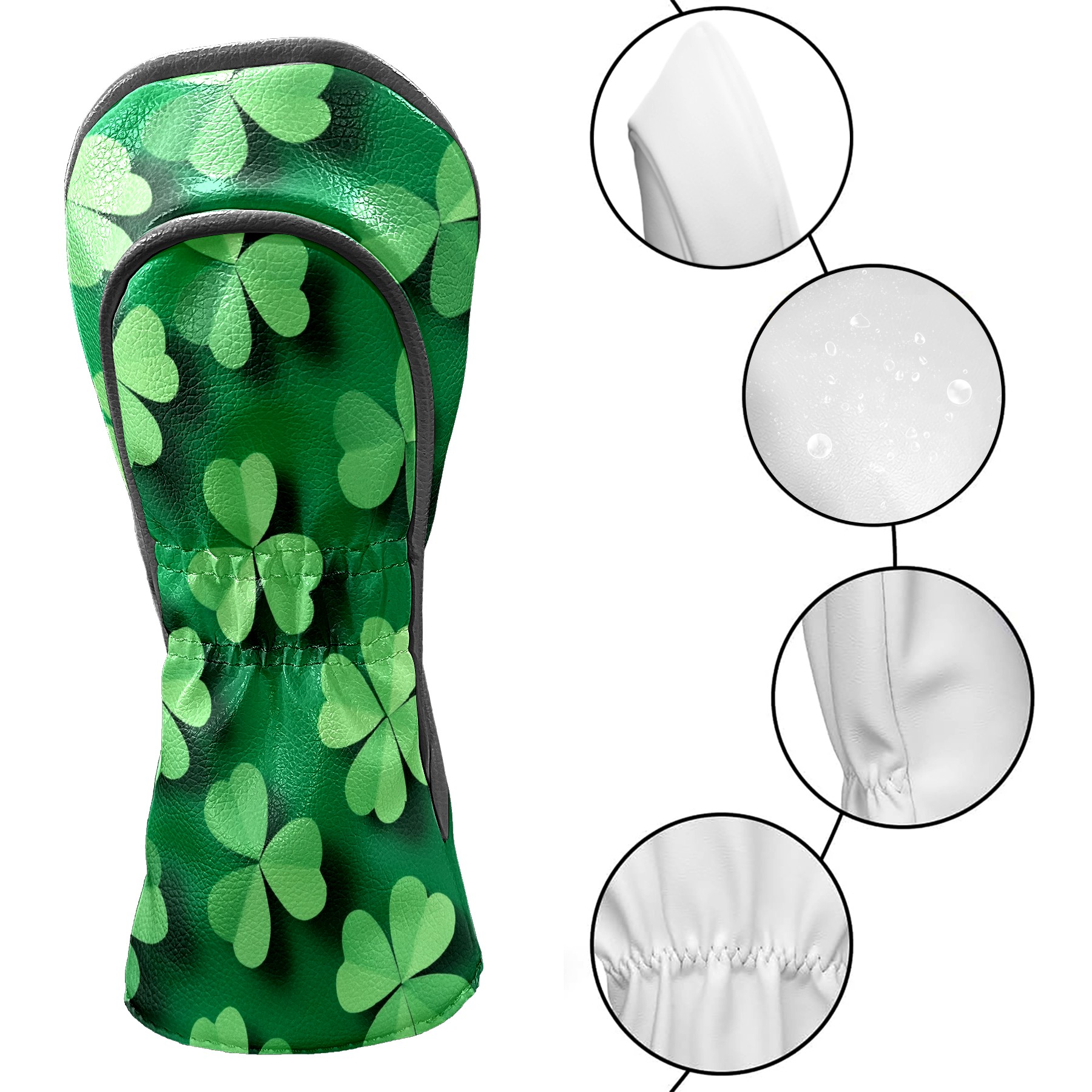 Golf Club Head Covers for Driver and Fairway Woods, Waterproof Leather Headcovers for Golf Clubs, Ideal Golf Accessories Gift for Men Women (Green Shamrock)