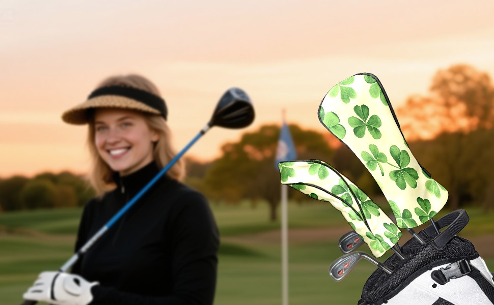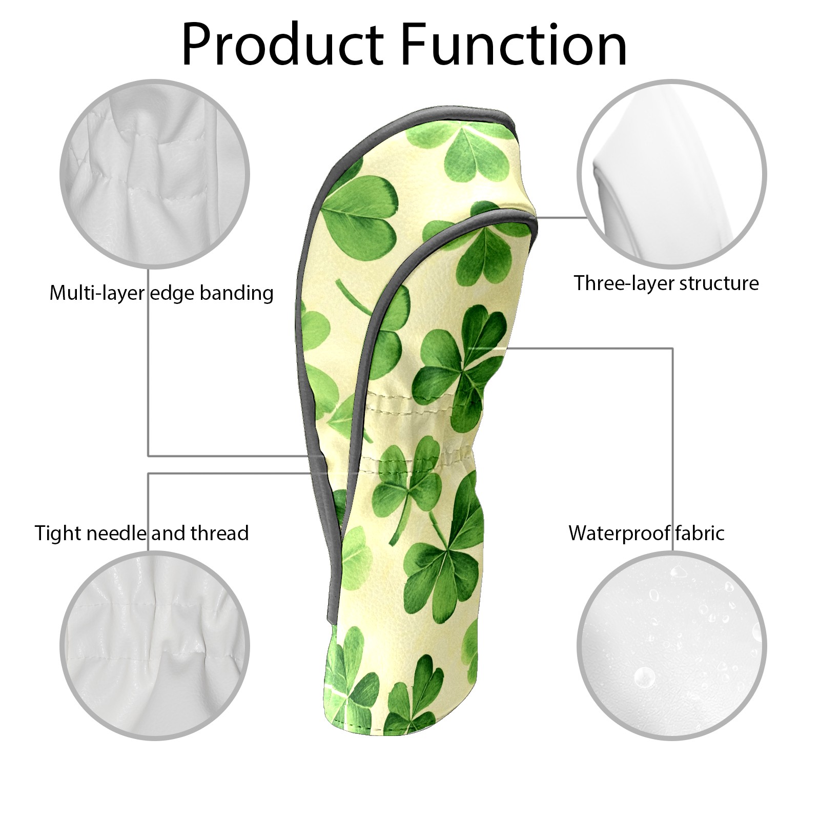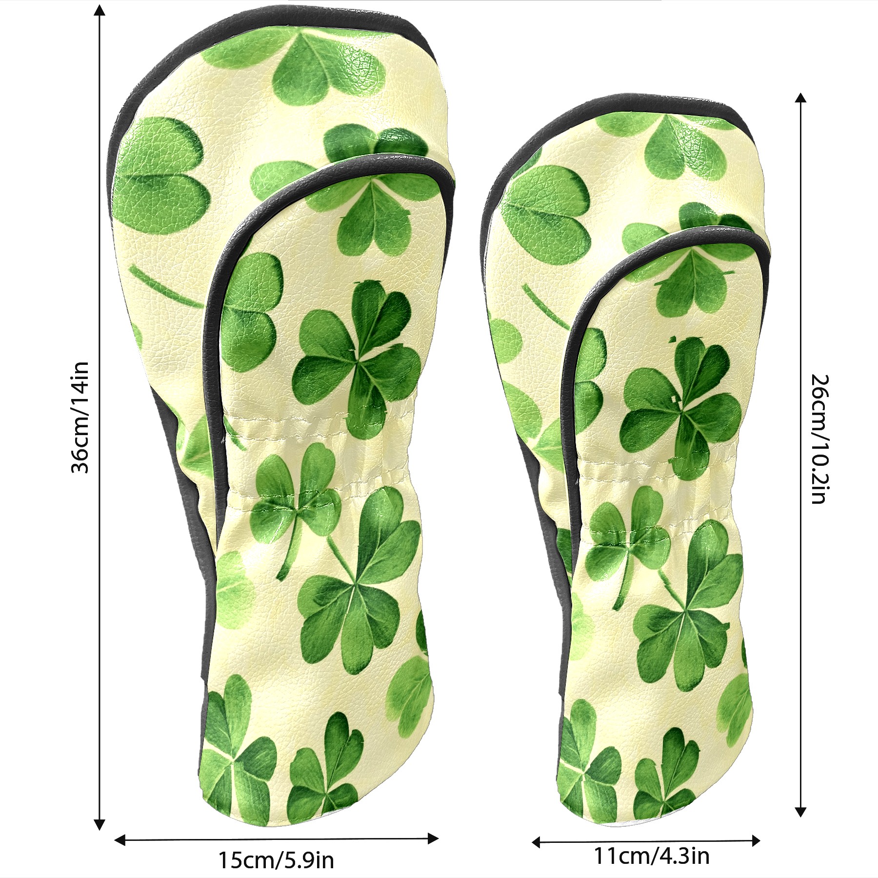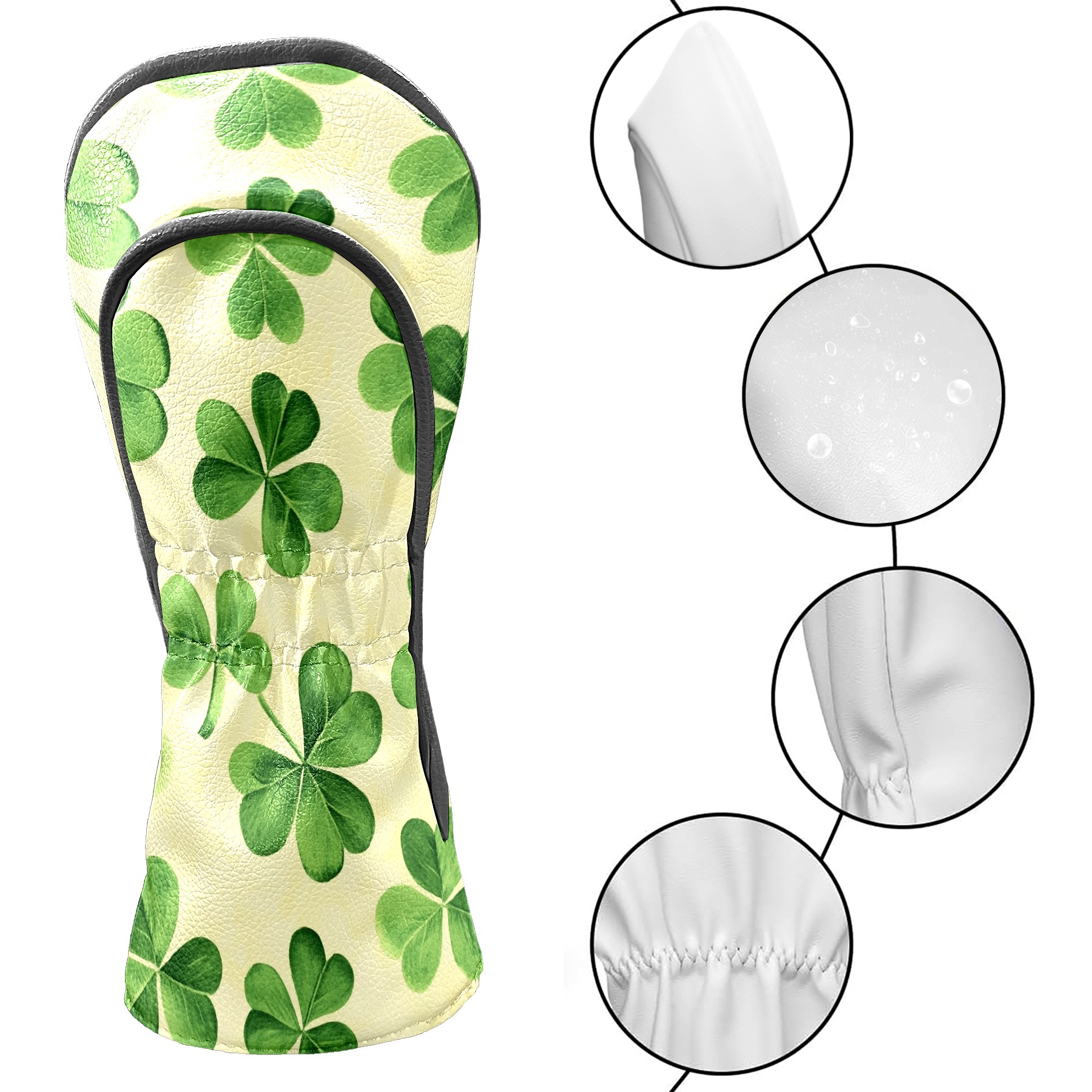 Golf Club Head Covers for Driver and Fairway Woods, Waterproof Leather Headcovers for Golf Clubs, Ideal Golf Accessories Gift for Men Women (Green Shamrocks)