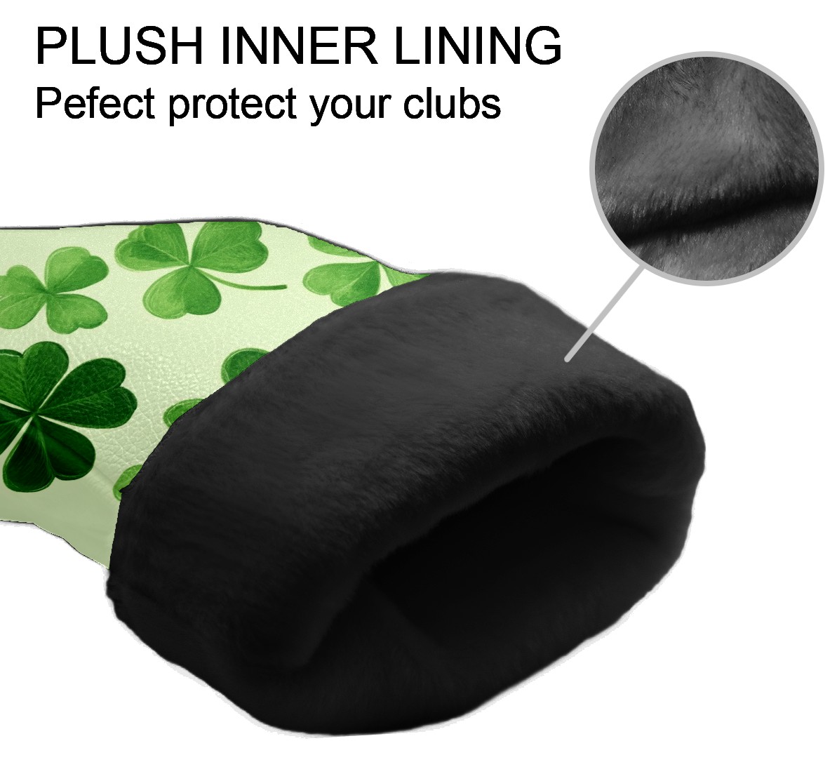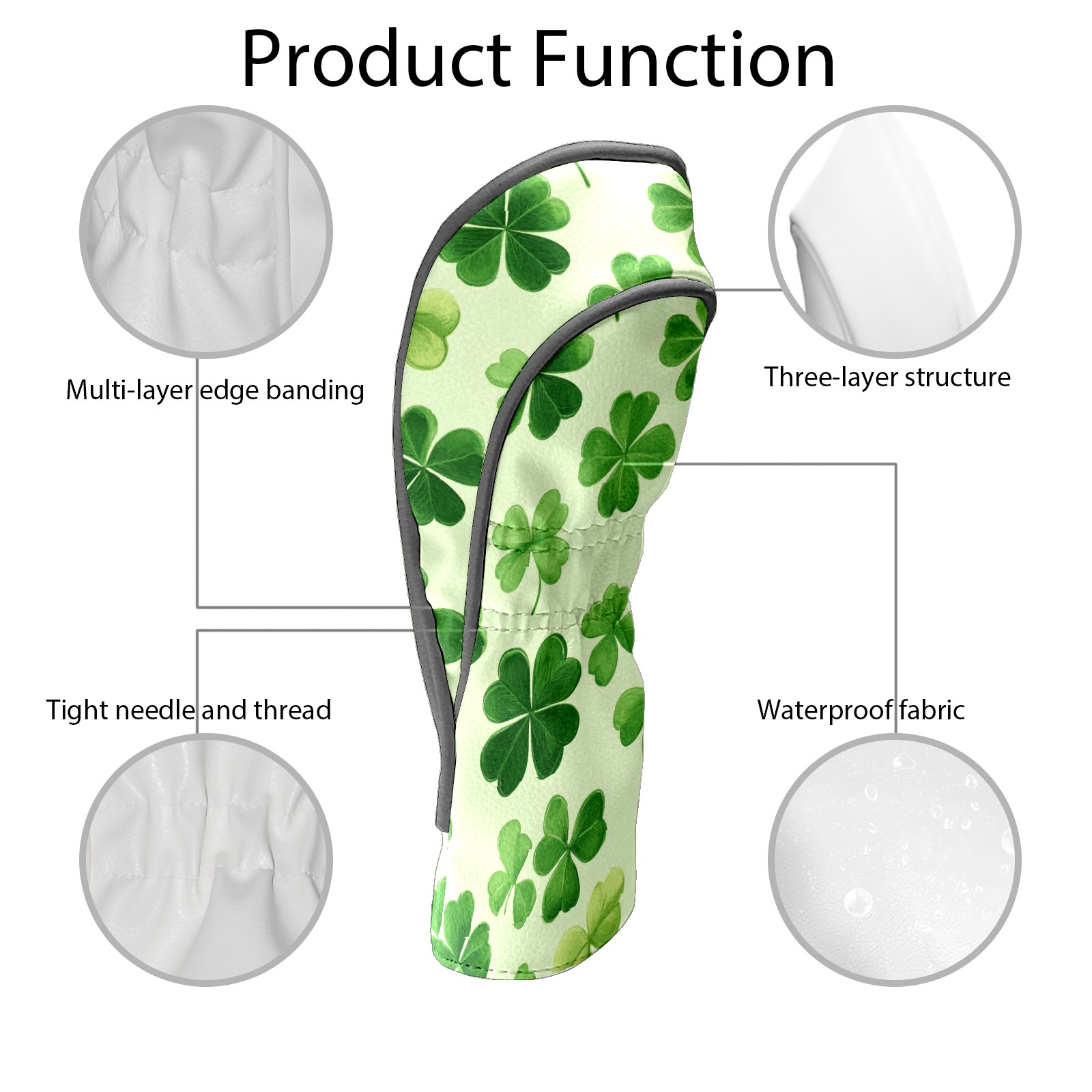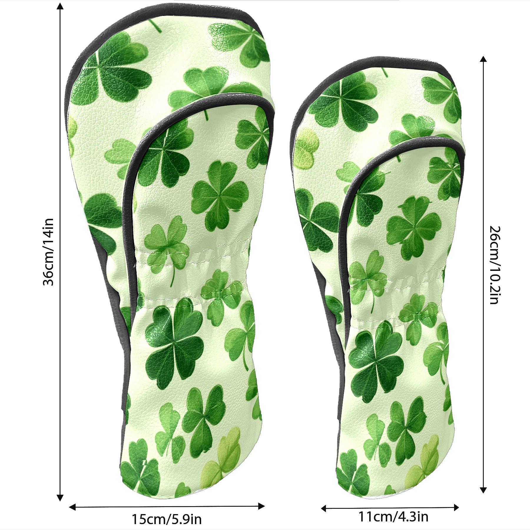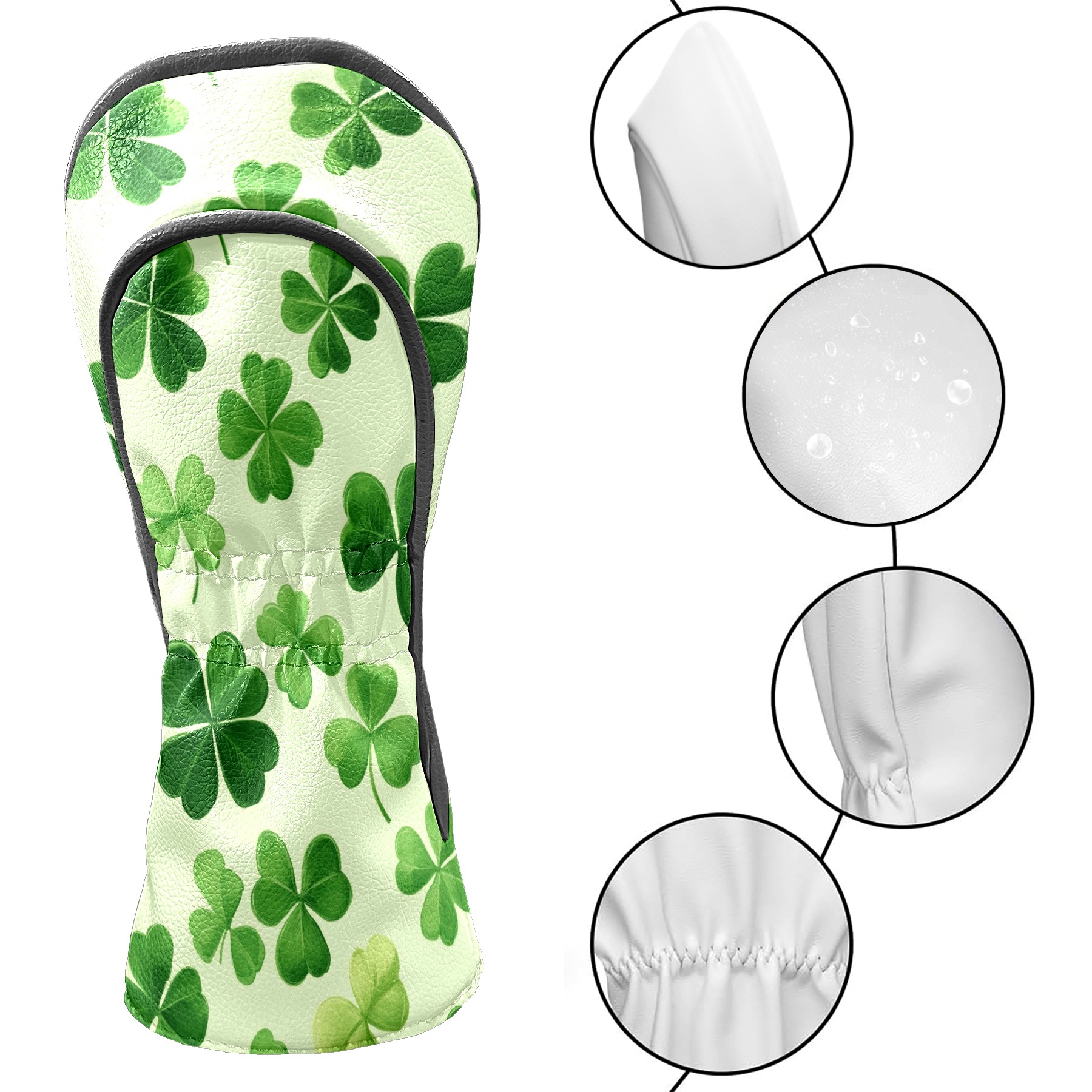 Golf Club Head Covers for Driver and Fairway Woods, Waterproof Leather Headcovers for Golf Clubs, Ideal Golf Accessories Gift for Men Women (Shamrock Leaves)