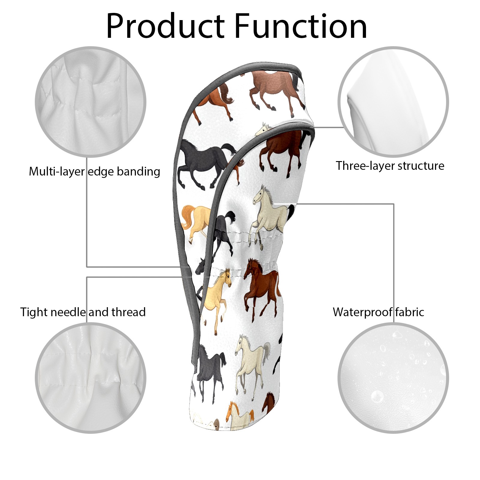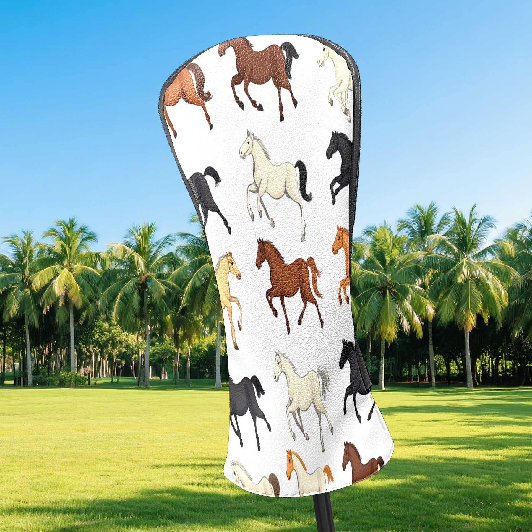 Golf Club Head Covers for Driver and Fairway Woods, Waterproof Leather Headcovers for Golf Clubs, Ideal Golf Accessories Gift for Men Women (Horses)