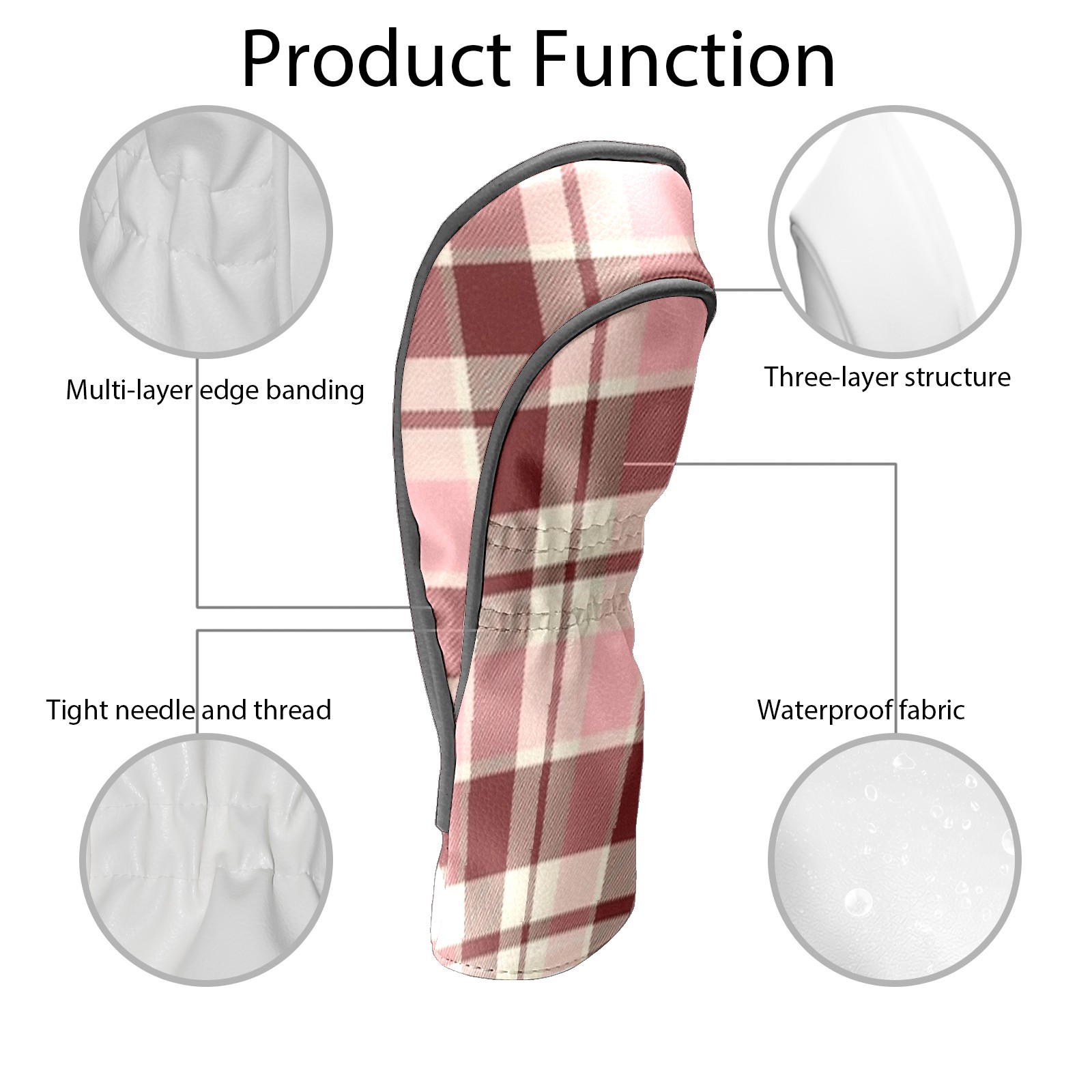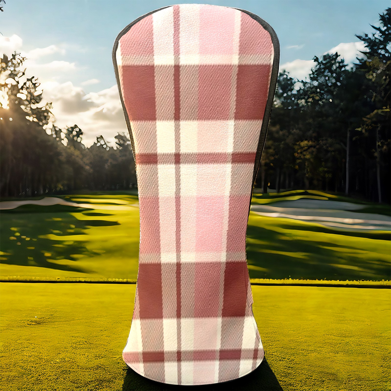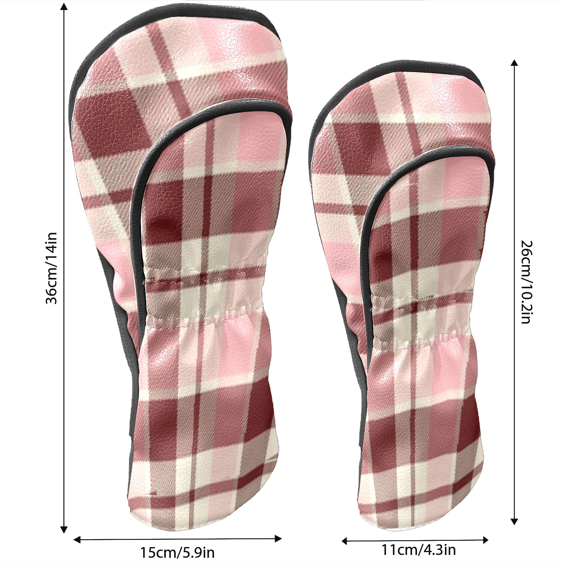 Golf Club Head Covers for Driver and Fairway Woods, Waterproof Leather Headcovers for Golf Clubs, Ideal Golf Accessories Gift for Men Women (Pink And Brown Checkered)