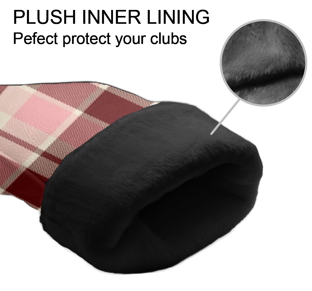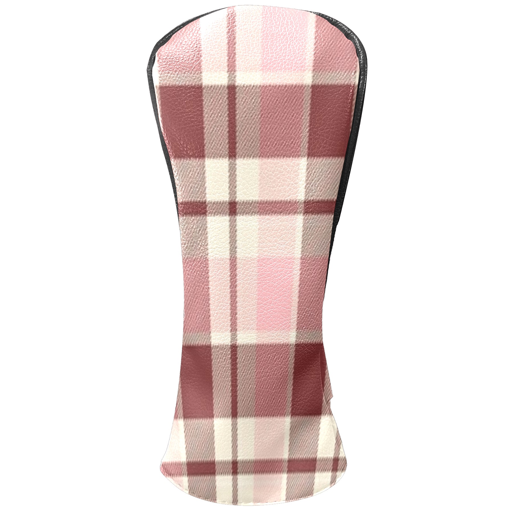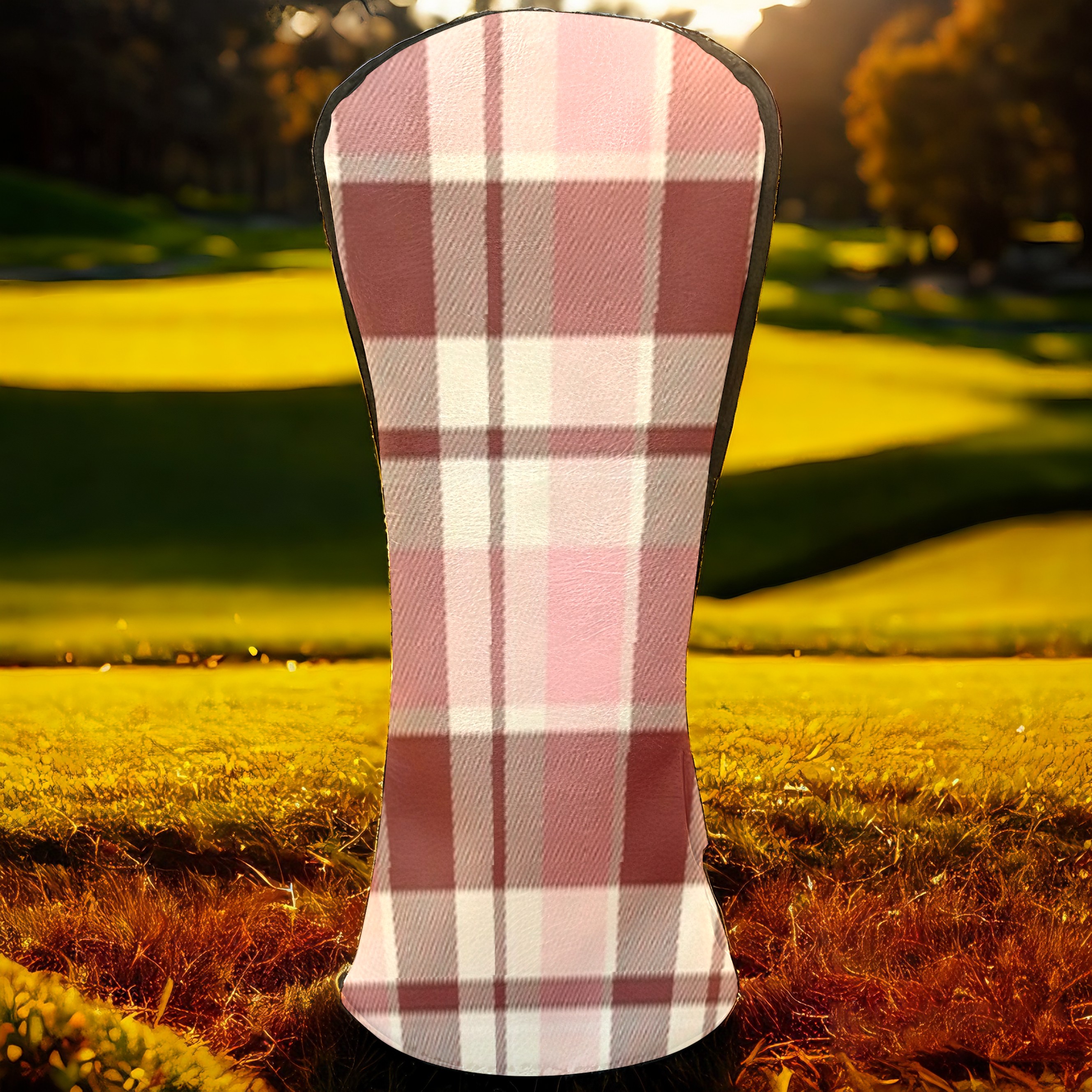 Golf Club Head Covers for Driver and Fairway Woods, Waterproof Leather Headcovers for Golf Clubs, Ideal Golf Accessories Gift for Men Women (Pink And Brown Checkered)
