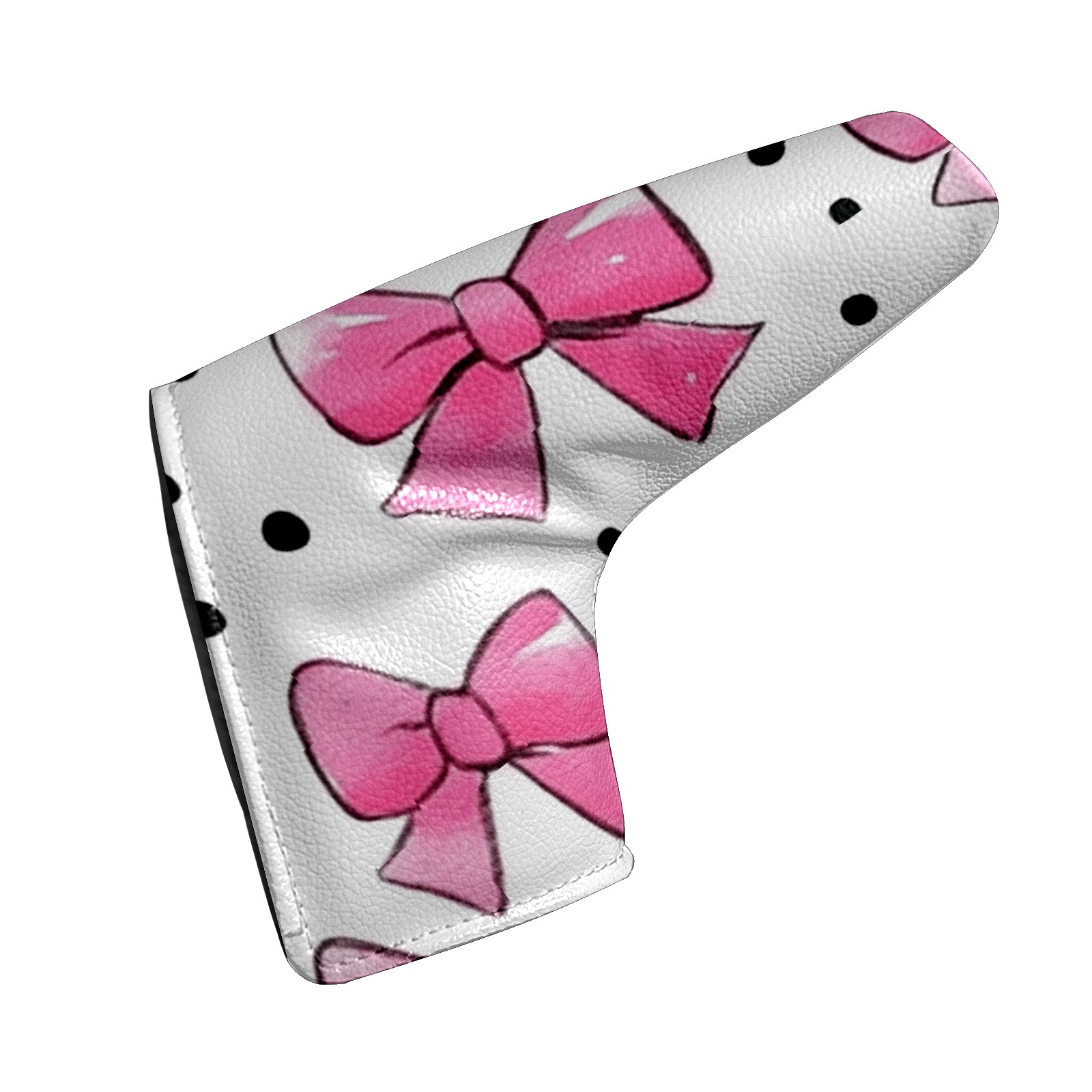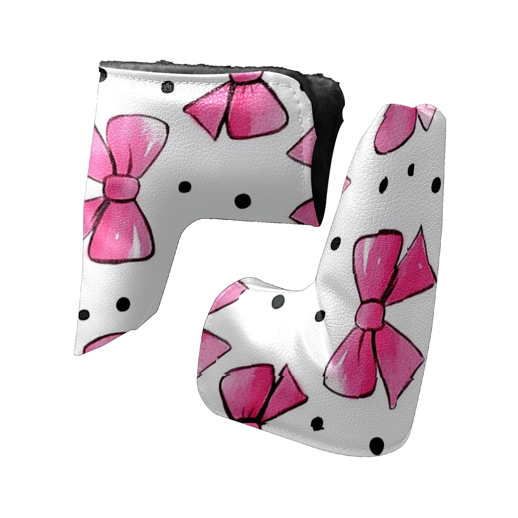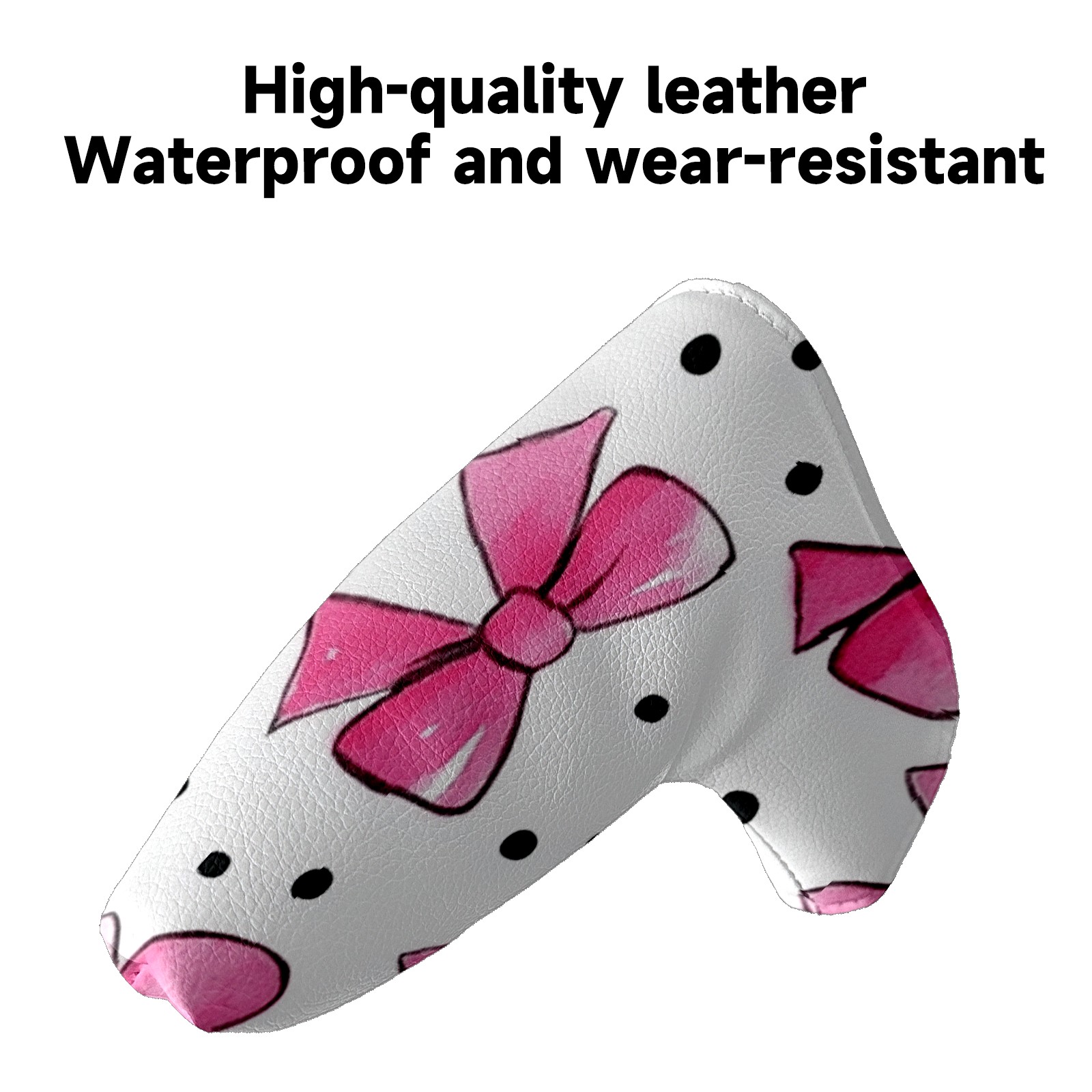 Golf Club Head Covers for Blade Putter, Waterproof Leather Headcovers for Golf Clubs, Ideal Golf Accessories Gift for Men Women (Pink Bows And Black Dots)
