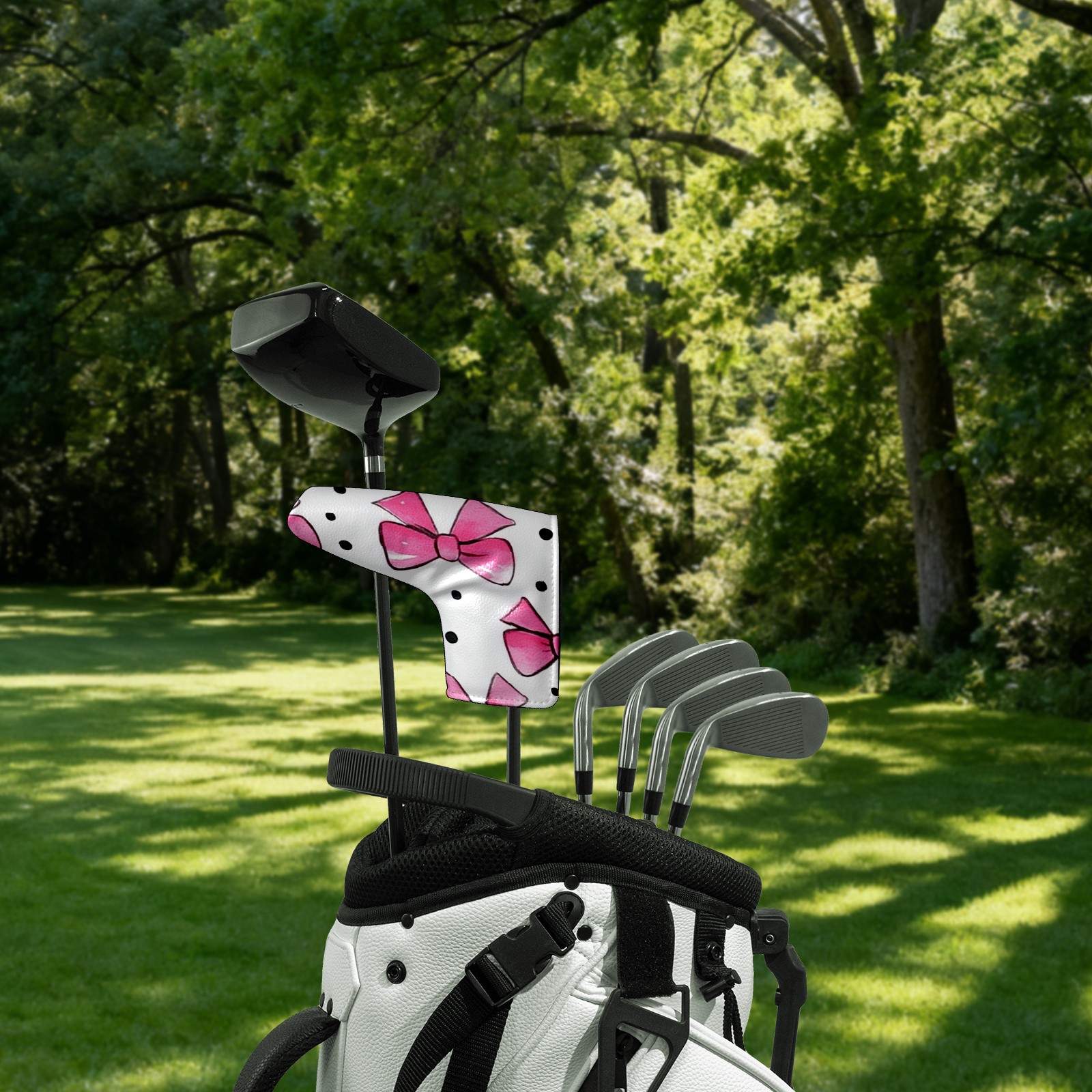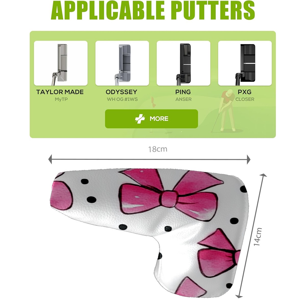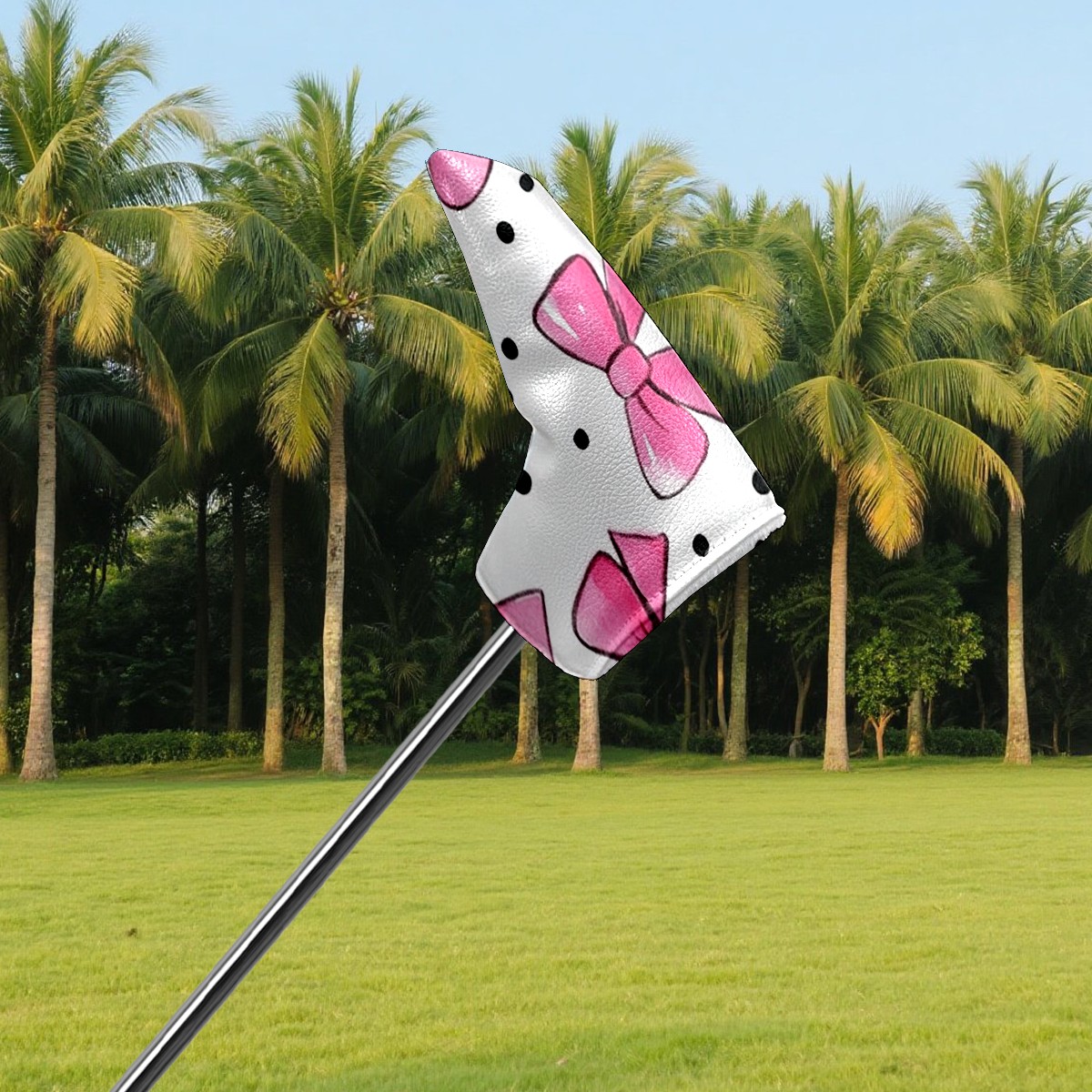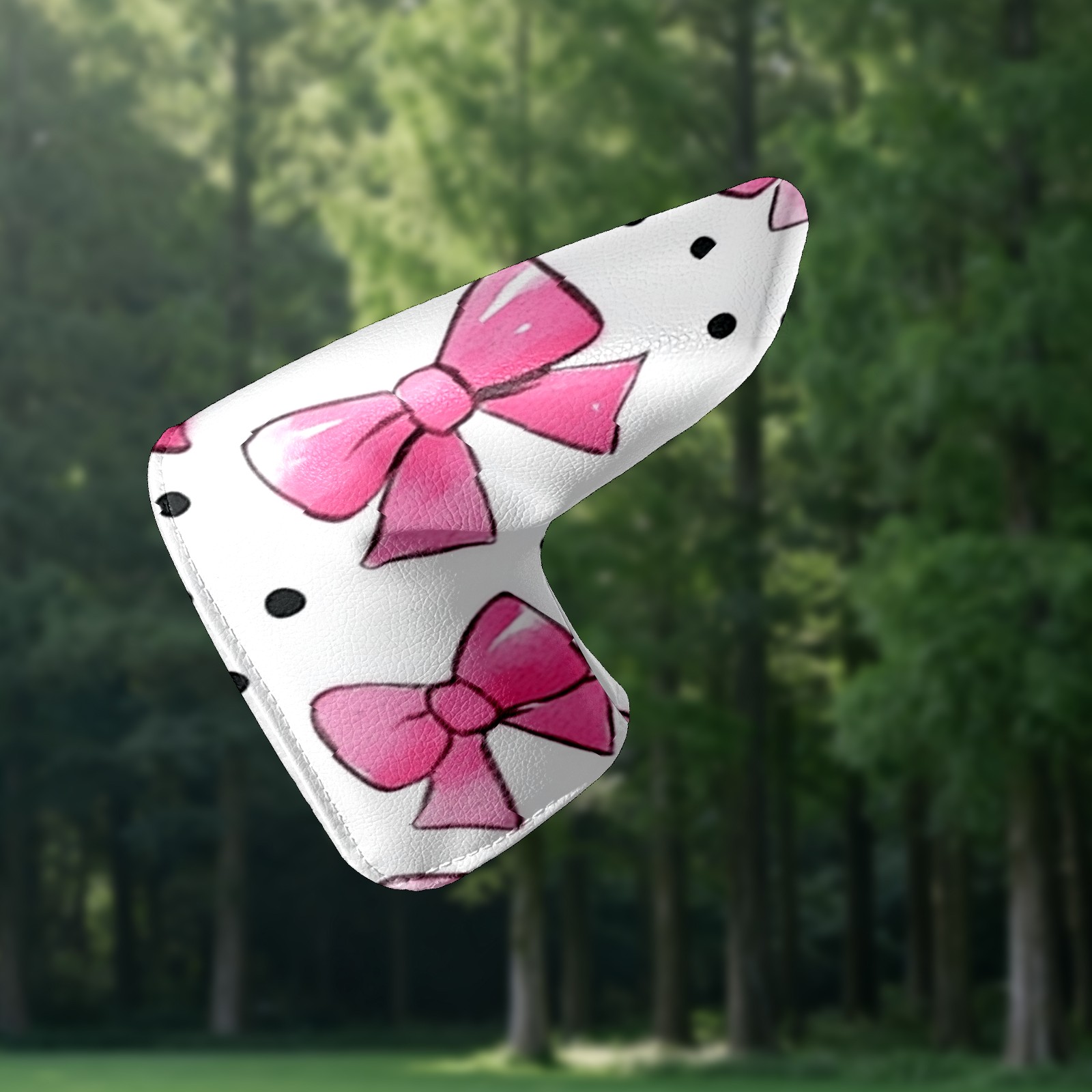 Golf Club Head Covers for Blade Putter, Waterproof Leather Headcovers for Golf Clubs, Ideal Golf Accessories Gift for Men Women (Pink Bows And Black Dots)