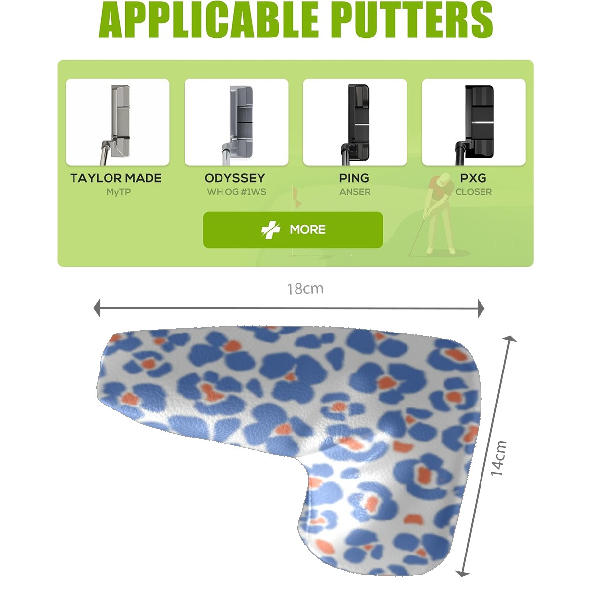 Golf Club Head Covers for Blade Putter, Waterproof Leather Headcovers for Golf Clubs, Ideal Golf Accessories Gift for Men Women (Blue Leopard)