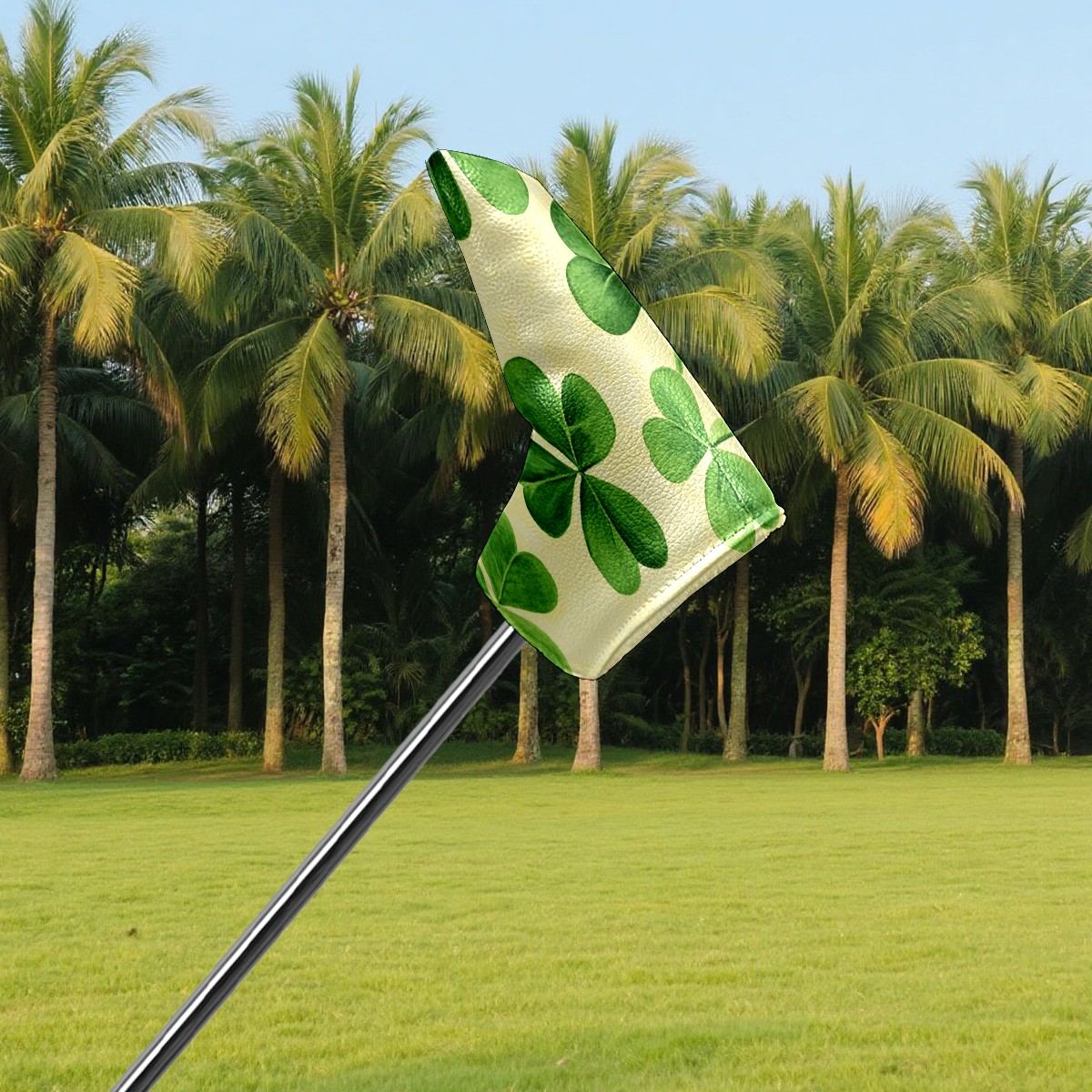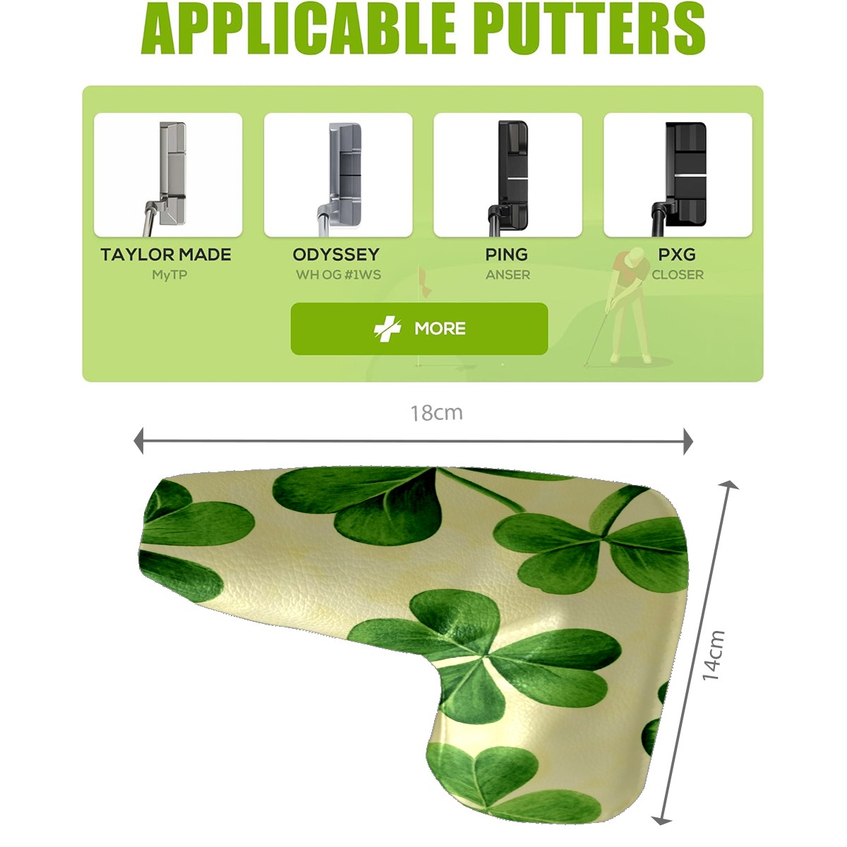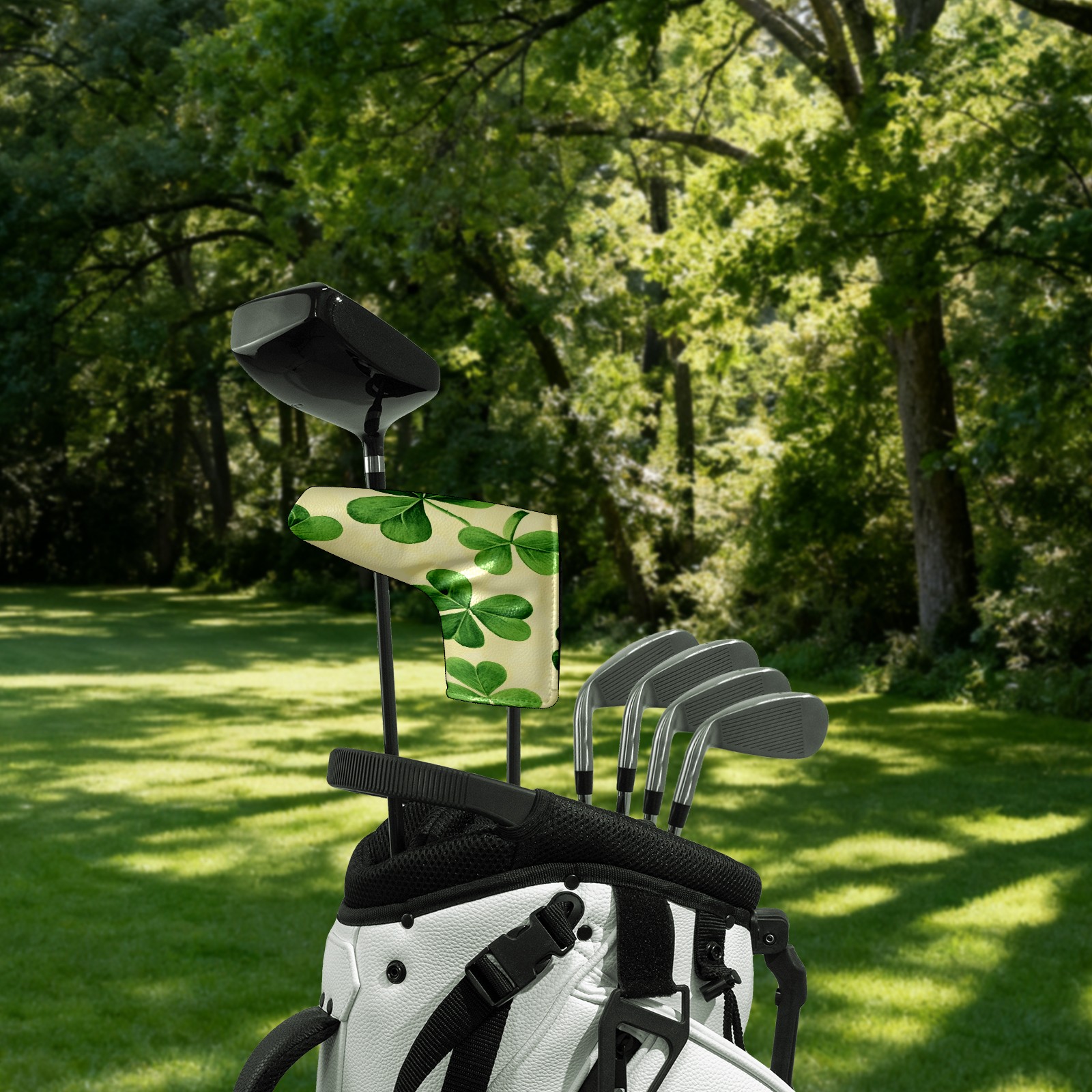 Golf Club Head Covers for Blade Putter, Waterproof Leather Headcovers for Golf Clubs, Ideal Golf Accessories Gift for Men Women (Green Shamrocks)