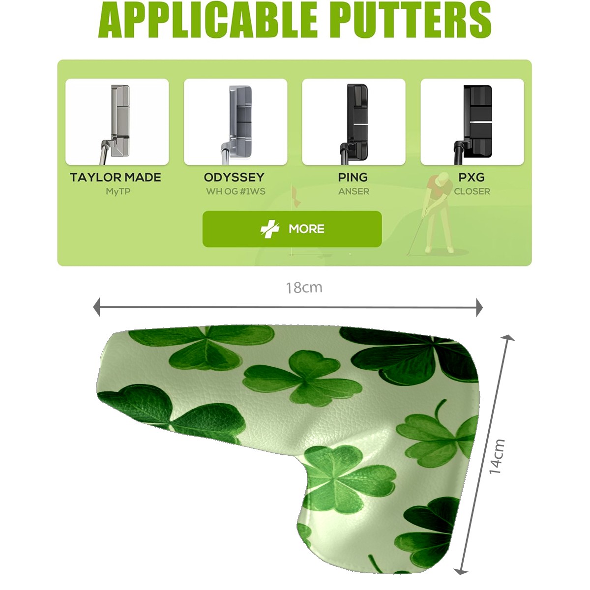 Golf Club Head Covers for Blade Putter, Waterproof Leather Headcovers for Golf Clubs, Ideal Golf Accessories Gift for Men Women (Shamrock Leaves)