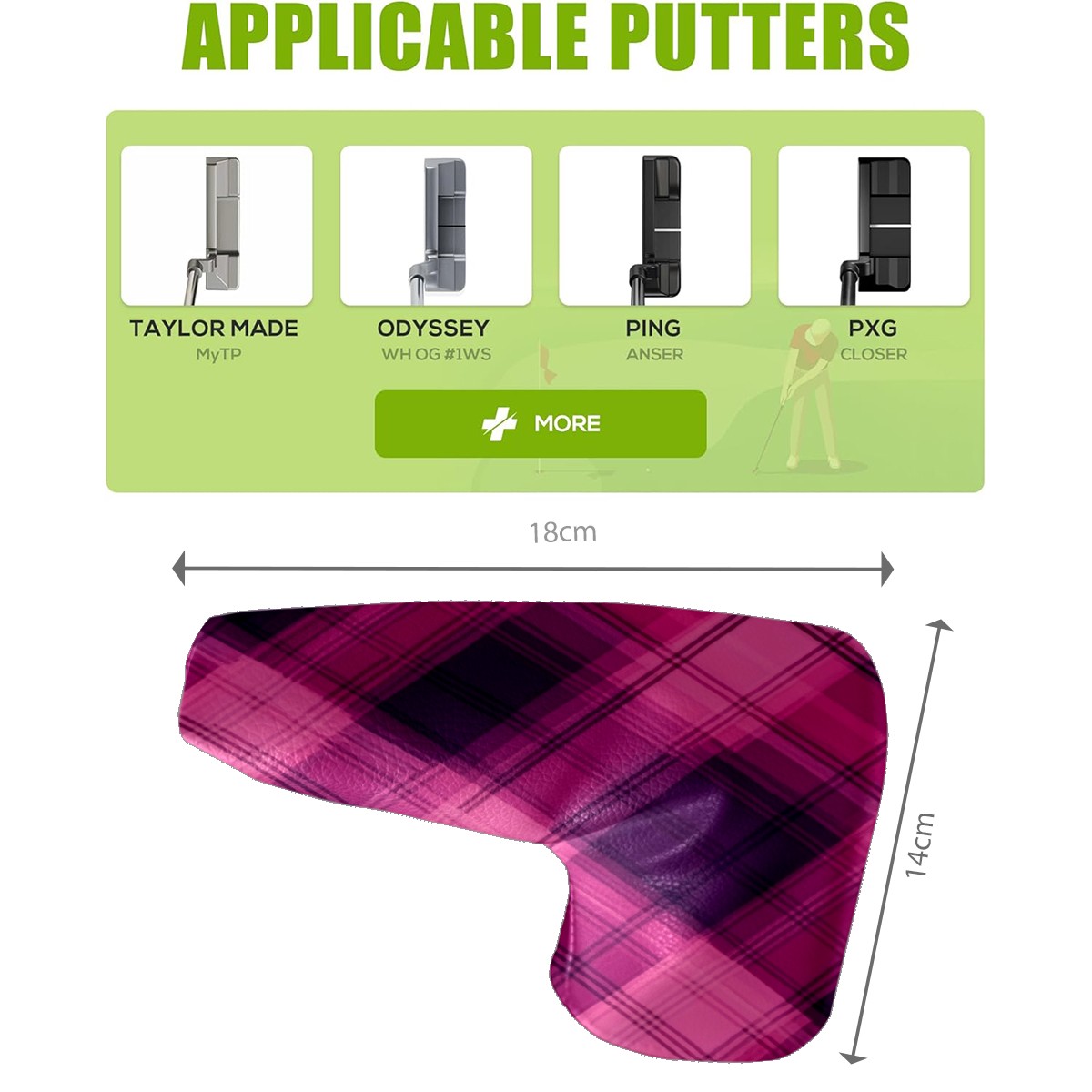 Golf Club Head Covers for Blade Putter, Waterproof Leather Headcovers for Golf Clubs, Ideal Golf Accessories Gift for Men Women (Pink And Purple Checkered)