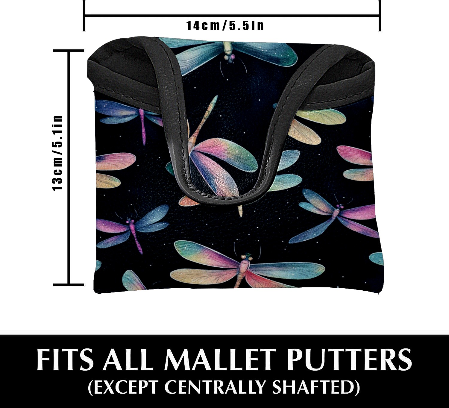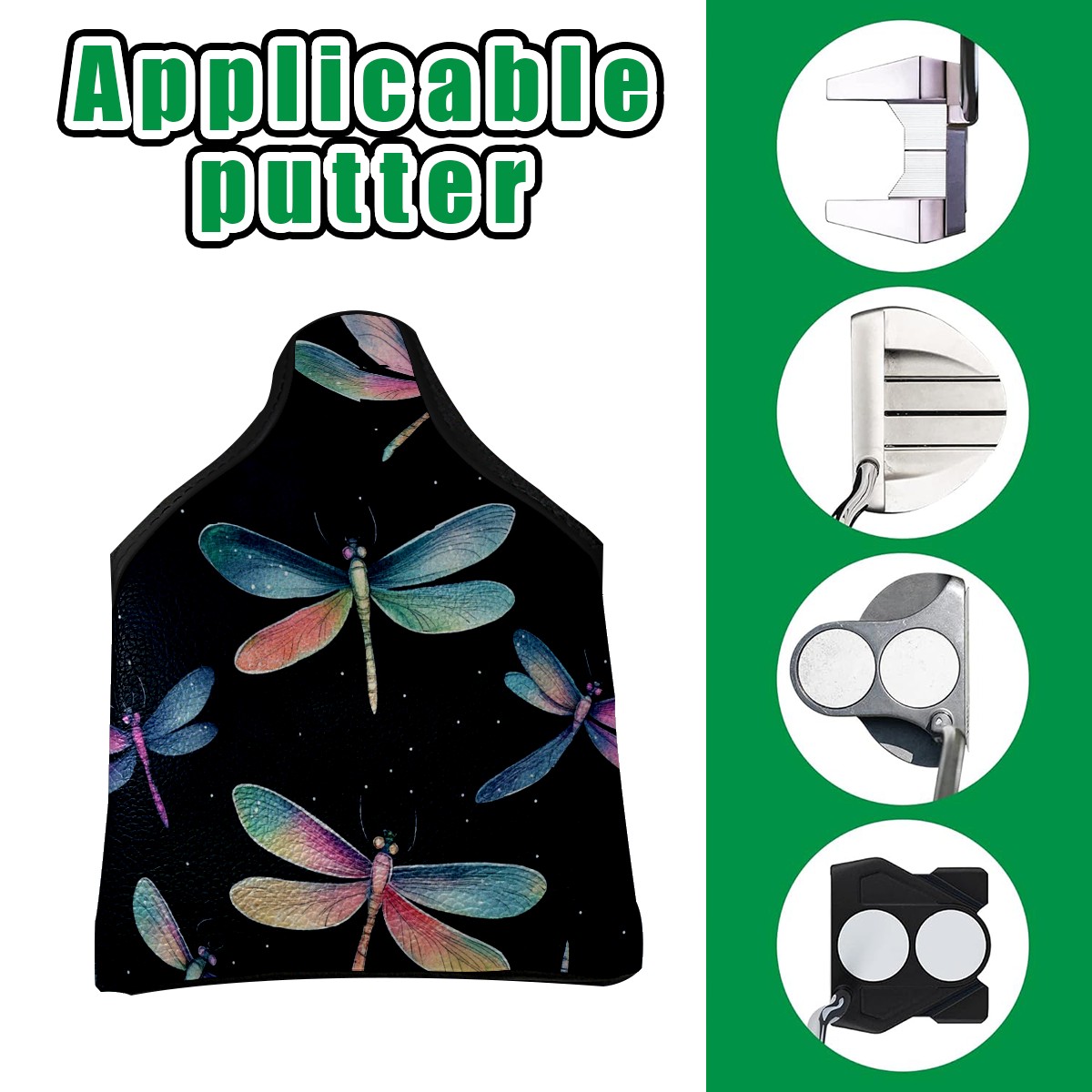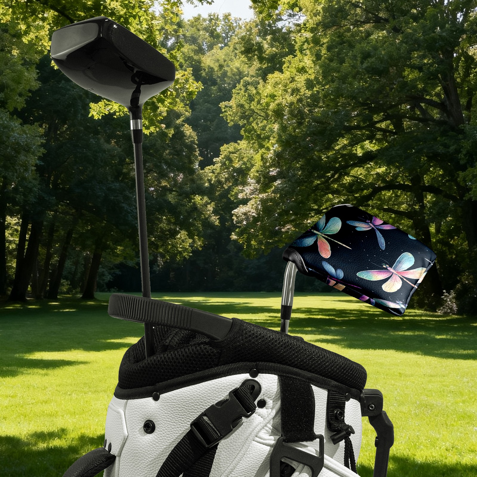 Golf Club Head Covers for Mallet Putter, Waterproof Leather Headcovers for Golf Clubs, Ideal Golf Accessories Gift for Men Women (Iridescent Dragonflies)