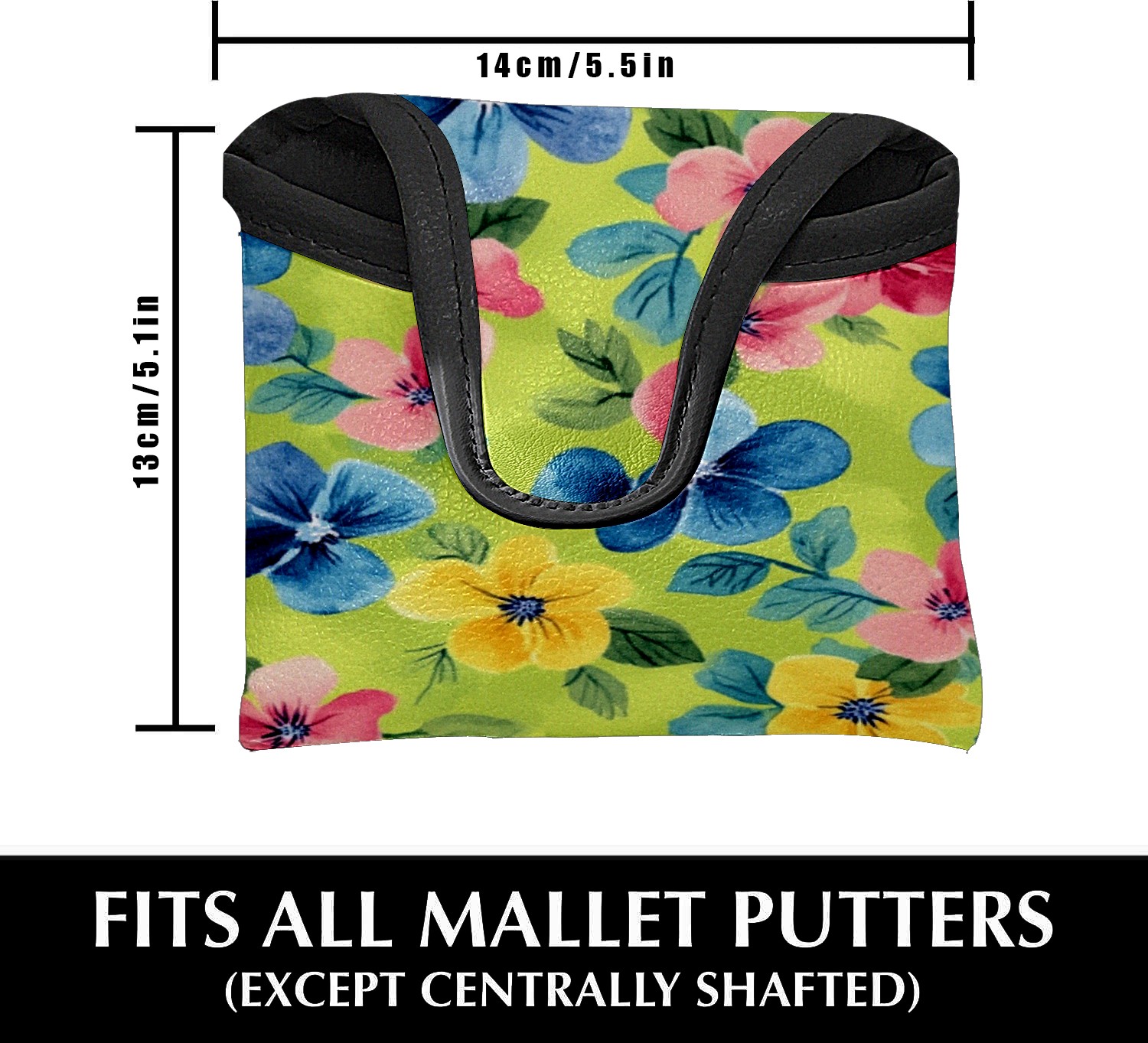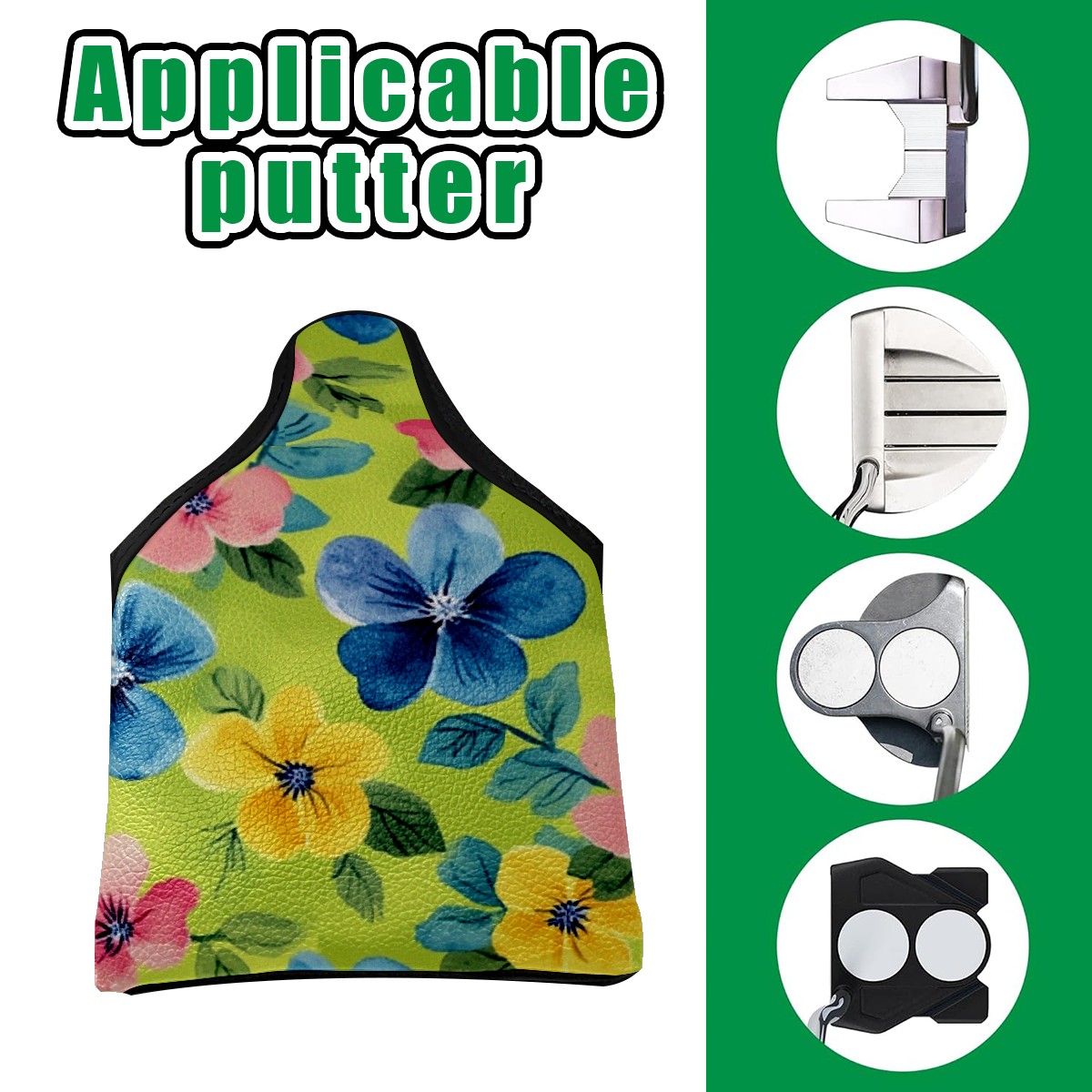 Golf Club Head Covers for Mallet Putter, Waterproof Leather Headcovers for Golf Clubs, Ideal Golf Accessories Gift for Men Women (Watercolor Flowers)
