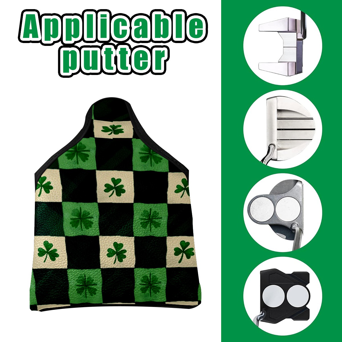 Golf Club Head Covers for Mallet Putter, Waterproof Leather Headcovers for Golf Clubs, Ideal Golf Accessories Gift for Men Women (St.patricks Day Checkered)