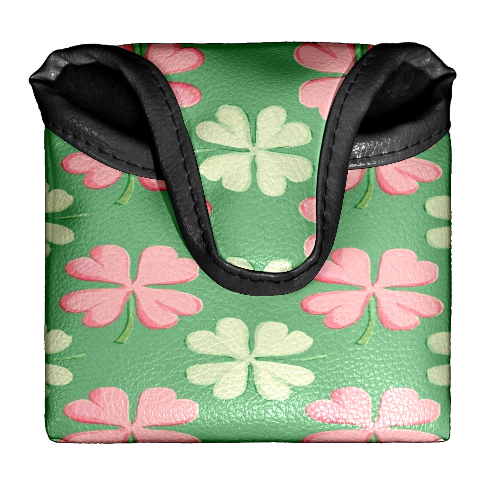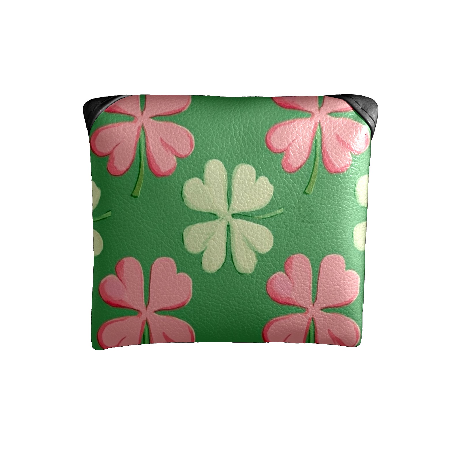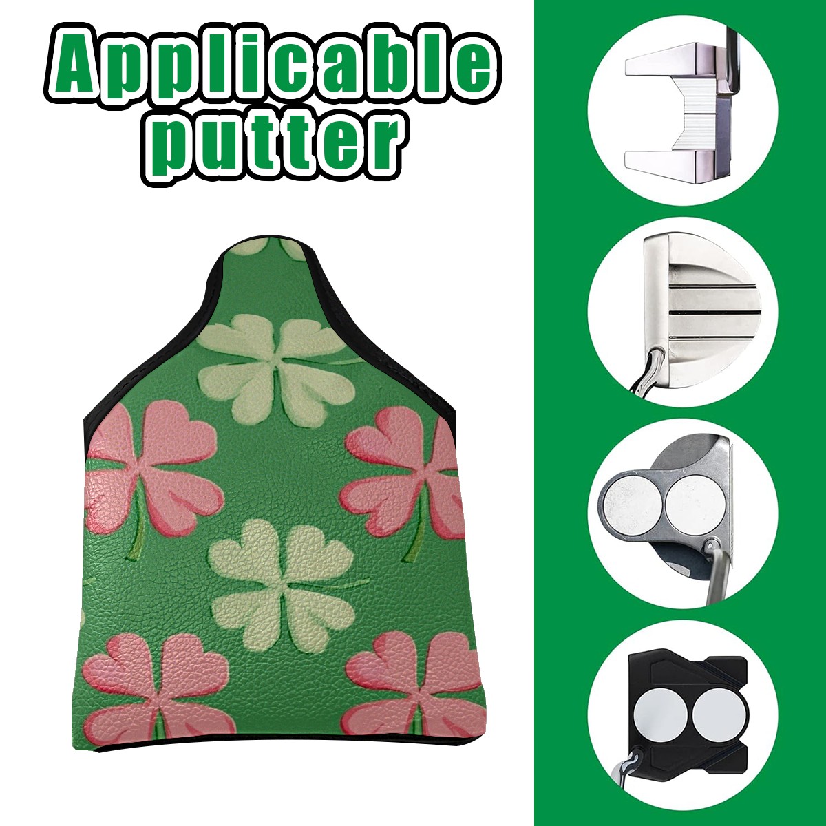 Golf Club Head Covers for Mallet Putter, Waterproof Leather Headcovers for Golf Clubs, Ideal Golf Accessories Gift for Men Women (Shamrocks With Pink Stripes)
