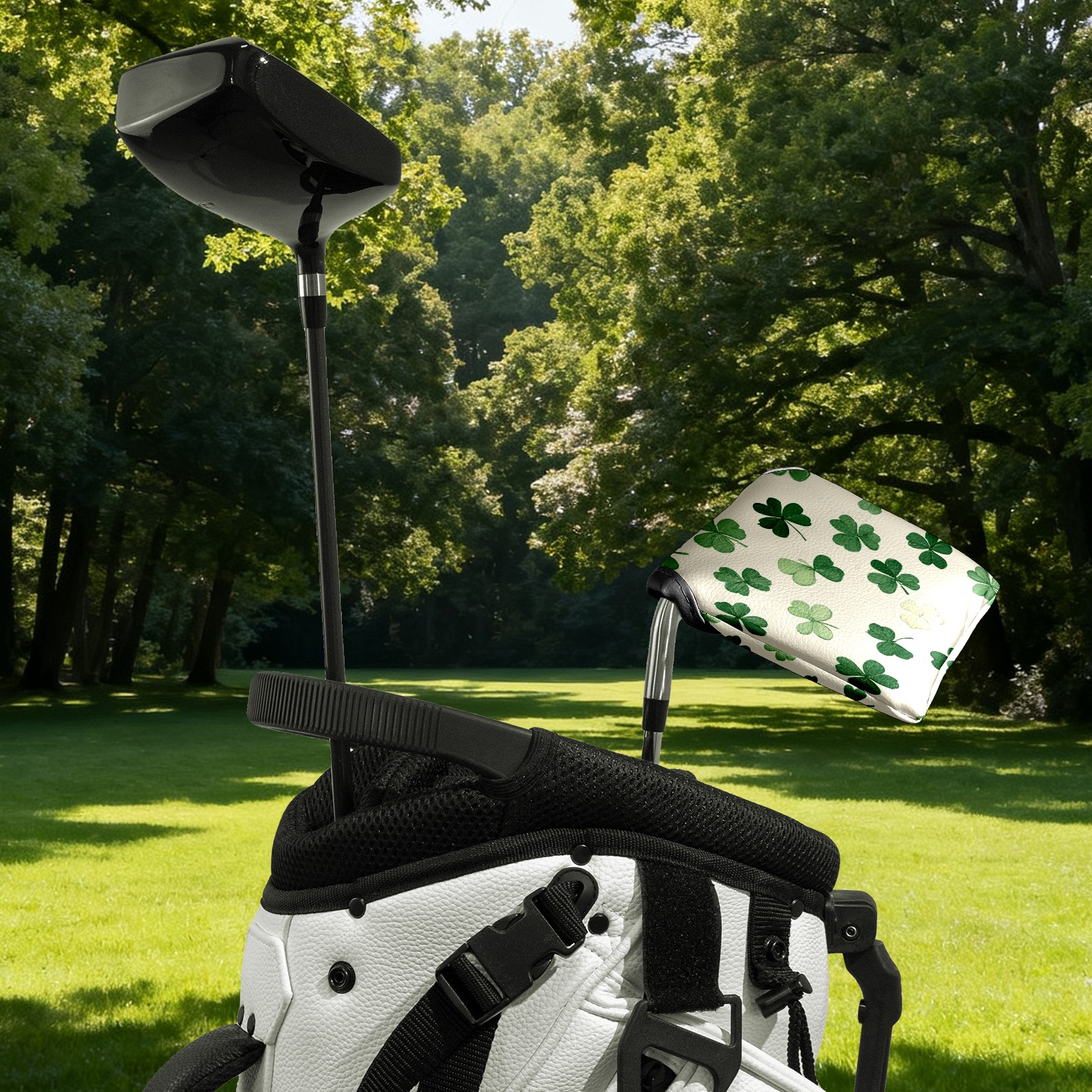 Golf Club Head Covers for Mallet Putter, Waterproof Leather Headcovers for Golf Clubs, Ideal Golf Accessories Gift for Men Women (Small Shamrocks)