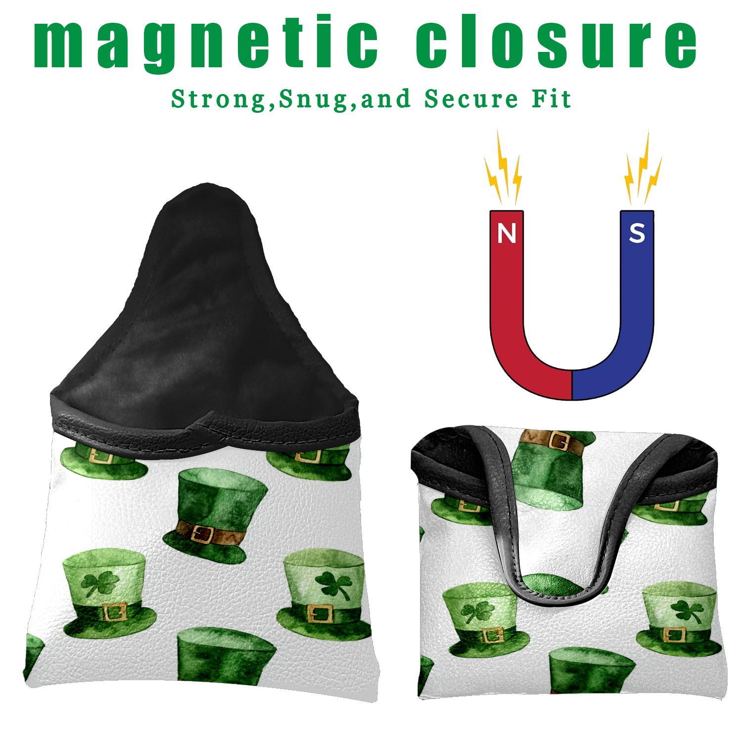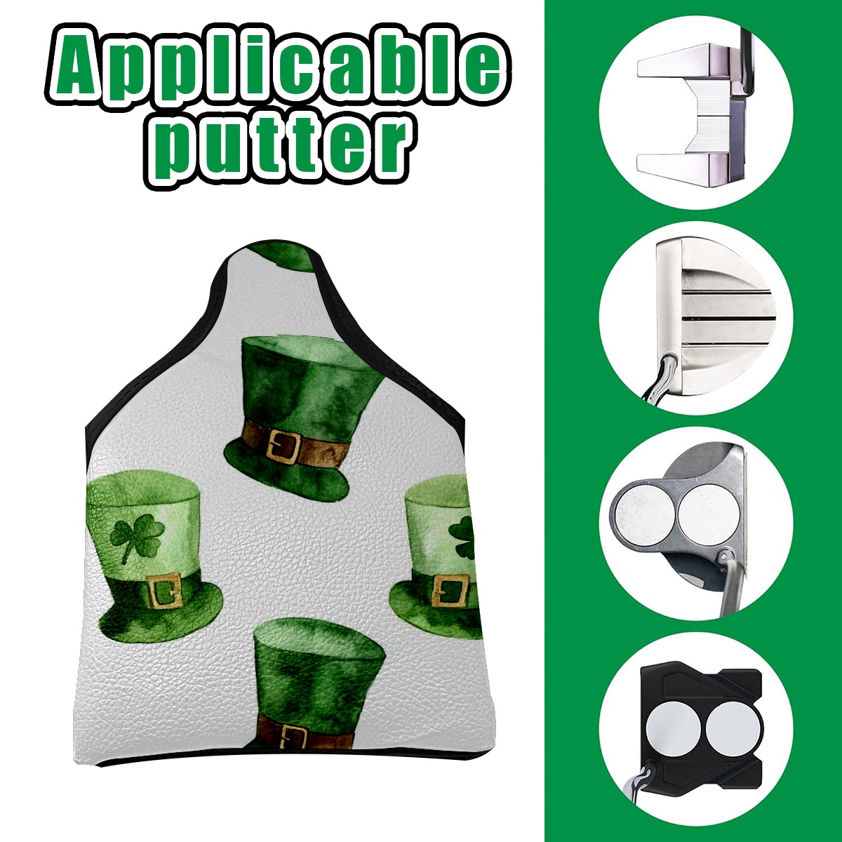 Golf Club Head Covers for Mallet Putter, Waterproof Leather Headcovers for Golf Clubs, Ideal Golf Accessories Gift for Men Women (St.patricks Day Hat)