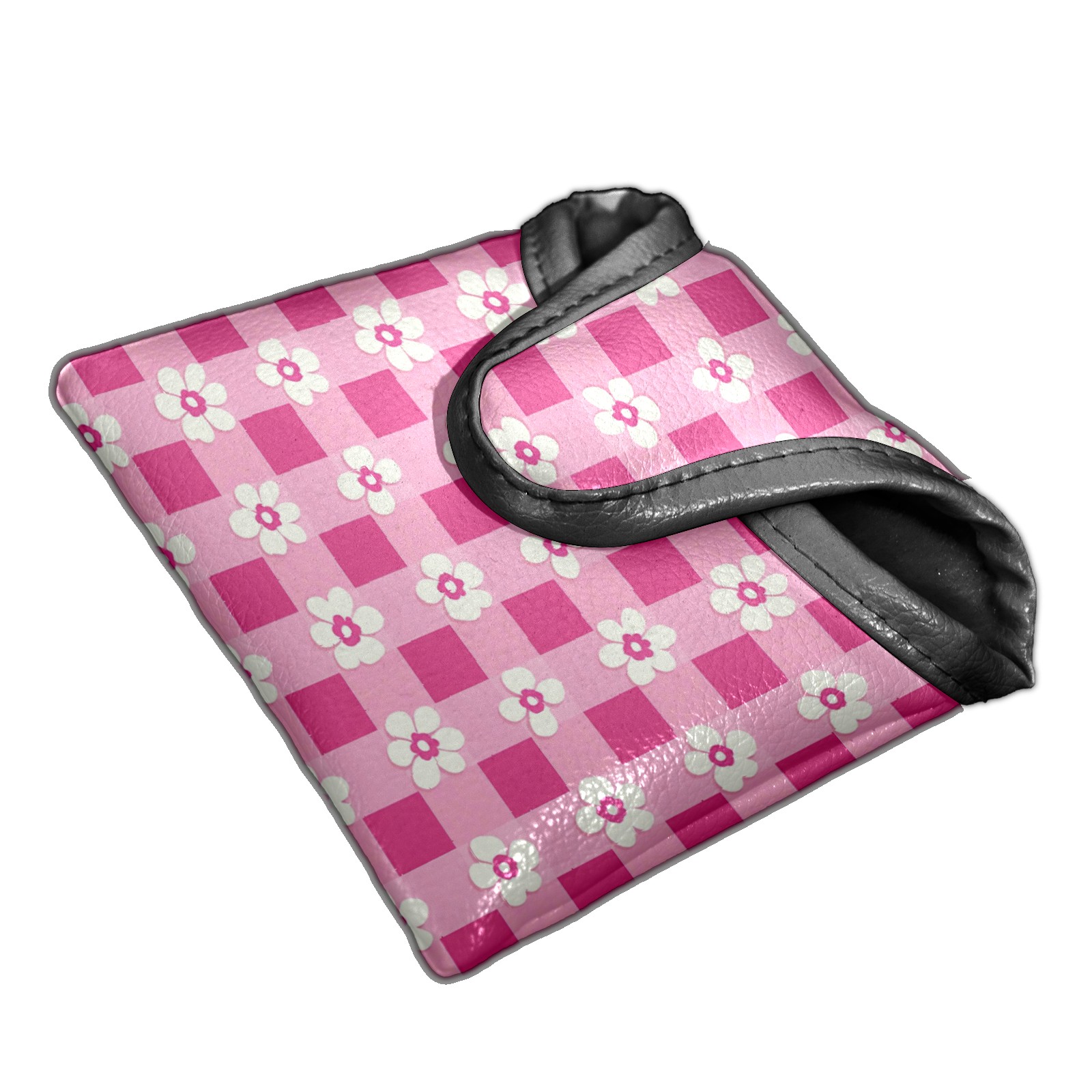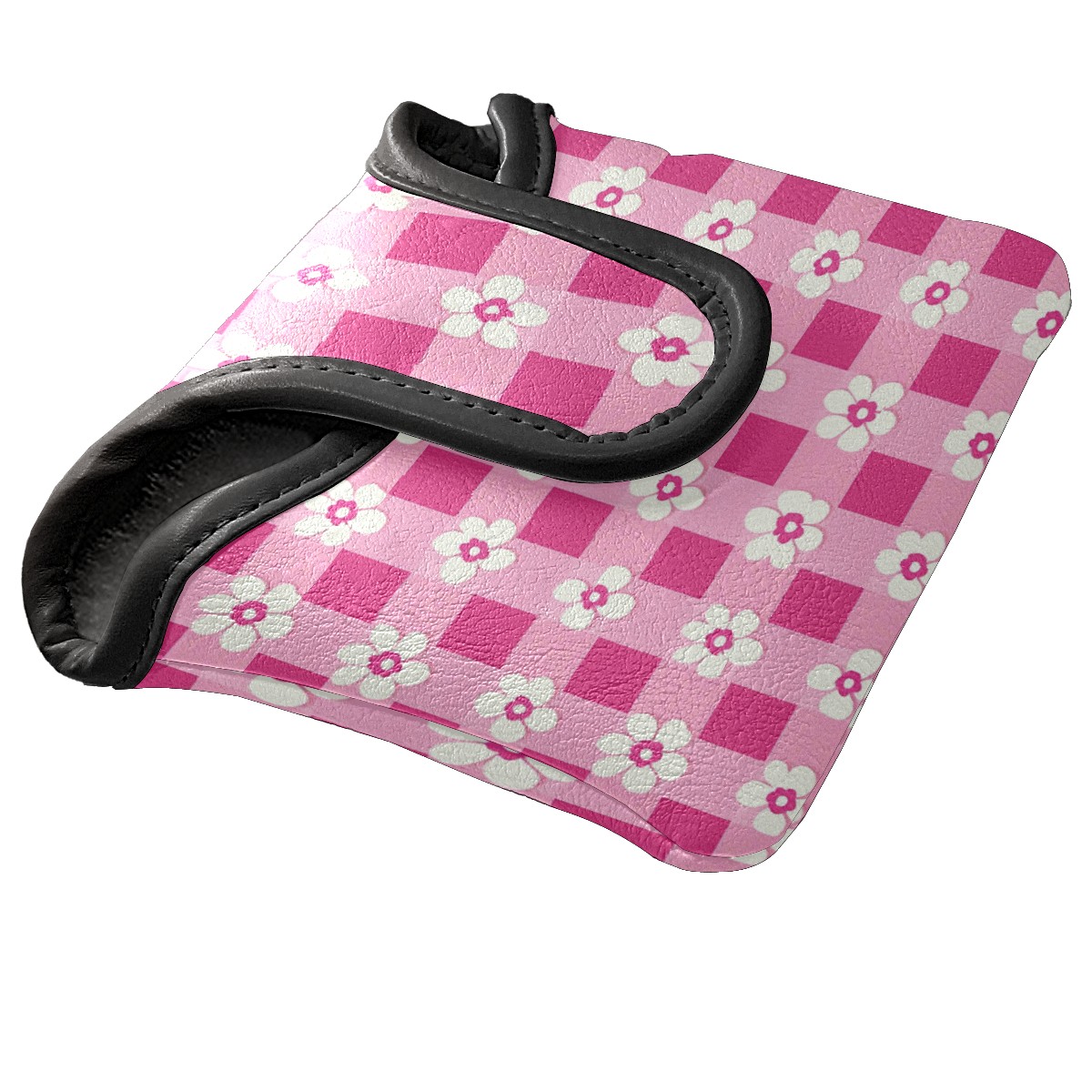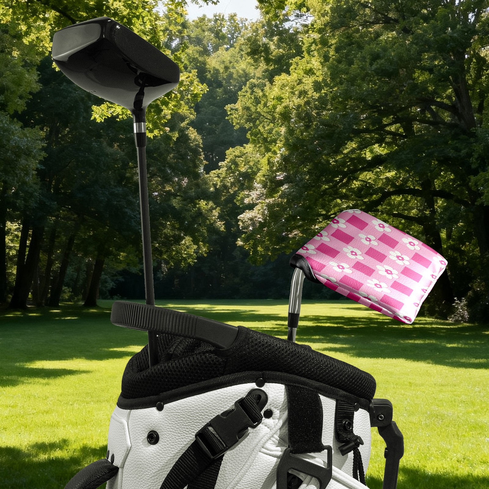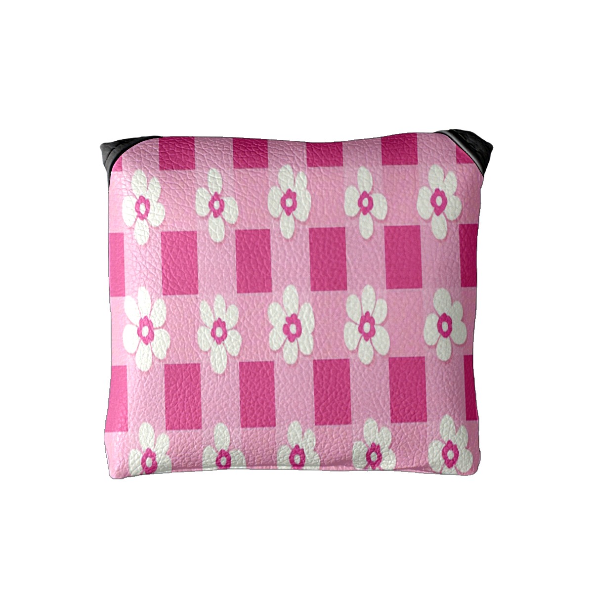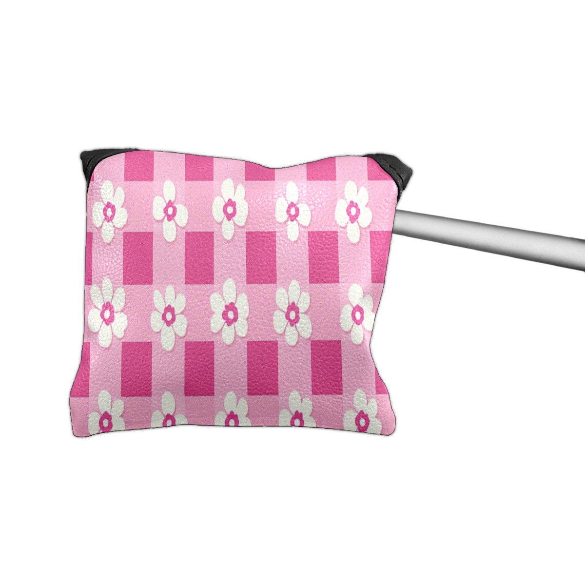 Golf Club Head Covers for Mallet Putter, Waterproof Leather Headcovers for Golf Clubs, Ideal Golf Accessories Gift for Men Women (Pink Gingham With Flowers)