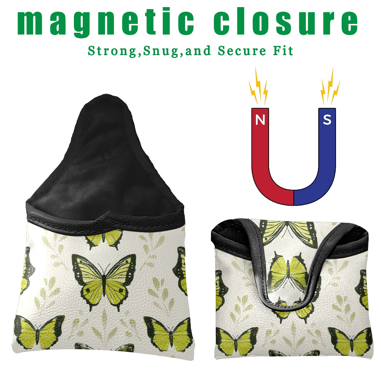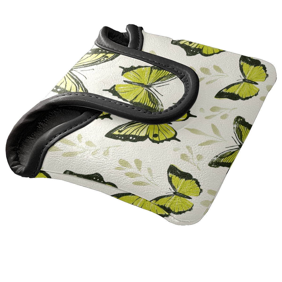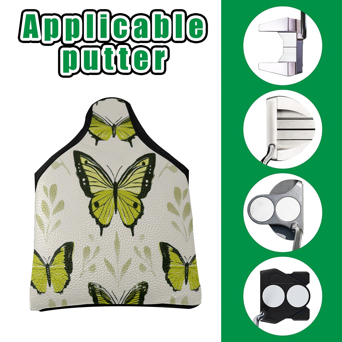 Golf Club Head Covers for Mallet Putter, Waterproof Leather Headcovers for Golf Clubs, Ideal Golf Accessories Gift for Men Women (Green Butterflies)
