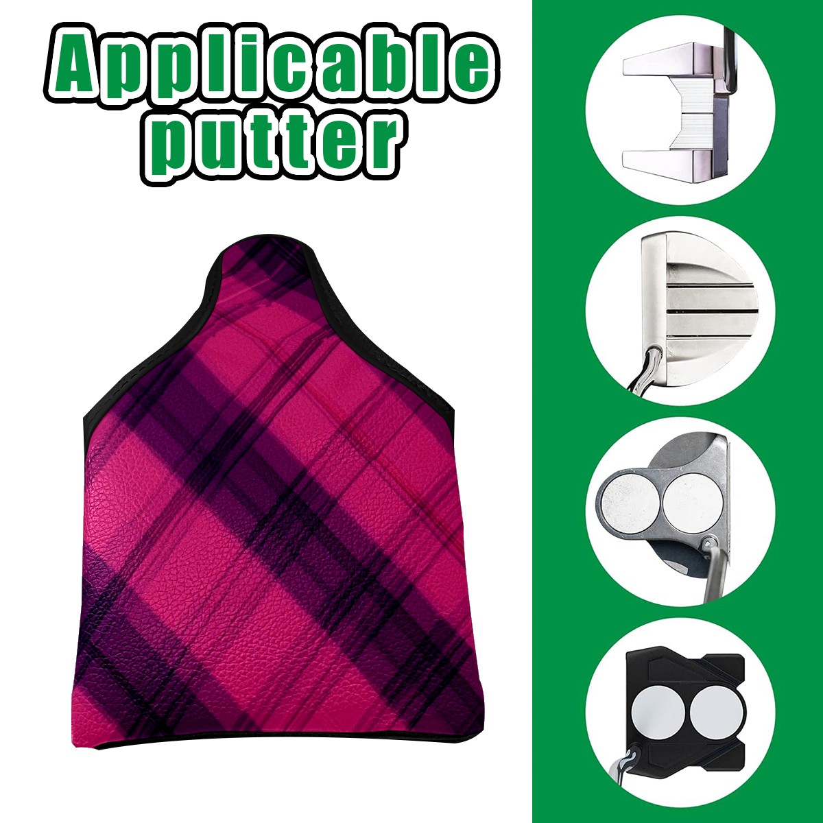 Golf Club Head Covers for Mallet Putter, Waterproof Leather Headcovers for Golf Clubs, Ideal Golf Accessories Gift for Men Women (Pink And Purple)