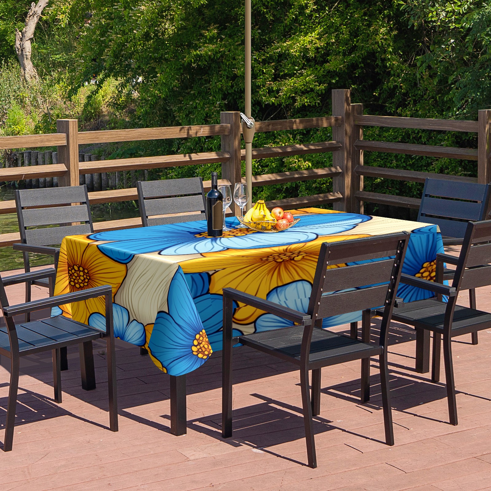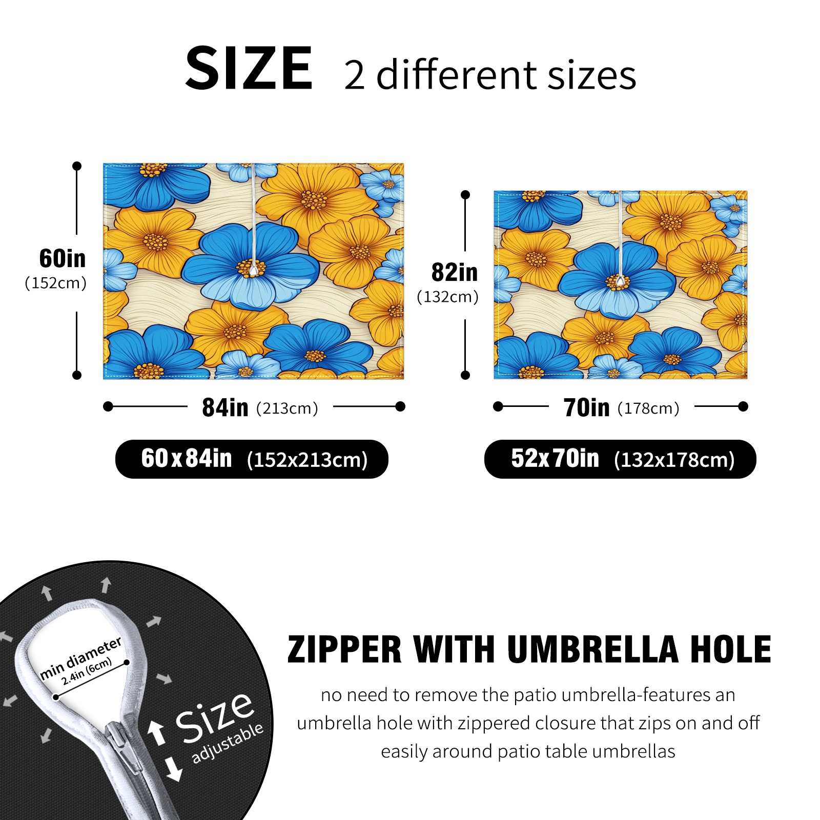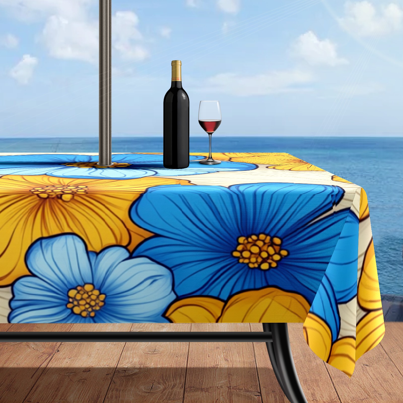 <p>This versatile outdoor tablecloth with umbrella eyelets is available in two sizes to perfectly fit everything from small patio tables to large outdoor dining tables, easily meeting the needs of different spaces. Made of durable polyester with strong stitching, the tablecloth is soft yet long-lasting, effectively protecting furniture from scratches, stains, and sun damage. Available in a variety of vibrant colors and prints, it serves as both a practical protective item and a stylish decorative piece, adding a unique charm to parties, barbecues, and gatherings with family and friends. A convenient zippered umbrella eyelet in the center allows for easy attachment to umbrella poles, creating a clean and seamless outdoor dining environment. To extend its lifespan, we recommend washing in cold water and do not bleach – this practical and decorative tablecloth is the ideal choice for all kinds of outdoor gatherings!</p>