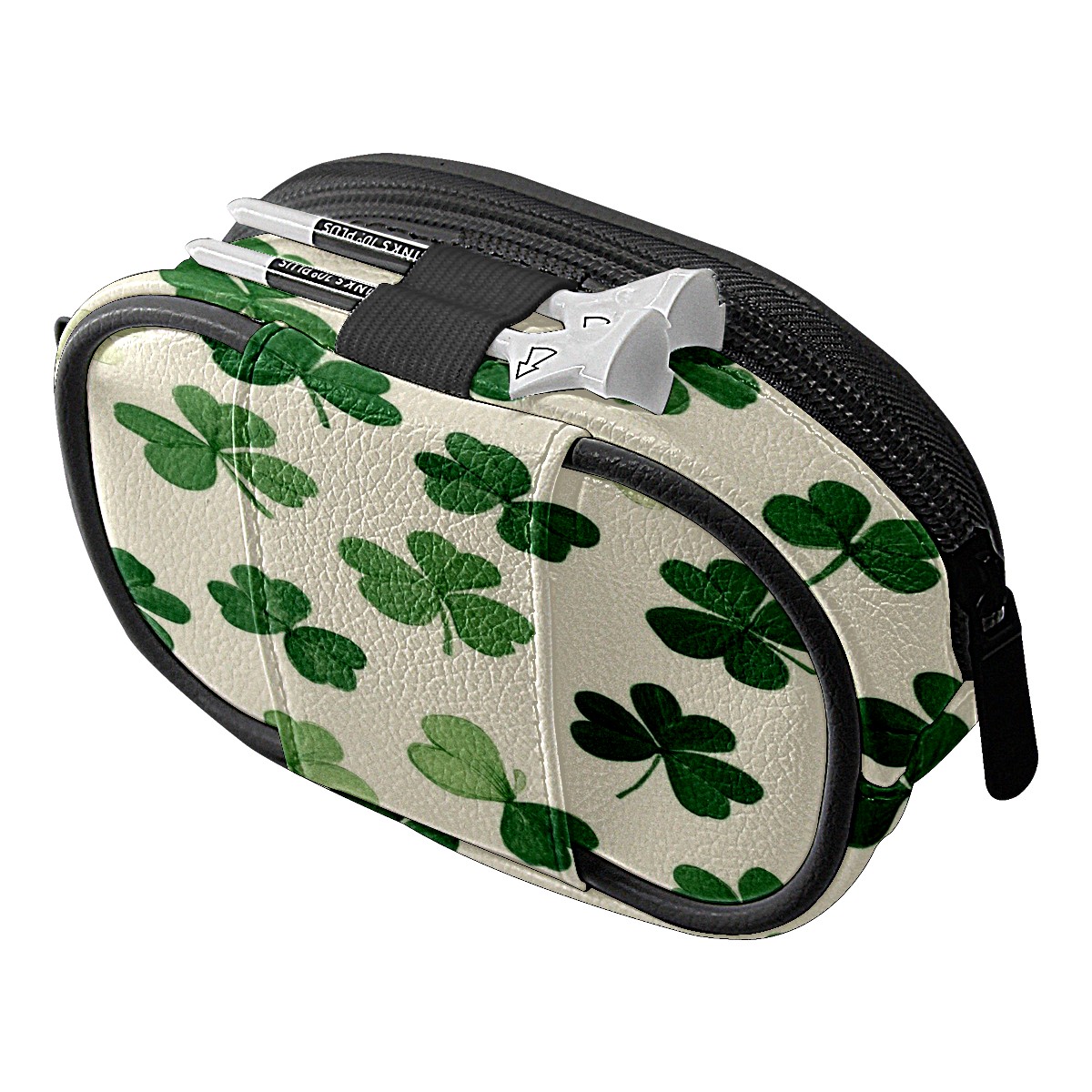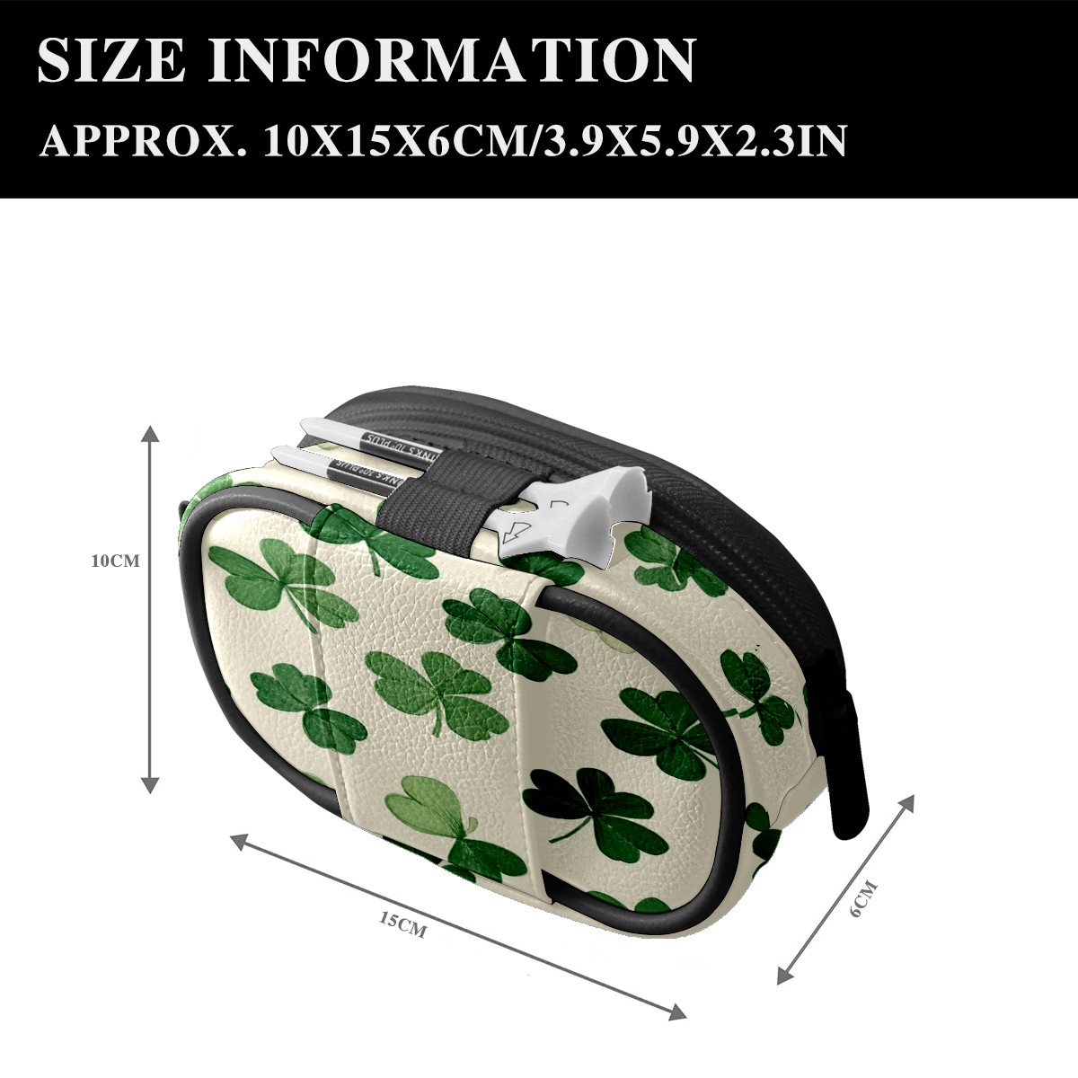 Golf Ball Waist Bag PU Leather Golf Ball Pouch with Belt Clip, Portable Golf Tee Holder & Golf Accessories for Men Women, Golfing Fanny Pack for Balls Tees Valuables (Small Shamrocks)