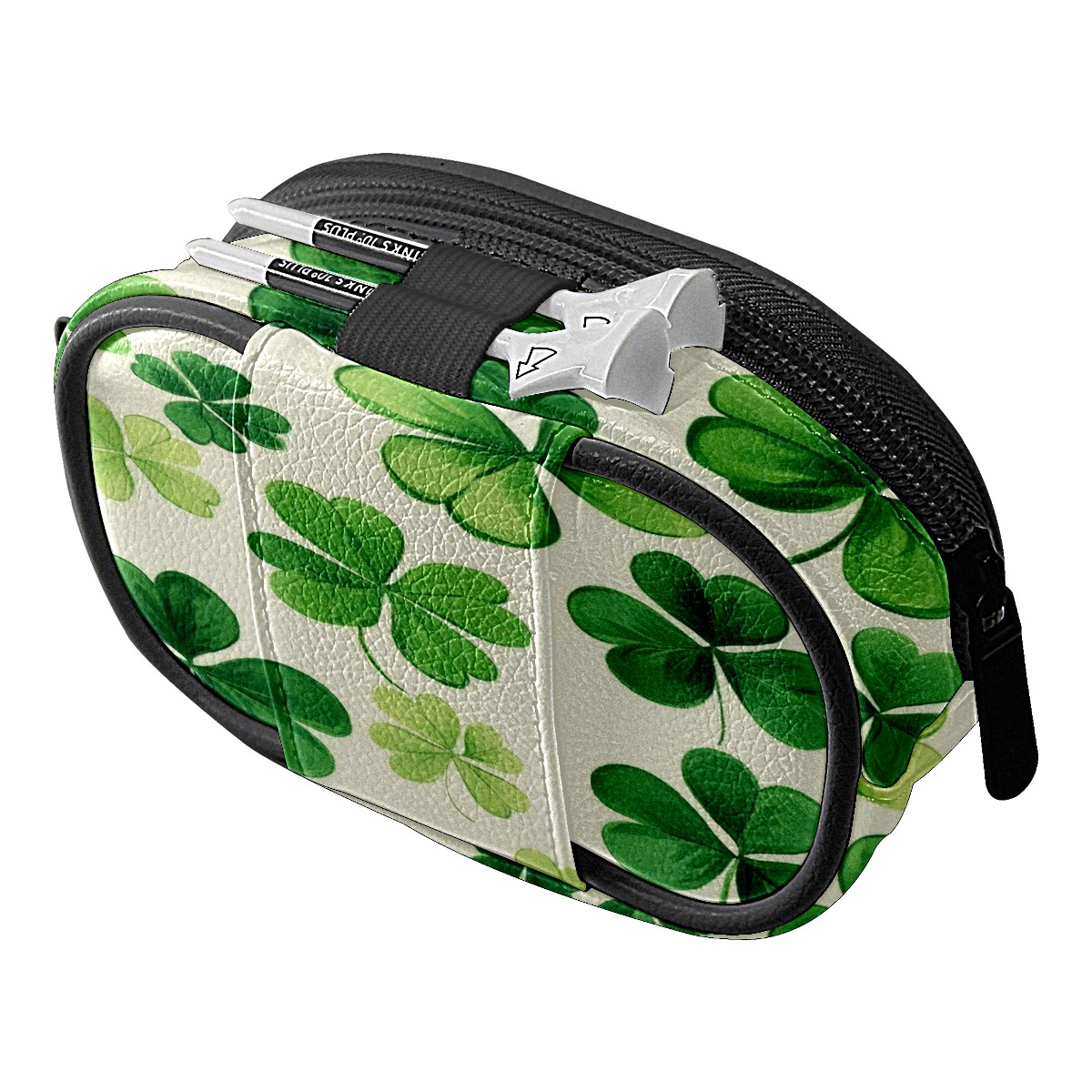 Golf Ball Waist Bag PU Leather Golf Ball Pouch with Belt Clip, Portable Golf Tee Holder & Golf Accessories for Men Women, Golfing Fanny Pack for Balls Tees Valuables (Shamrocks)