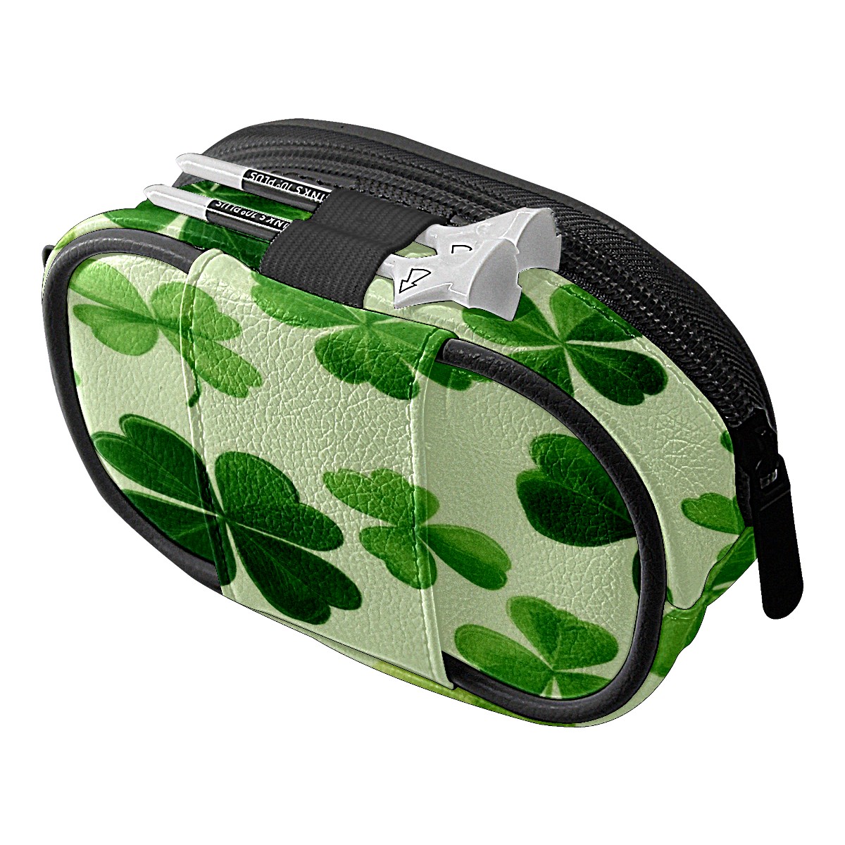 Golf Ball Waist Bag PU Leather Golf Ball Pouch with Belt Clip, Portable Golf Tee Holder & Golf Accessories for Men Women, Golfing Fanny Pack for Balls Tees Valuables (Shamrock Leaves)