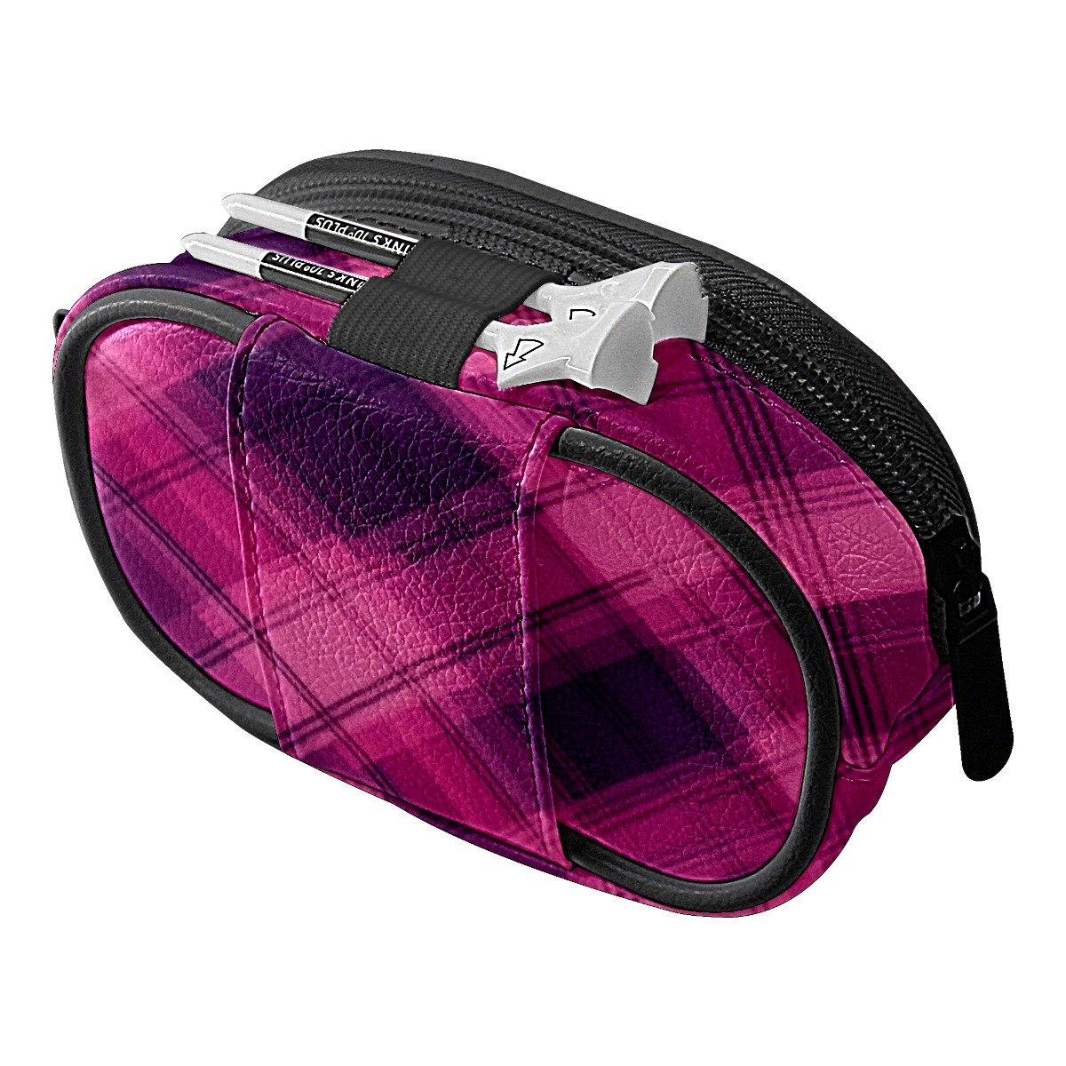 Golf Ball Waist Bag PU Leather Golf Ball Pouch with Belt Clip, Portable Golf Tee Holder & Golf Accessories for Men Women, Golfing Fanny Pack for Balls Tees Valuables (Pink And Purple Checkered)