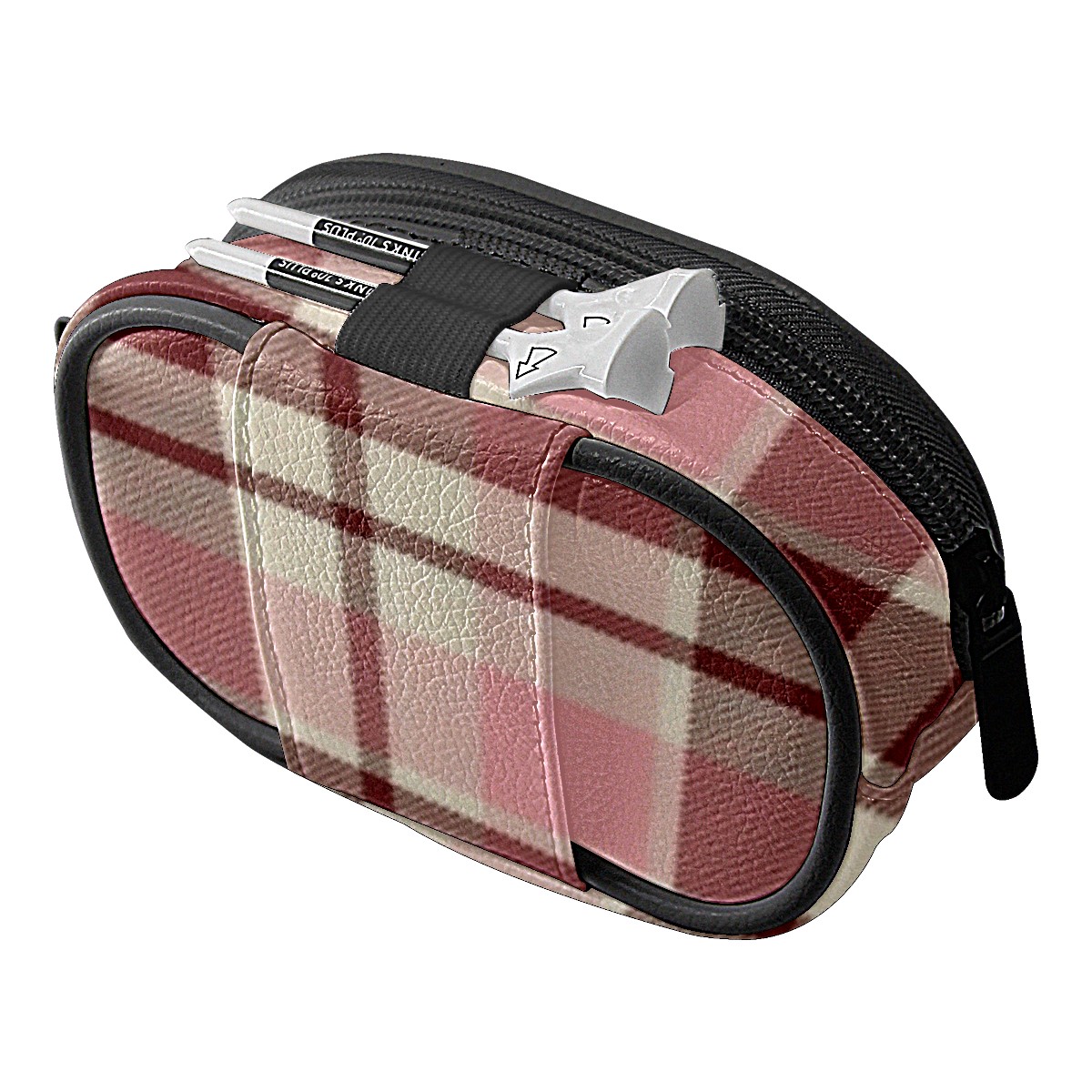 Golf Ball Waist Bag PU Leather Golf Ball Pouch with Belt Clip, Portable Golf Tee Holder & Golf Accessories for Men Women, Golfing Fanny Pack for Balls Tees Valuables (Pink And Brown Checkered)
