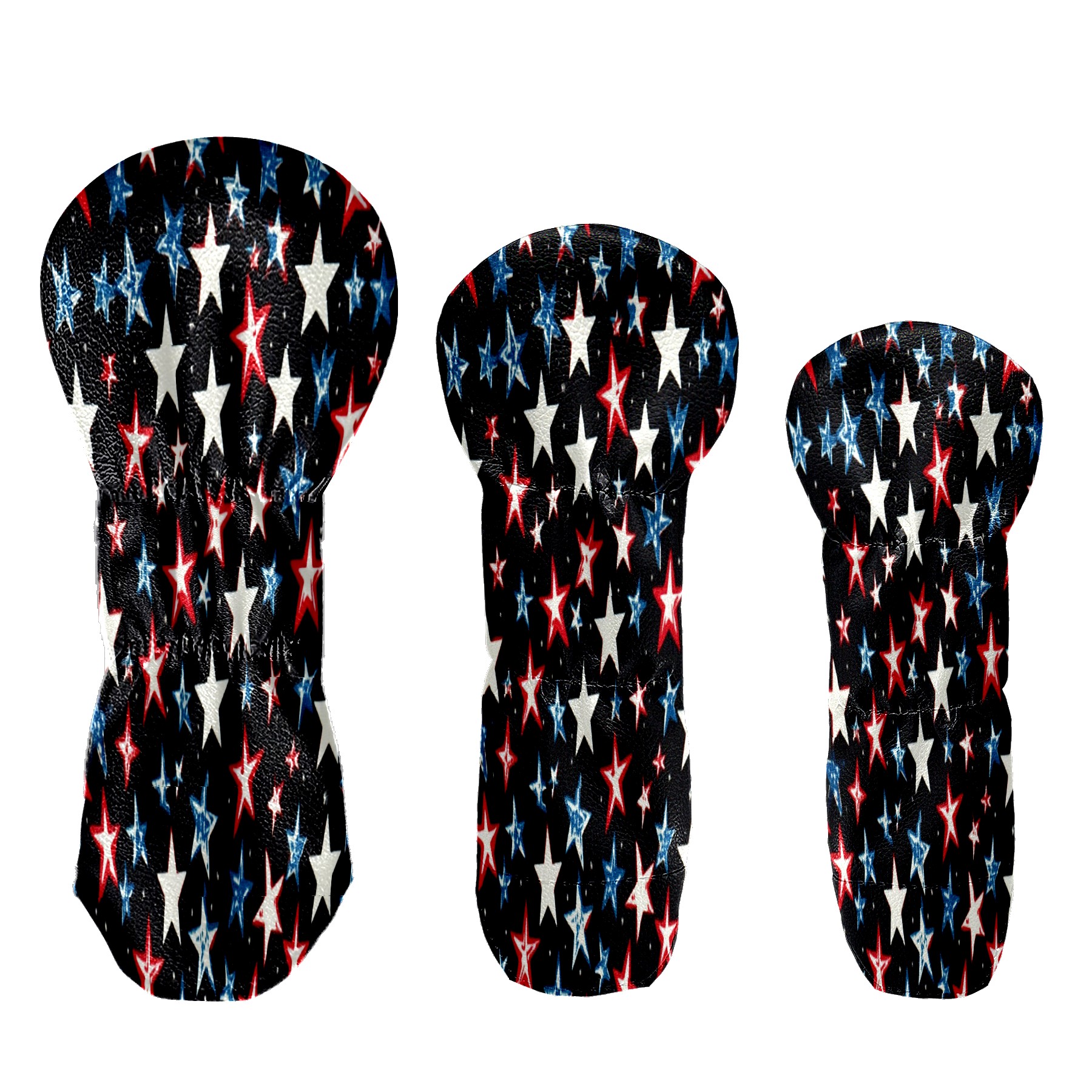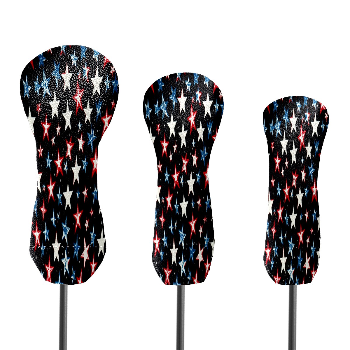 Golf Club Head Covers for Driver Hybrid and Fairway Woods, Waterproof Leather Headcovers for Golf Clubs, Ideal Golf Accessories Gift for Men Women (Red White And Blue Stars)