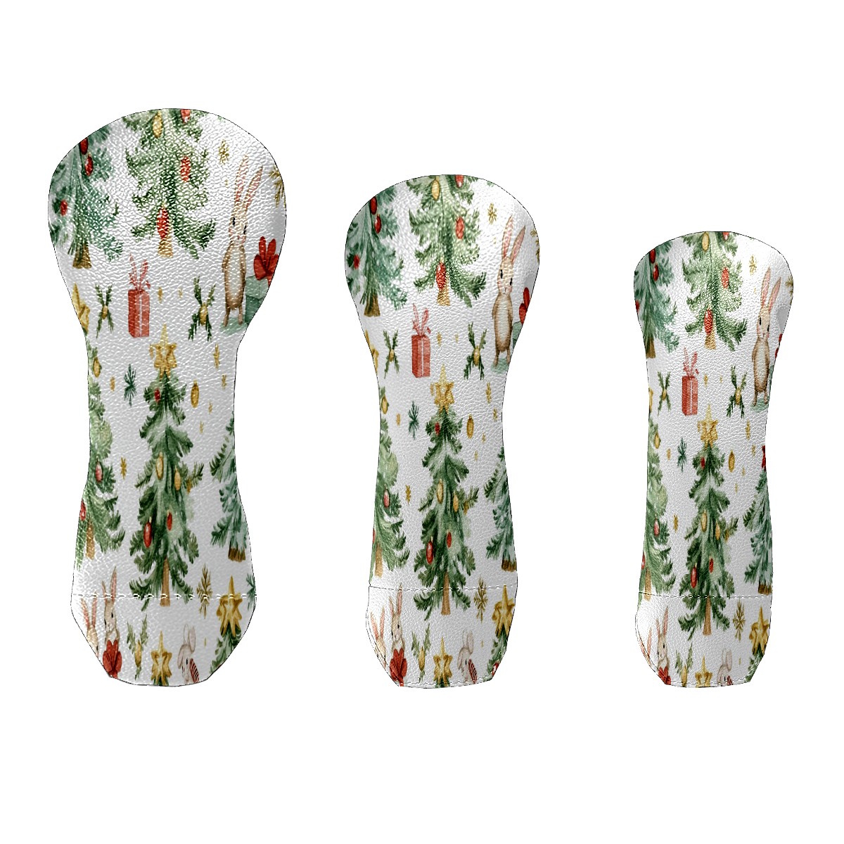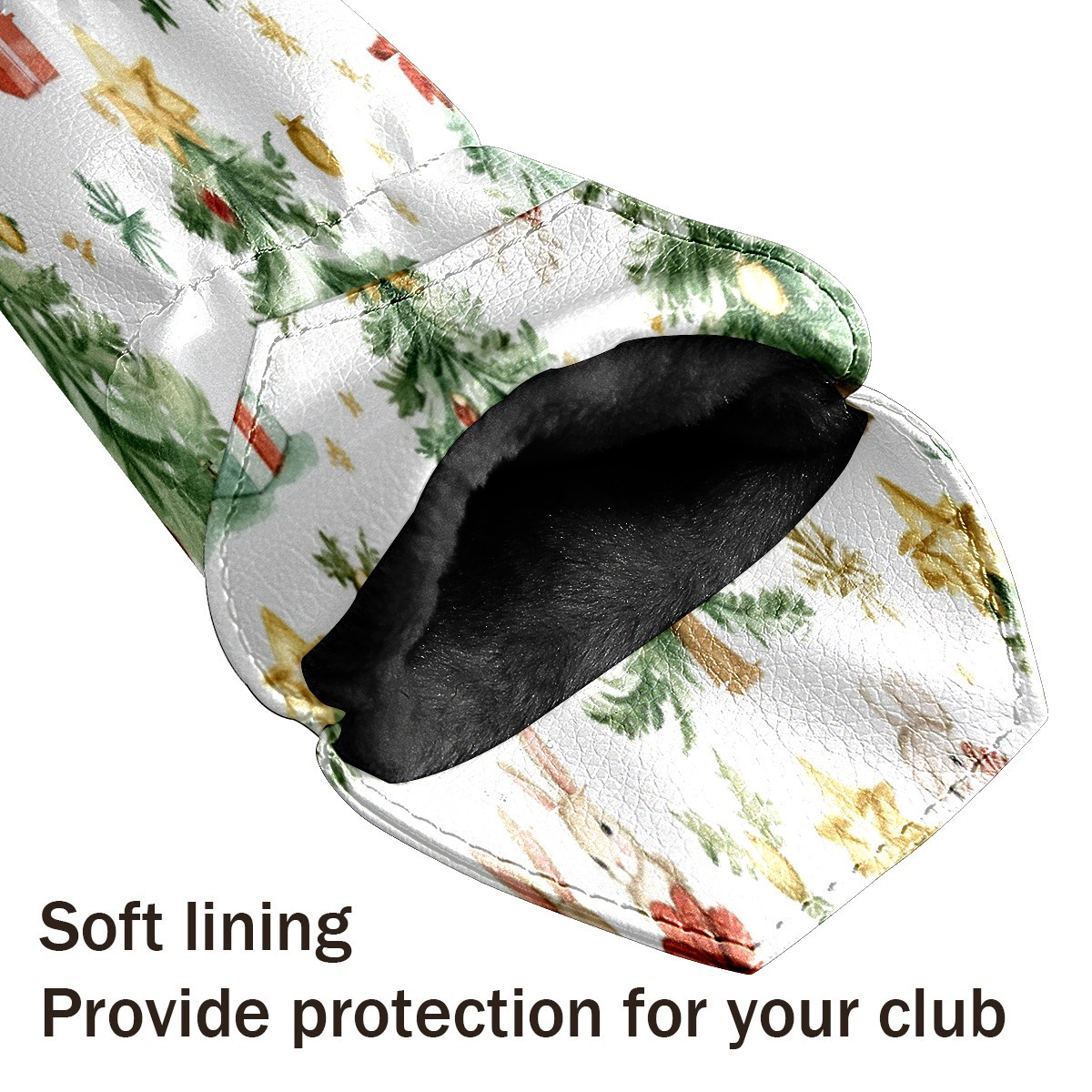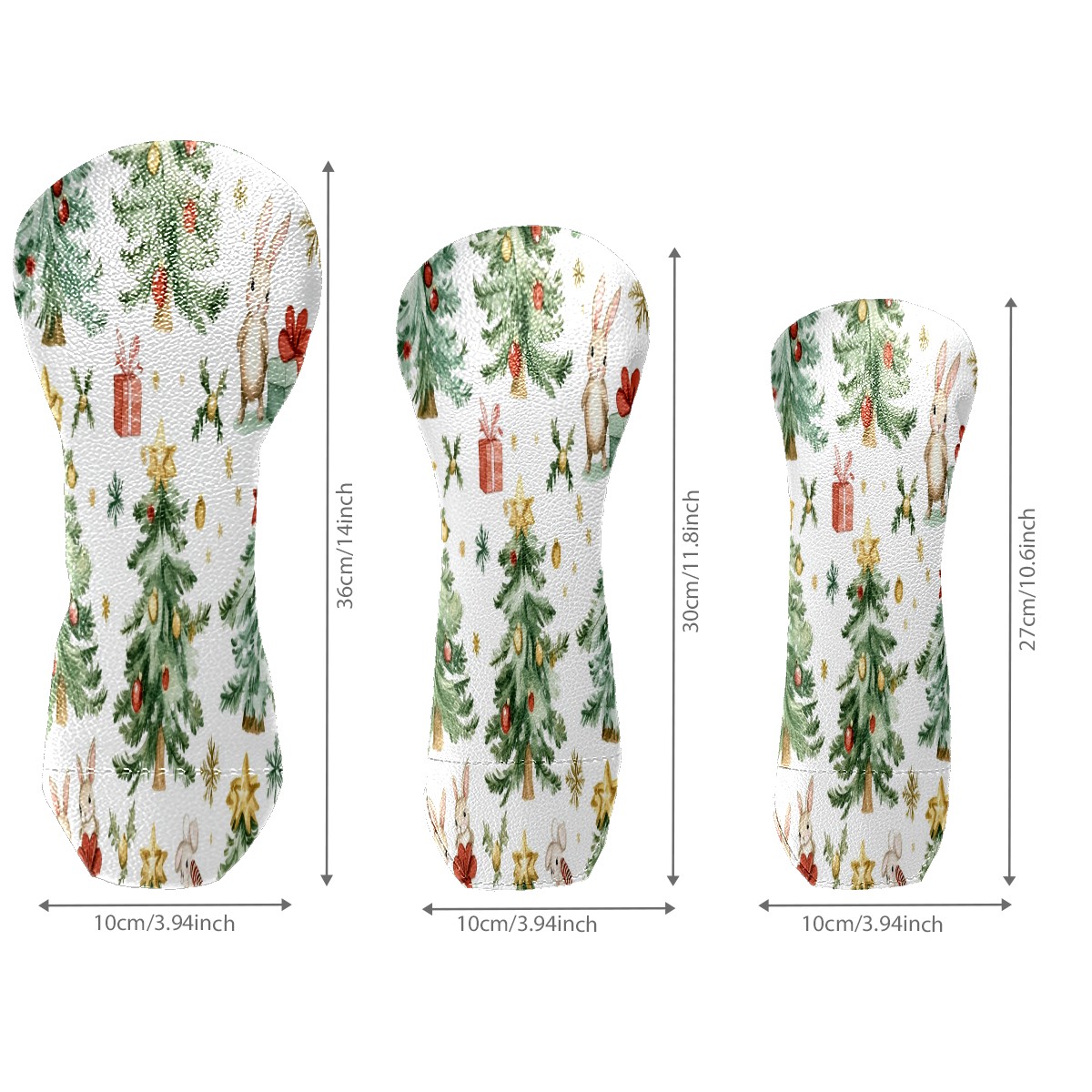 Golf Club Head Covers for Driver Hybrid and Fairway Woods, Waterproof Leather Headcovers for Golf Clubs, Ideal Golf Accessories Gift for Men Women (Watercolor Christmas Trees)