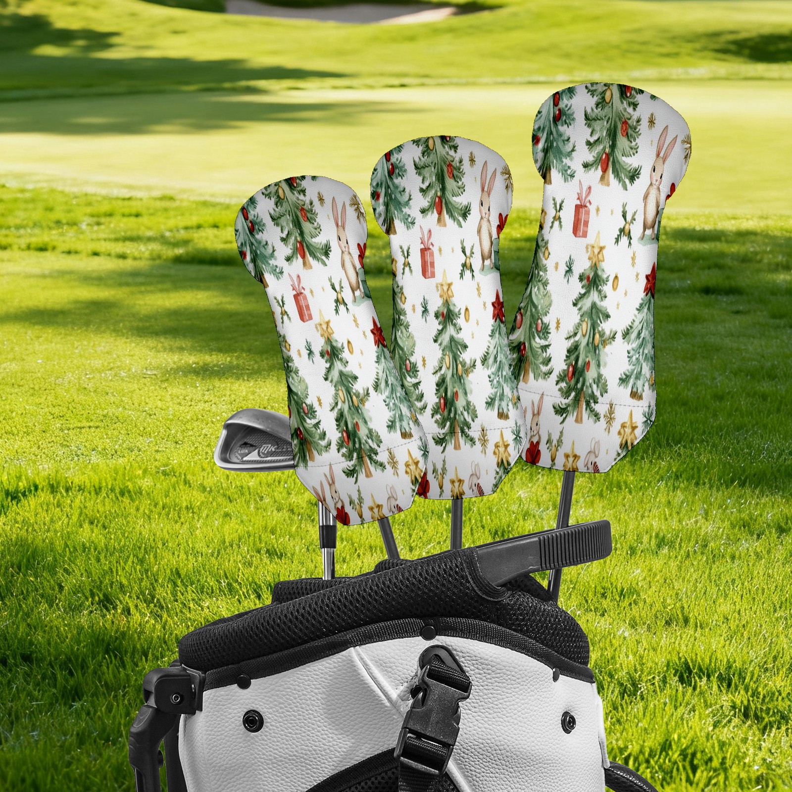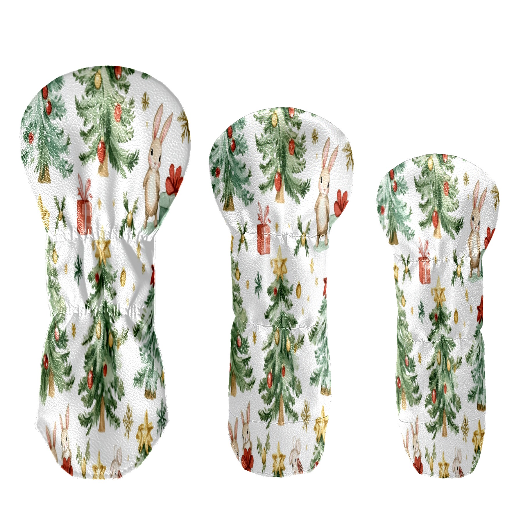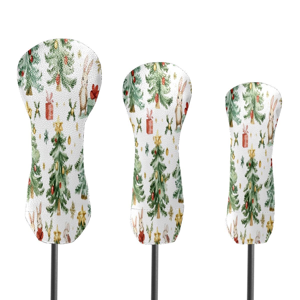 Golf Club Head Covers for Driver Hybrid and Fairway Woods, Waterproof Leather Headcovers for Golf Clubs, Ideal Golf Accessories Gift for Men Women (Watercolor Christmas Trees)