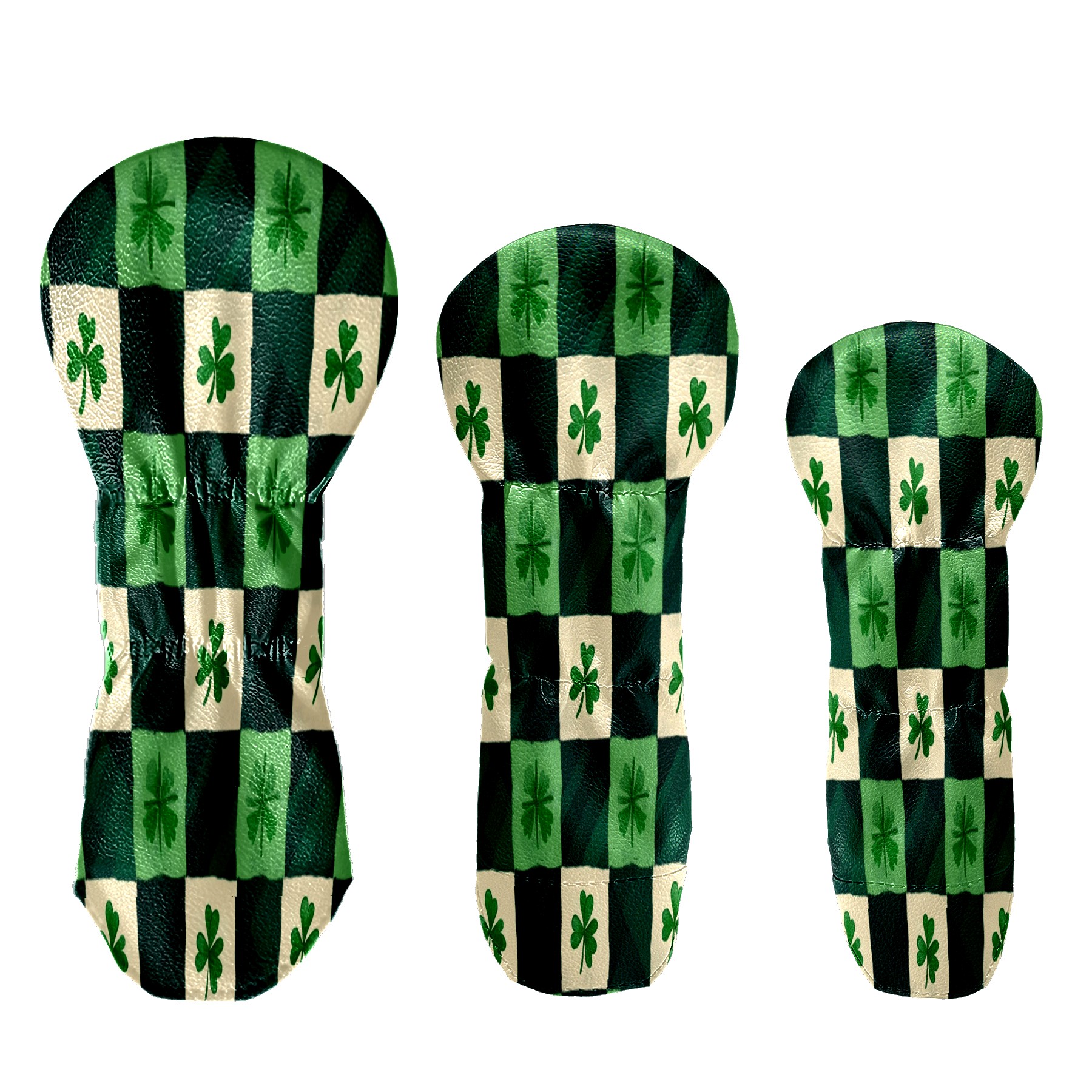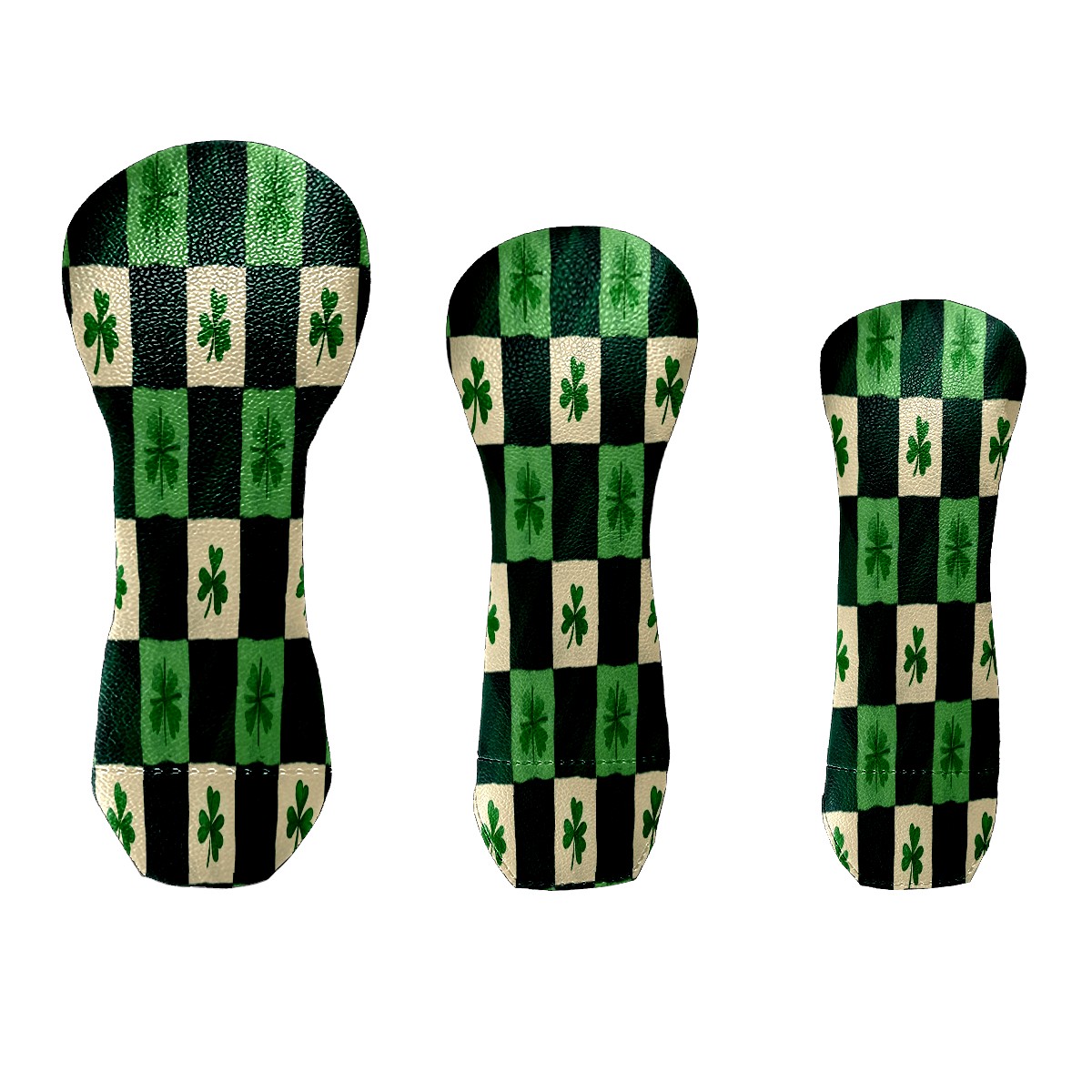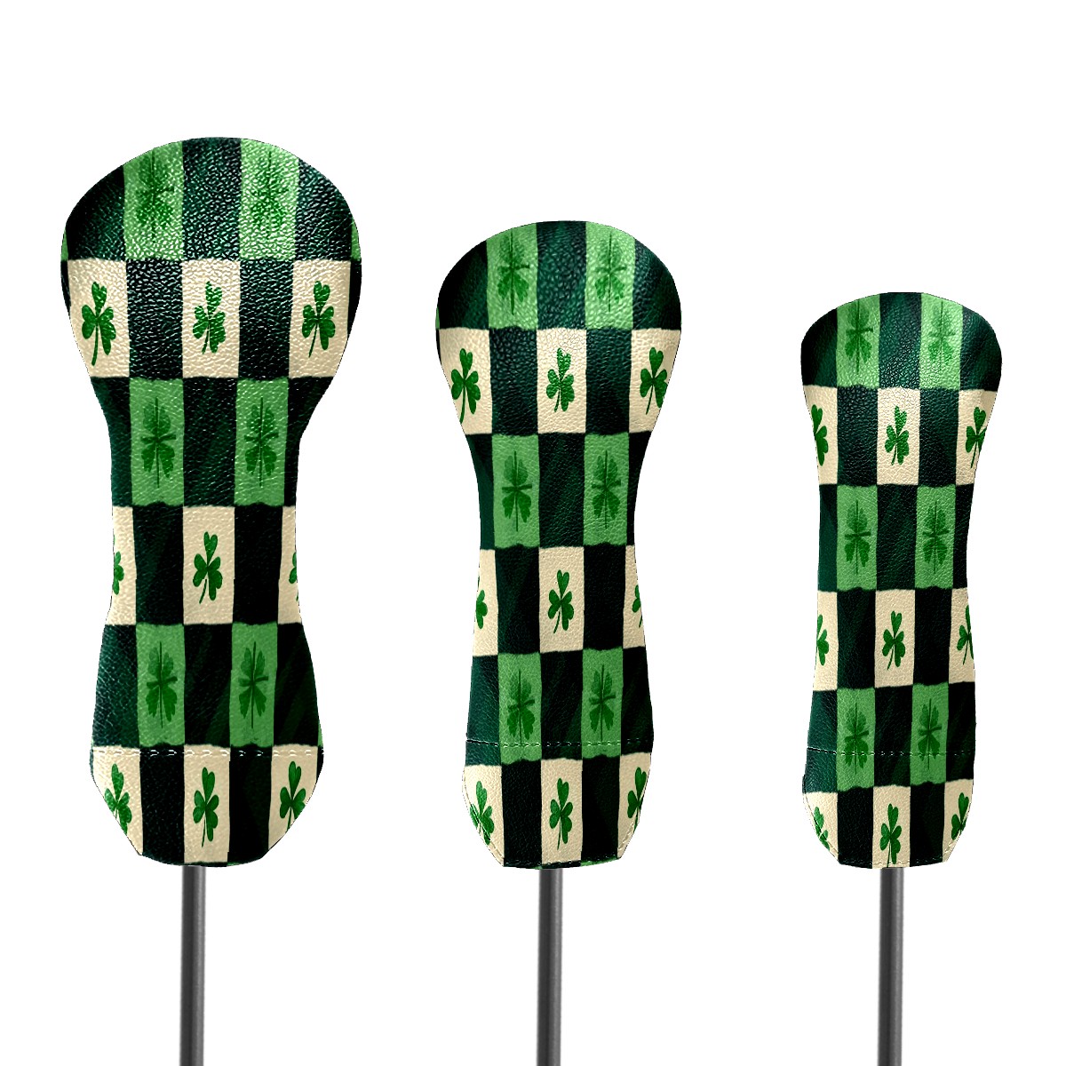 Golf Club Head Covers for Driver Hybrid and Fairway Woods, Waterproof Leather Headcovers for Golf Clubs, Ideal Golf Accessories Gift for Men Women (St.patricks Day Checkered)