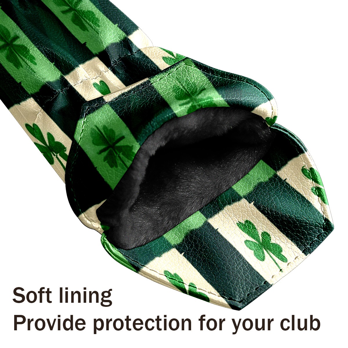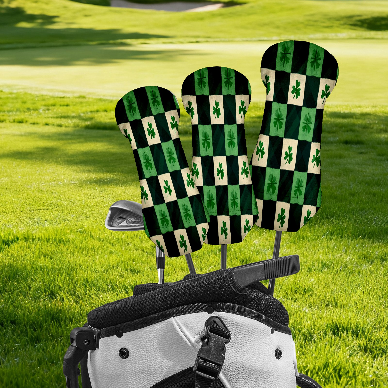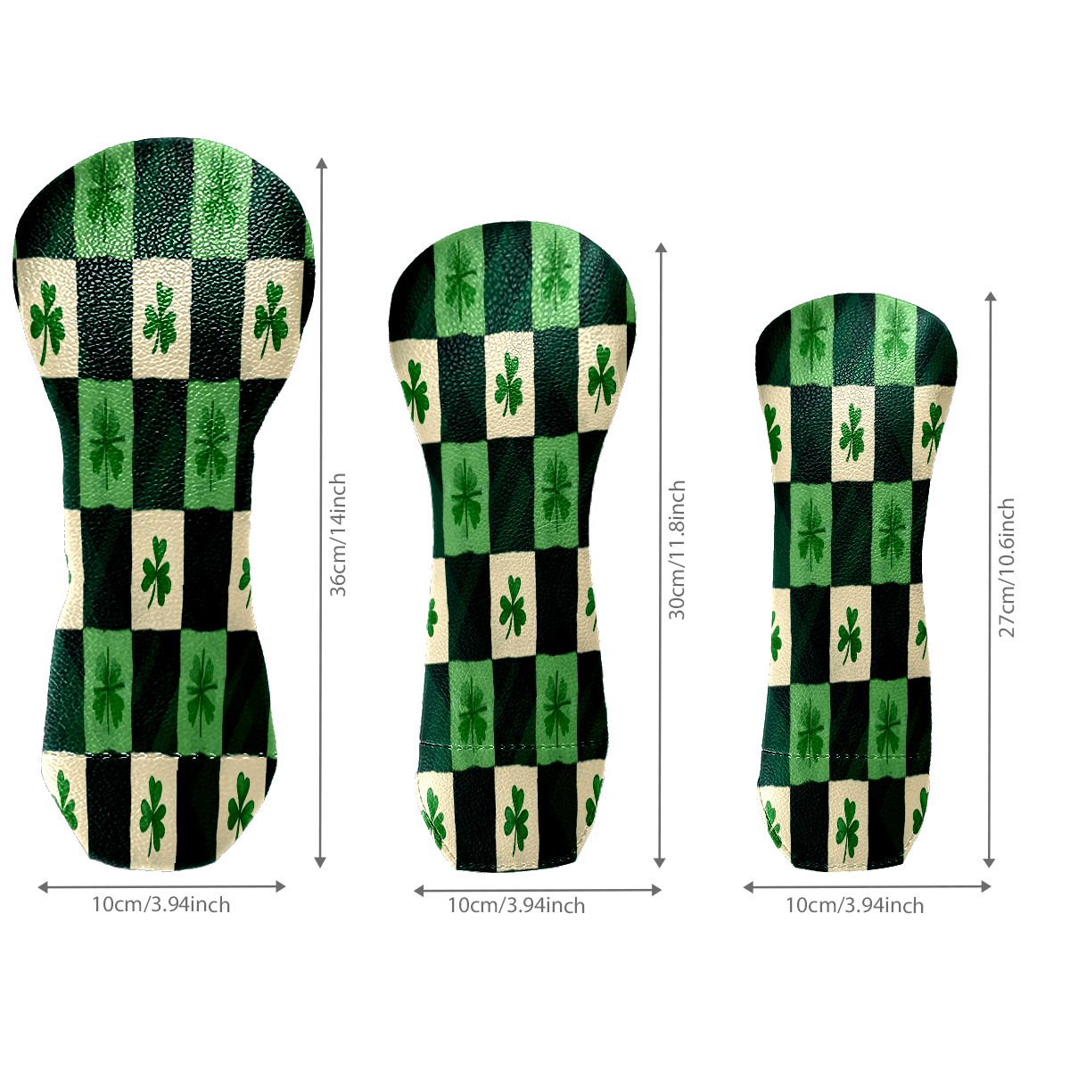 Golf Club Head Covers for Driver Hybrid and Fairway Woods, Waterproof Leather Headcovers for Golf Clubs, Ideal Golf Accessories Gift for Men Women (St.patricks Day Checkered)