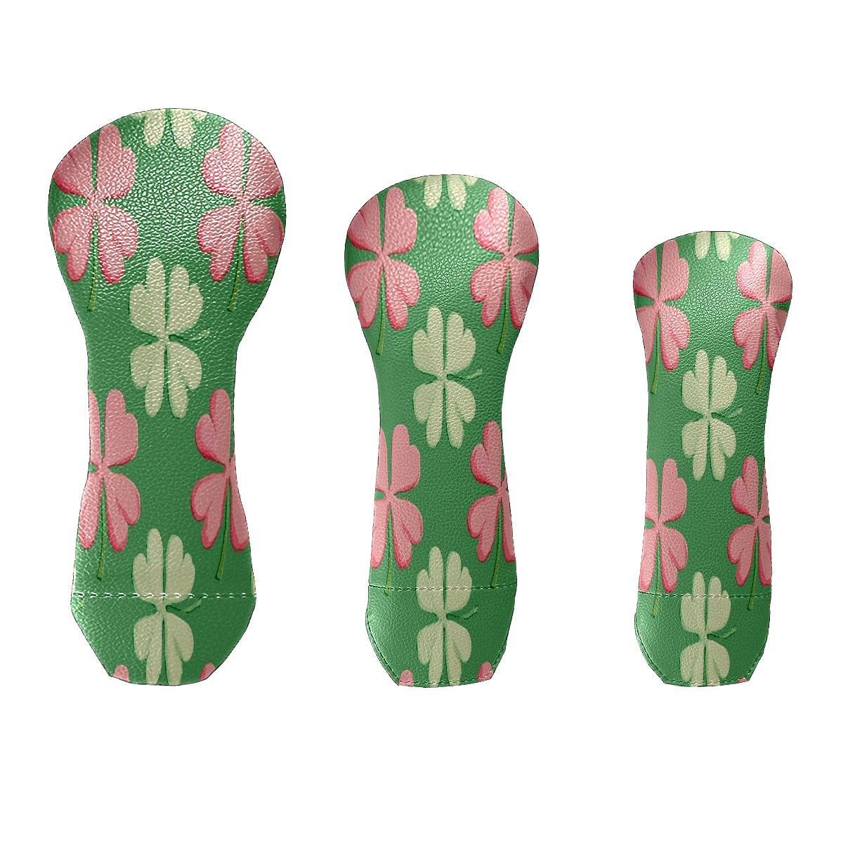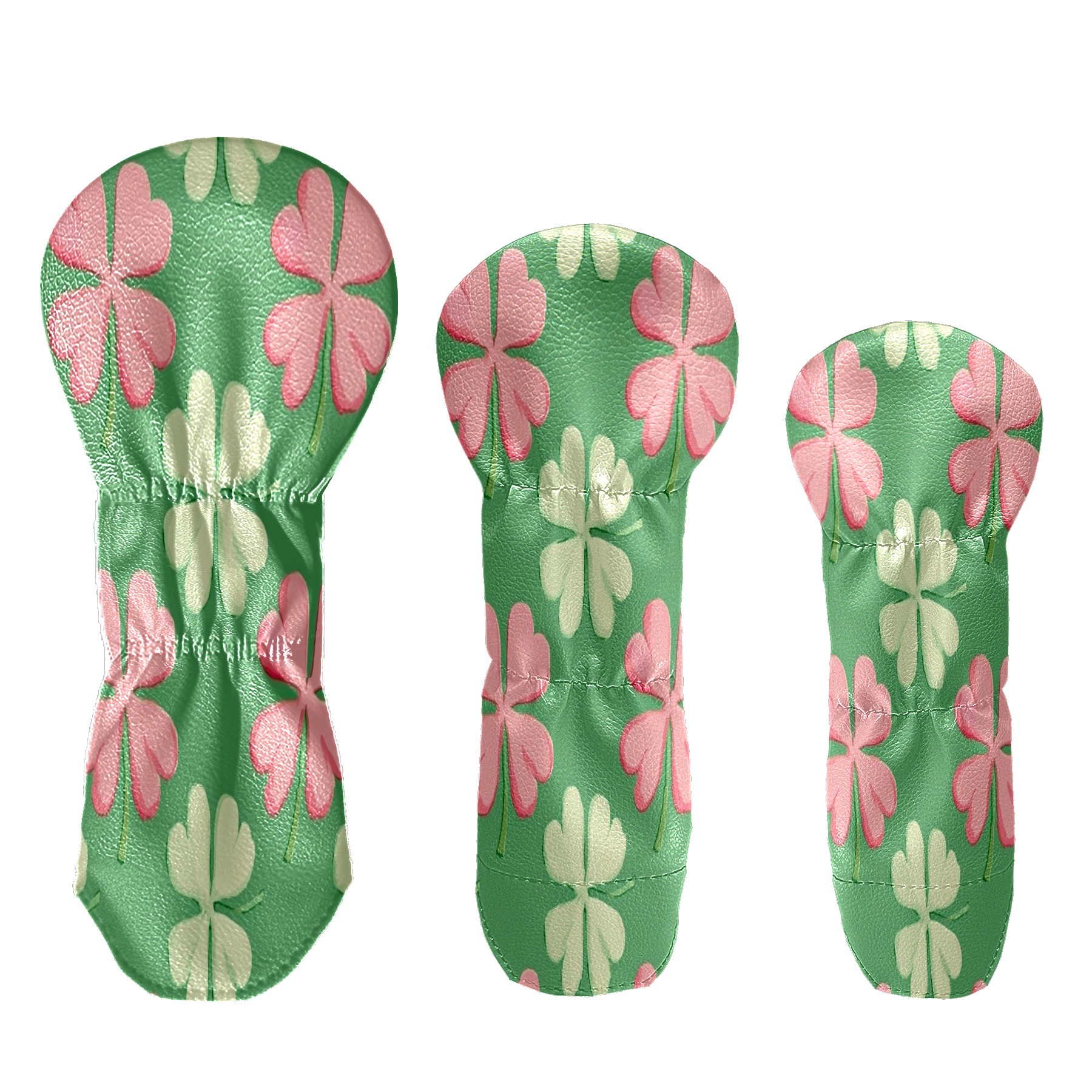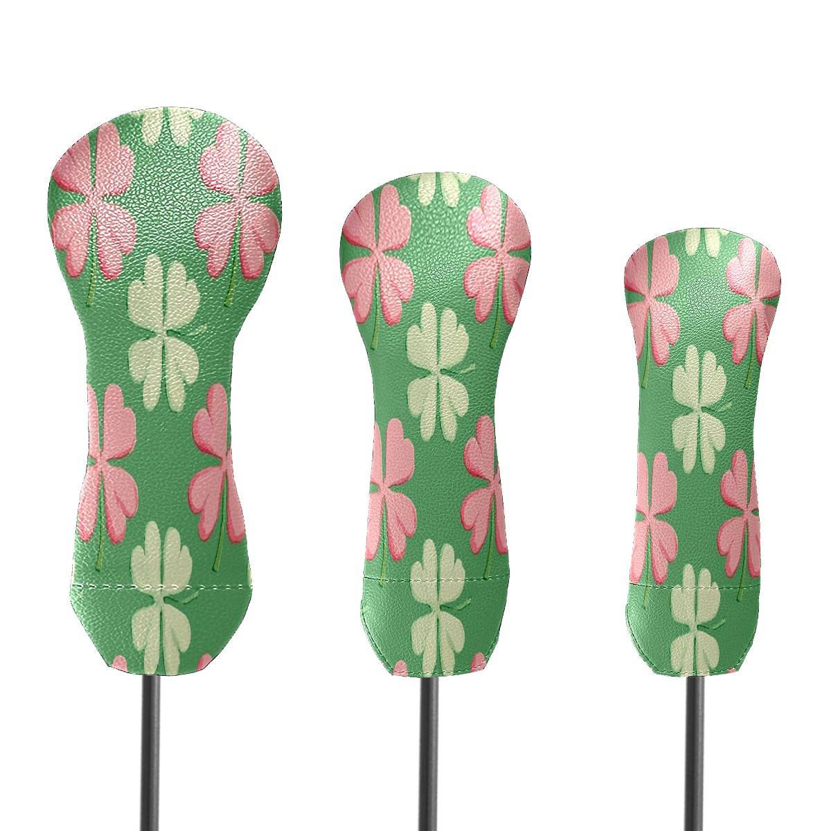 Golf Club Head Covers for Driver Hybrid and Fairway Woods, Waterproof Leather Headcovers for Golf Clubs, Ideal Golf Accessories Gift for Men Women (Shamrocks With Pink Stripes)