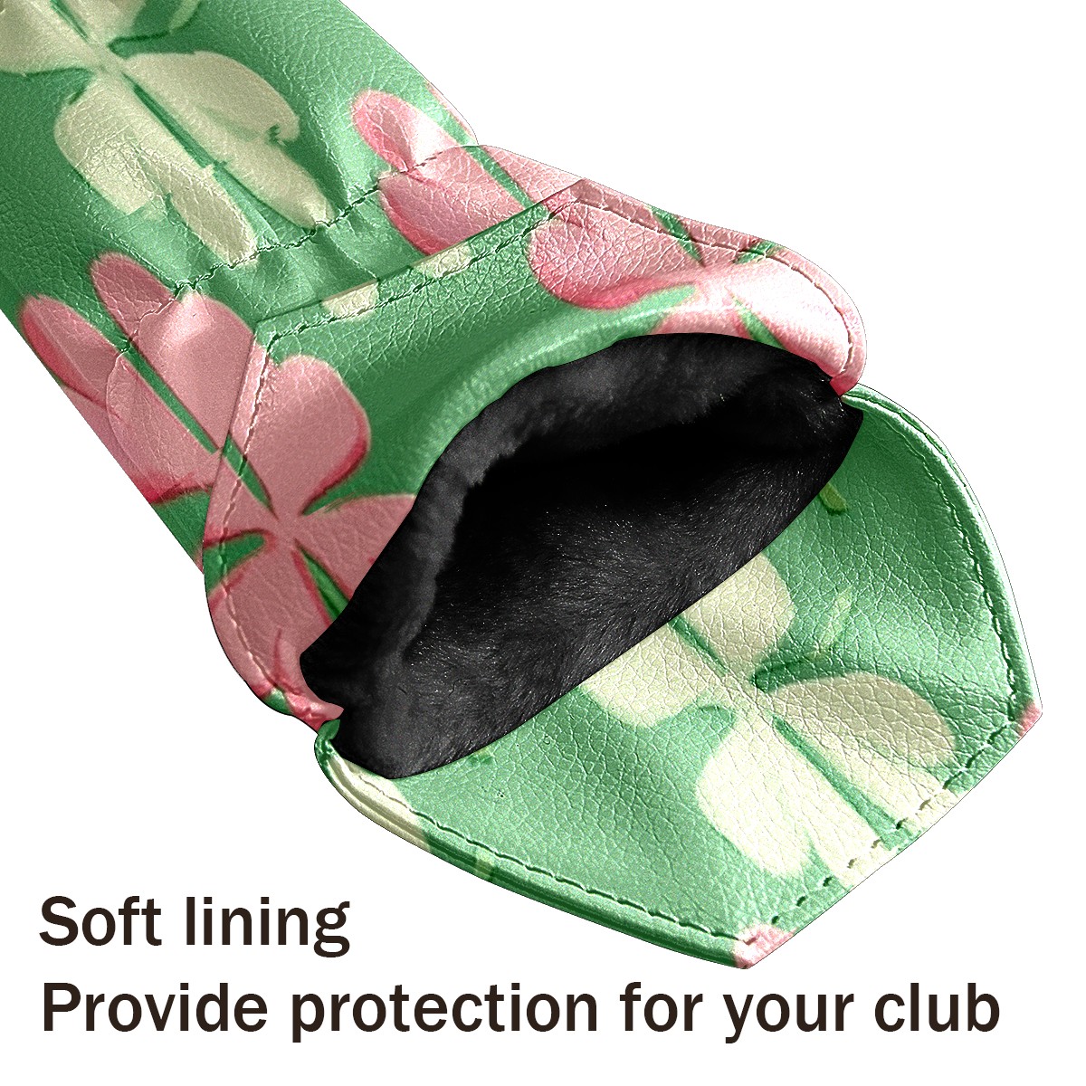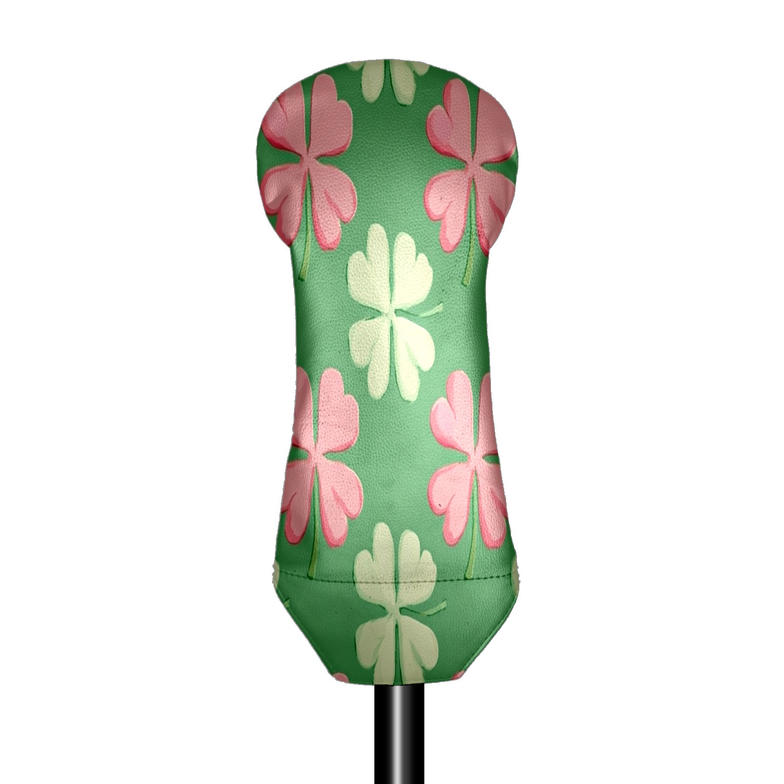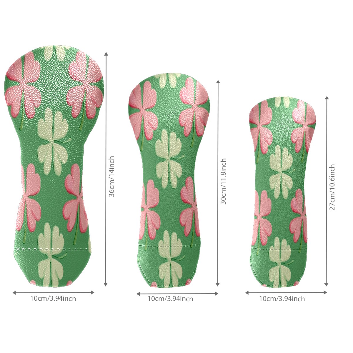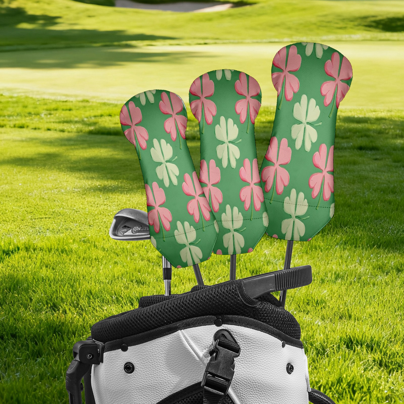 Golf Club Head Covers for Driver Hybrid and Fairway Woods, Waterproof Leather Headcovers for Golf Clubs, Ideal Golf Accessories Gift for Men Women (Shamrocks With Pink Stripes)