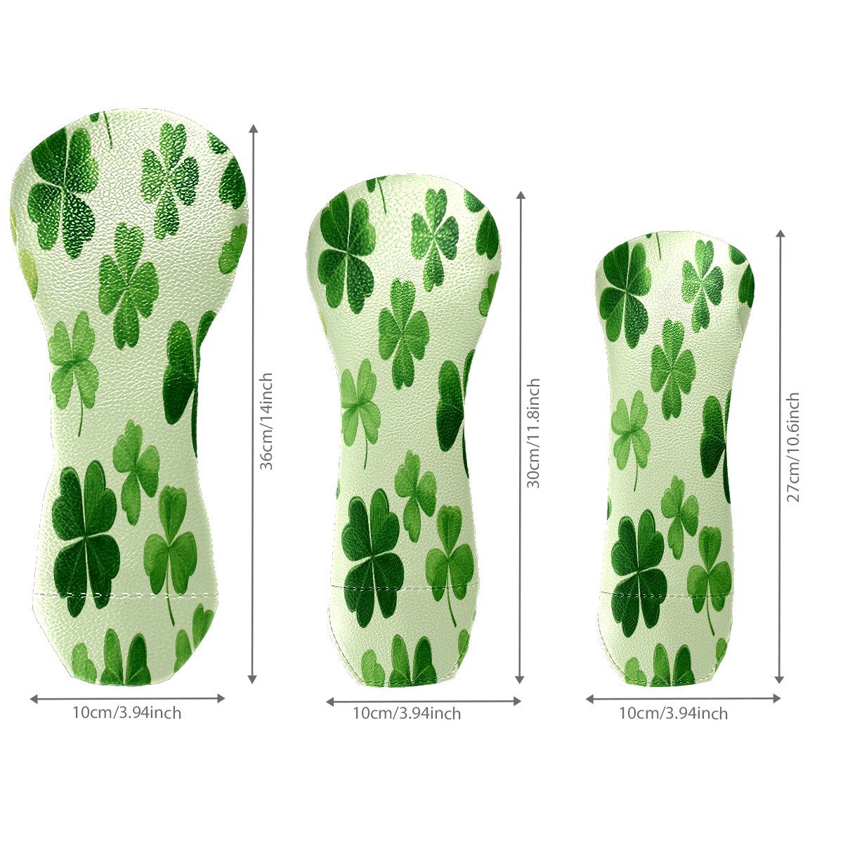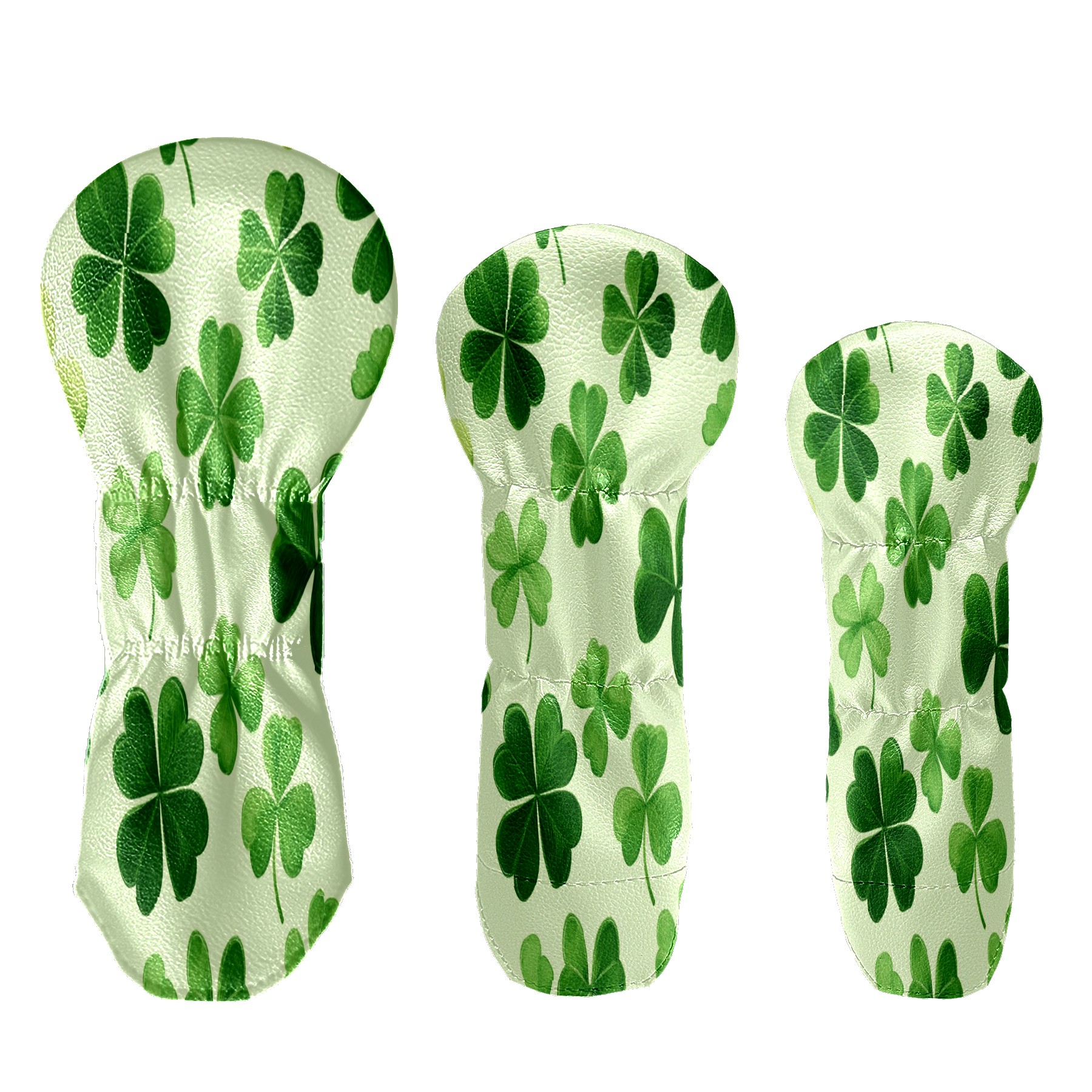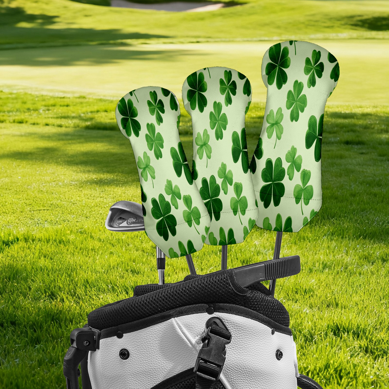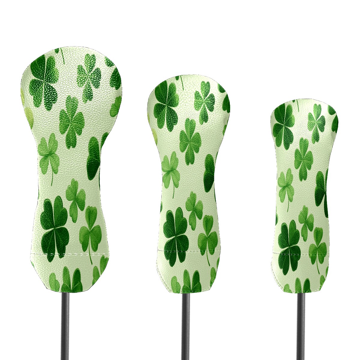 Golf Club Head Covers for Driver Hybrid and Fairway Woods, Waterproof Leather Headcovers for Golf Clubs, Ideal Golf Accessories Gift for Men Women (Shamrock Leaves)