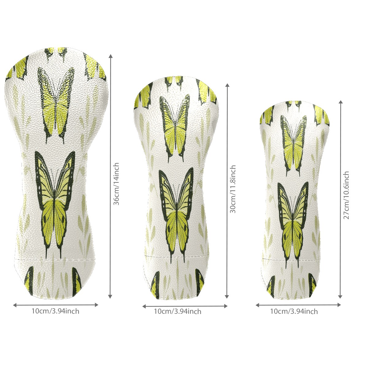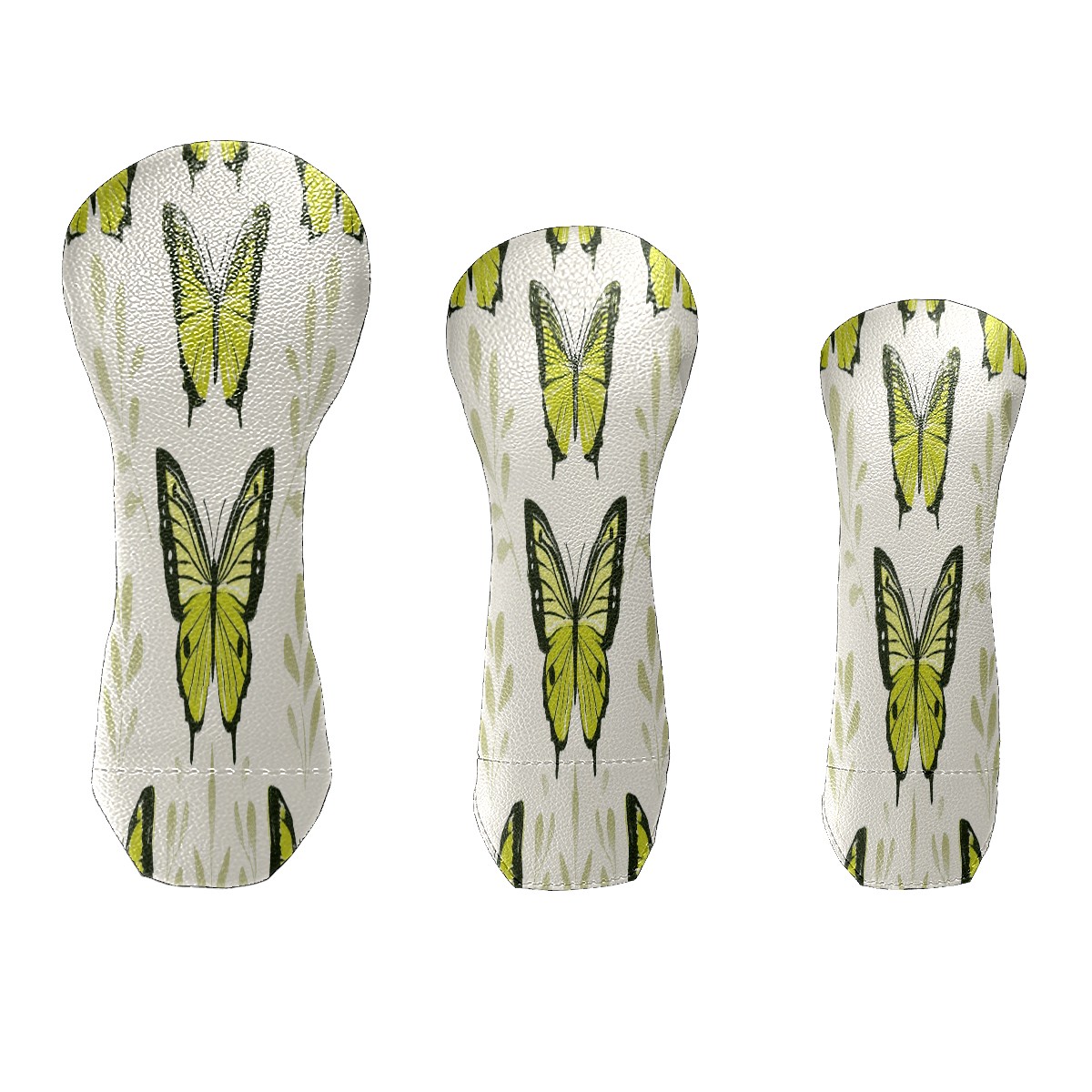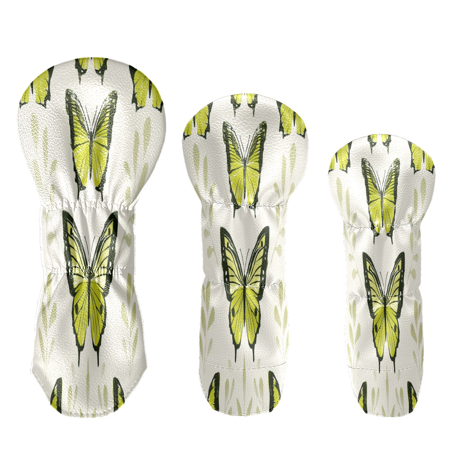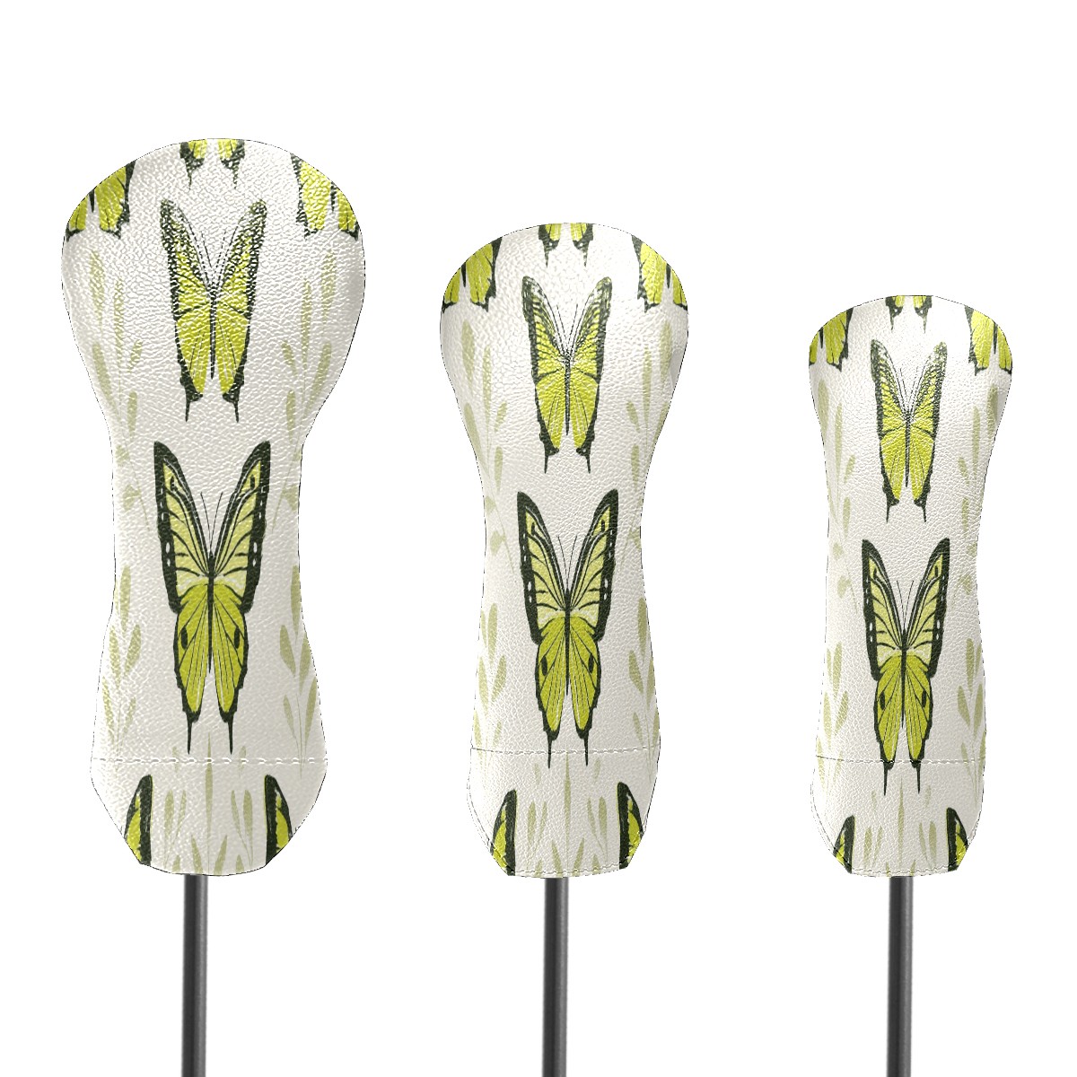 Golf Club Head Covers for Driver Hybrid and Fairway Woods, Waterproof Leather Headcovers for Golf Clubs, Ideal Golf Accessories Gift for Men Women (Green Butterflies)