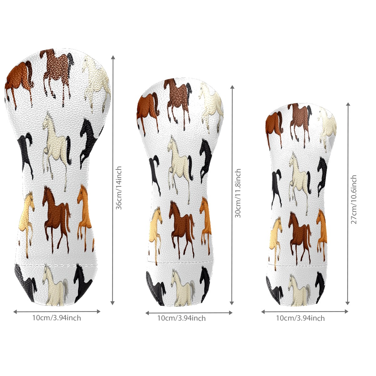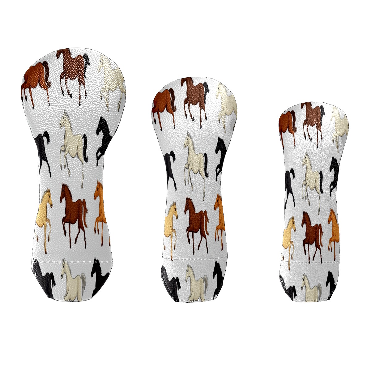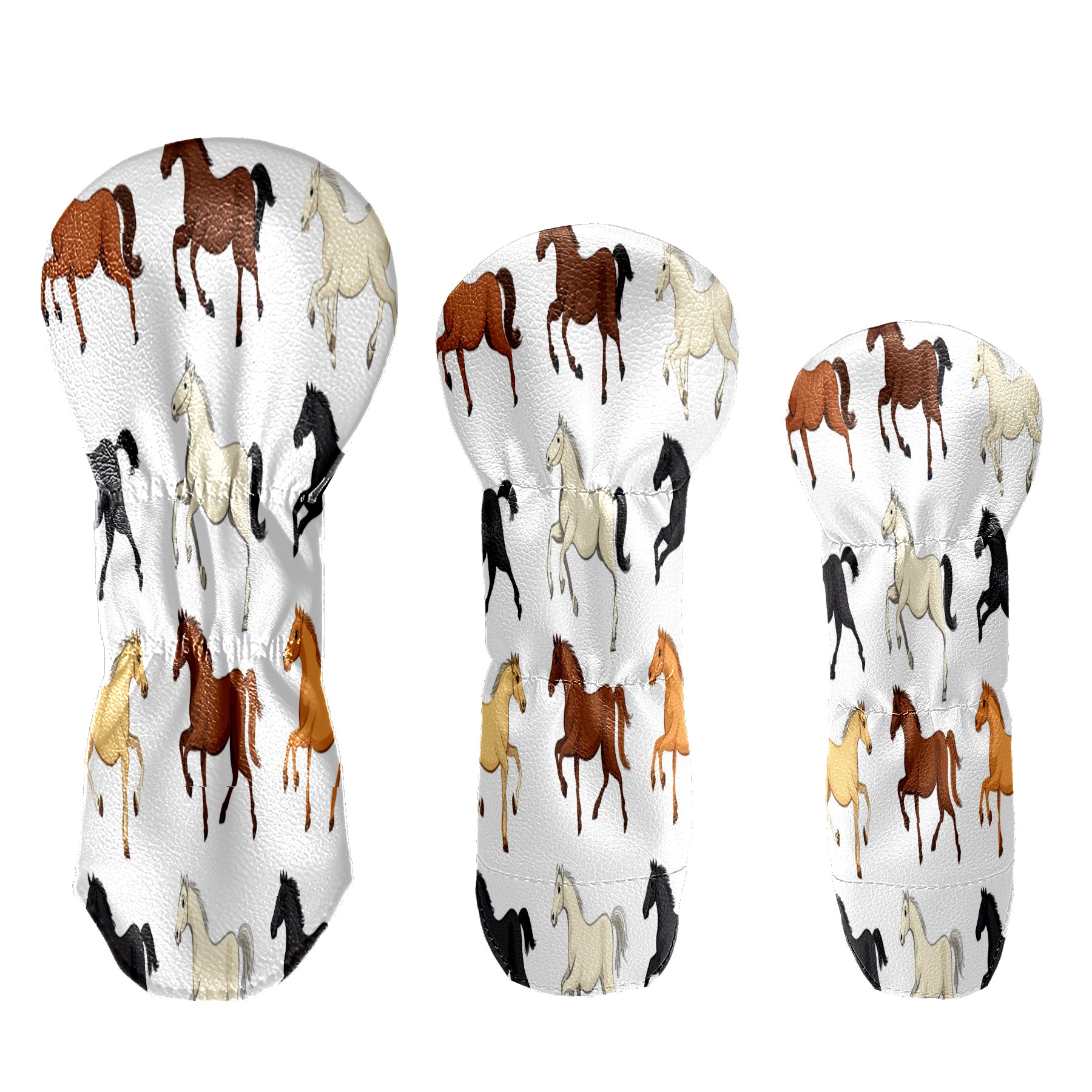 Golf Club Head Covers for Driver Hybrid and Fairway Woods, Waterproof Leather Headcovers for Golf Clubs, Ideal Golf Accessories Gift for Men Women (Horses)