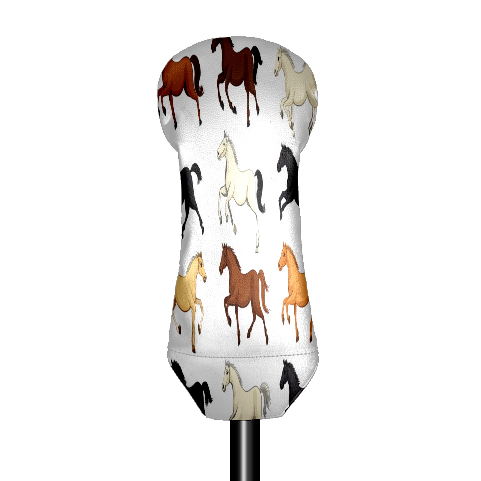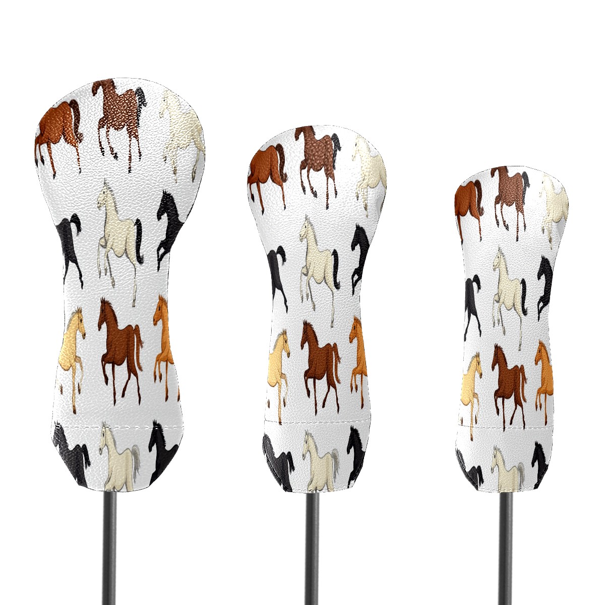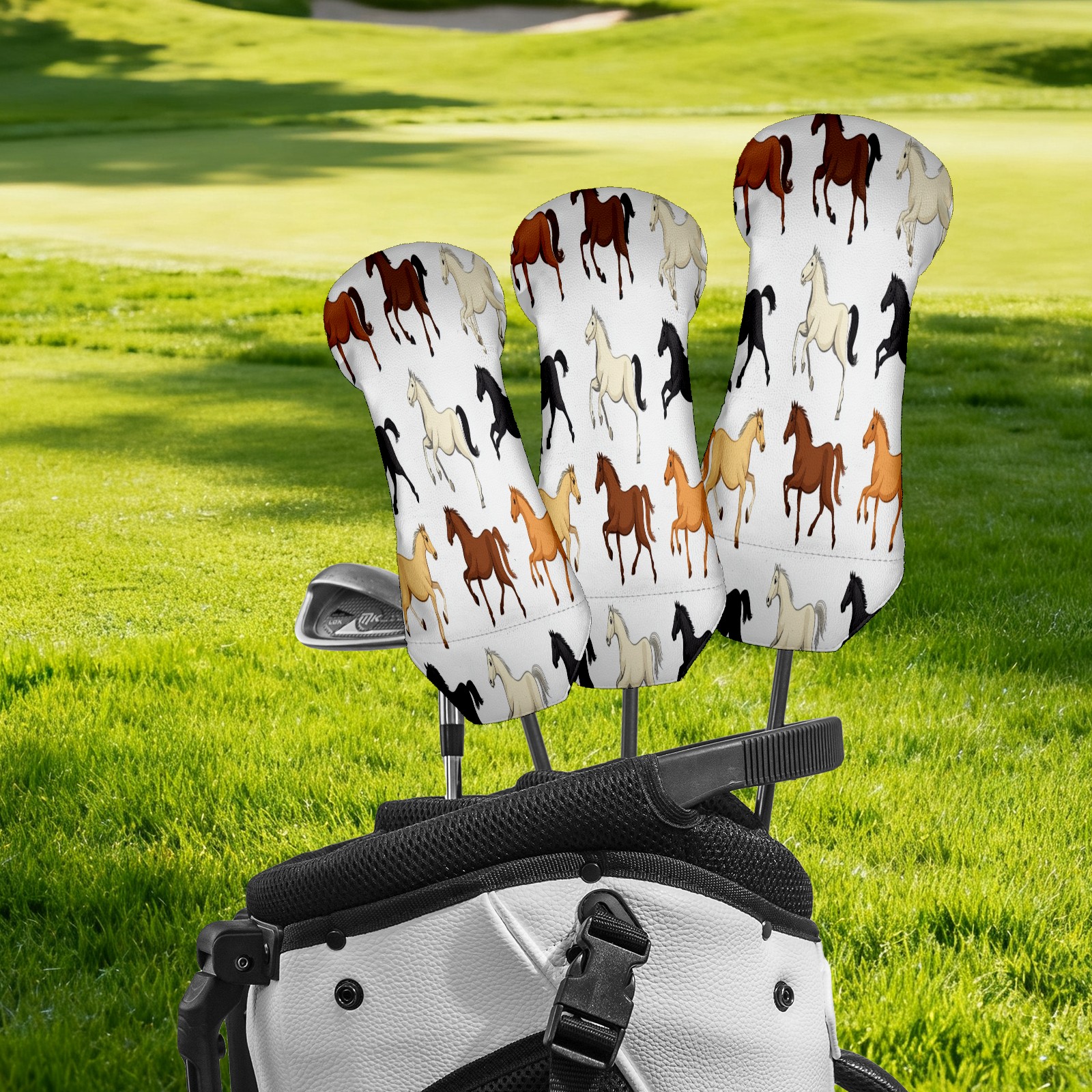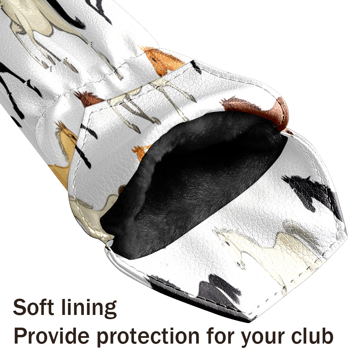 Golf Club Head Covers for Driver Hybrid and Fairway Woods, Waterproof Leather Headcovers for Golf Clubs, Ideal Golf Accessories Gift for Men Women (Horses)