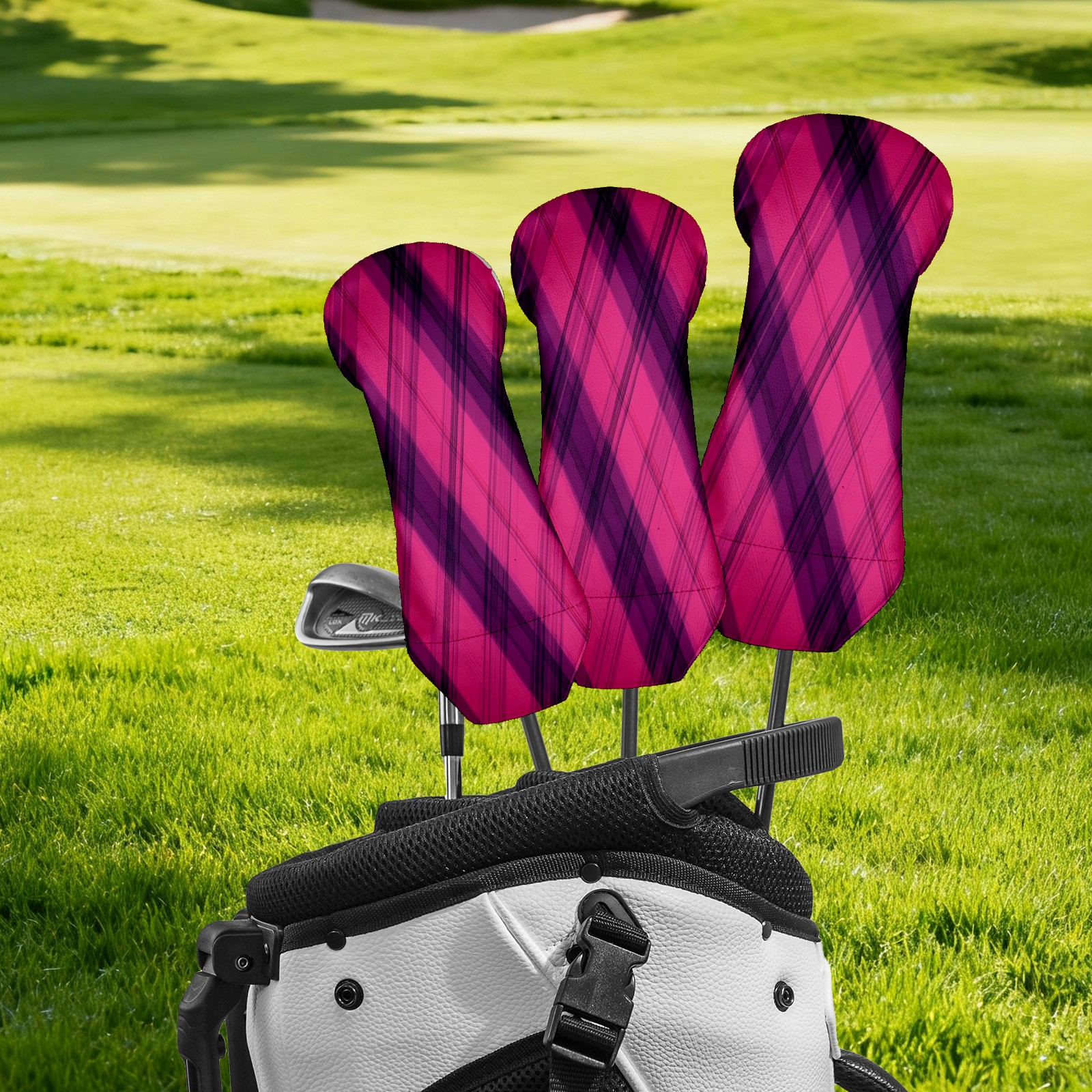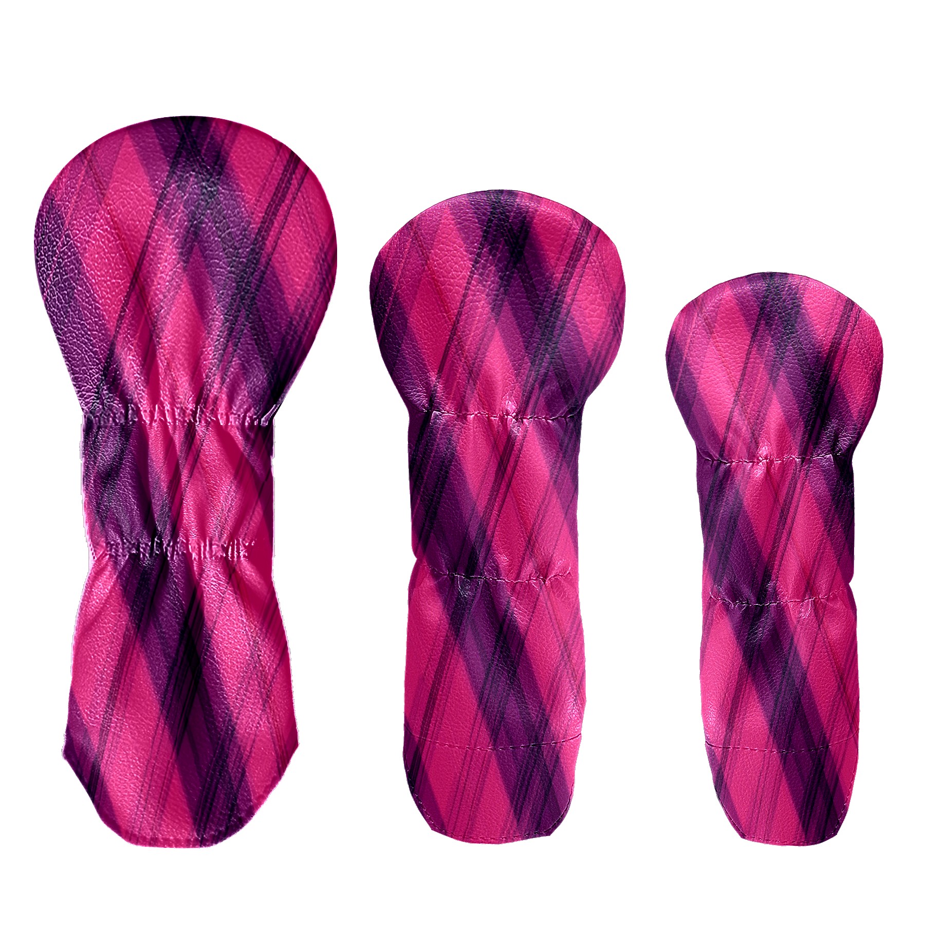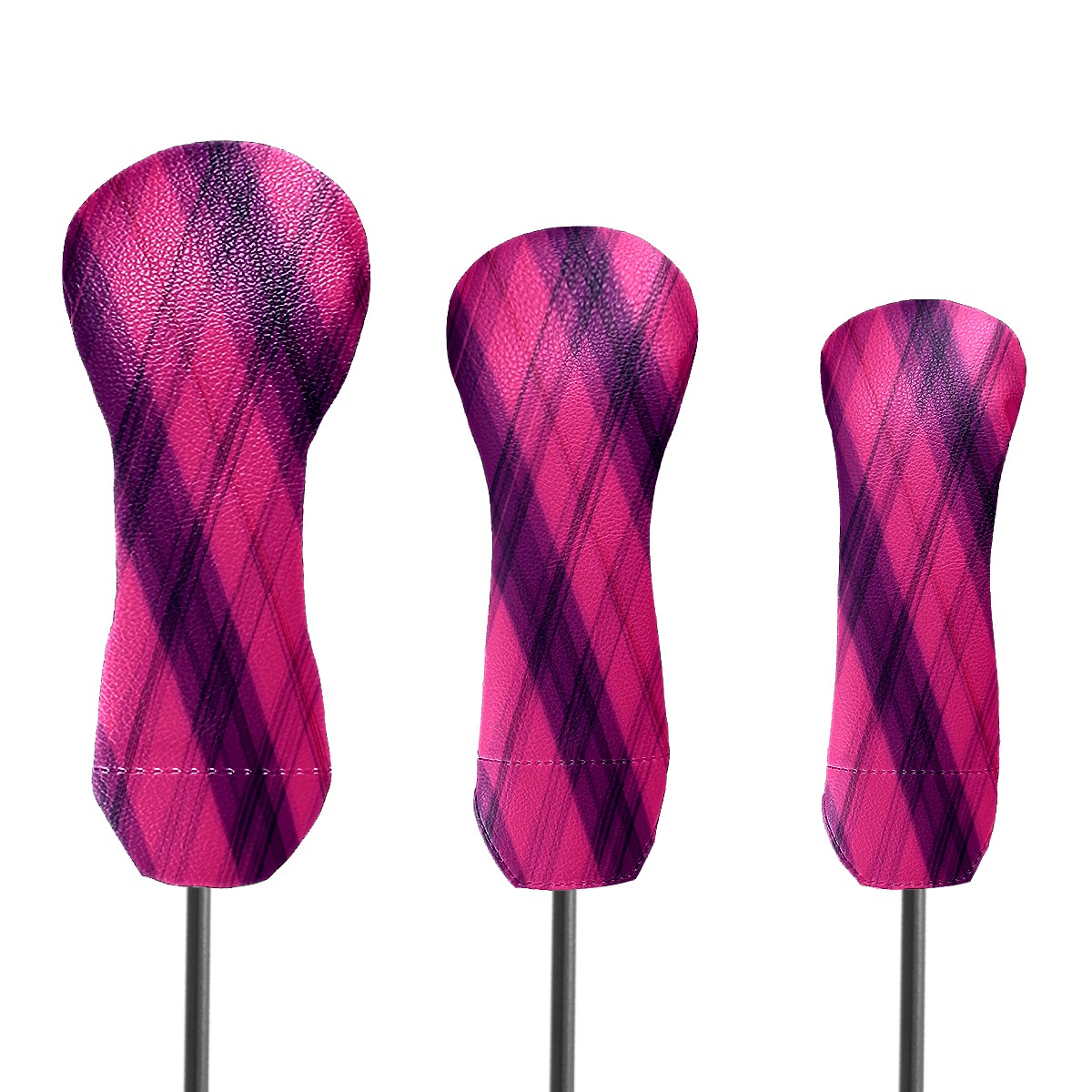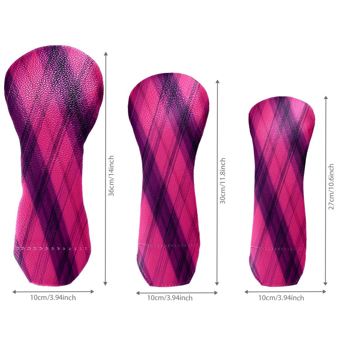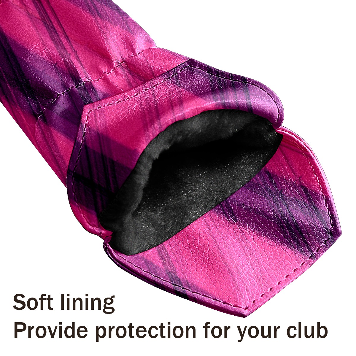Golf Club Head Covers for Driver Hybrid and Fairway Woods, Waterproof Leather Headcovers for Golf Clubs, Ideal Golf Accessories Gift for Men Women (Pink And Purple)